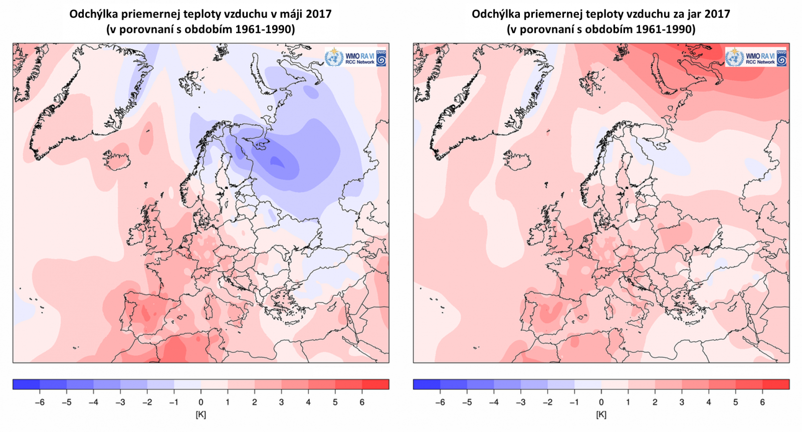 Podľa údajov americkej NASA bol máj 2017 globálne druhý najteplejší za posledných aspoň 137 rokov (+0,88 °C v porovnaní s obdobím 1951-1980; podľa údajov NOAA bol máj 2017 tretí najteplejší od roku 1880; porovnanie s obdobím 1981-2010 aj pre Európu). Ako historicky druhé najteplejšie aspoň od roku 1880 [globálne] skončilo aj obdobie mesiacov marec-máj 2017, pričom tento rok je zatiaľ historicky druhý najteplejší, hneď za rokom 2016. Nadnormálne teplý máj a veľmi teplú jar má za sebou aj väčšia časť európskeho kontinentu, vrátane Slovenska, pričom na juhozápade nášho územia bola jar aj pomerne suchá.