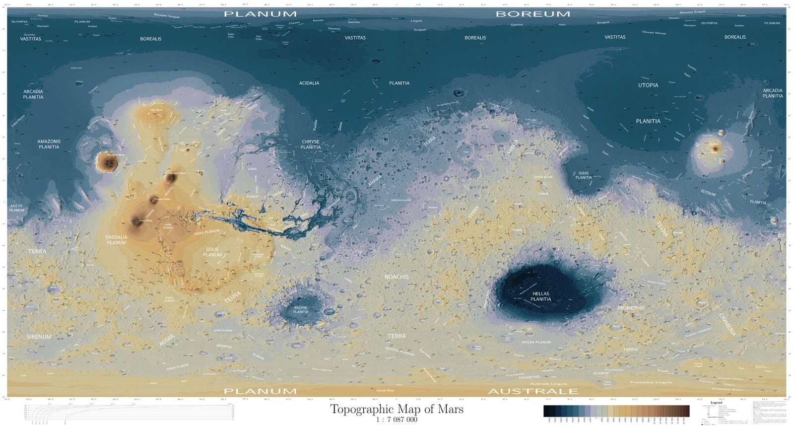 Obr. 9: (vľavo) Povrch Marsu z paluby sondy Pathfinder (1997) a porovnanie dvoch rôznych poveternostných situácií na Marse, v júni a septemberi 2001 (s globálnou púštnou búrkou); (vpravo) dnes púštny Mars bol v minulosti pravdepodobne bohatší na vodu, ako ukazuje aj nedavný výskum podpovrchových vodných kanálov v oblasti planiny Elysium Planitia [Zdroj: NASA/JPL-Caltech/Sapienza University of Rome/Smithsonian Institution/USGS] [Topografická mapa Marsu]