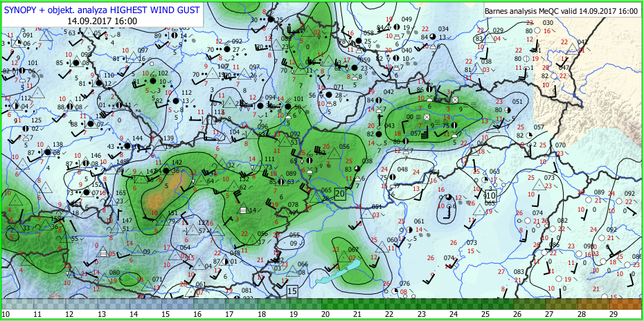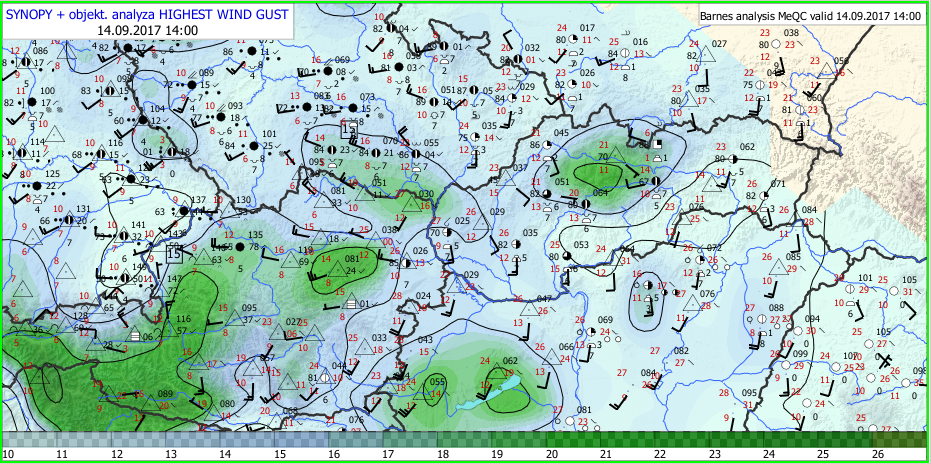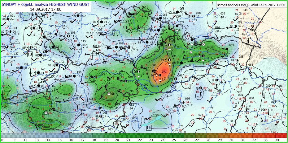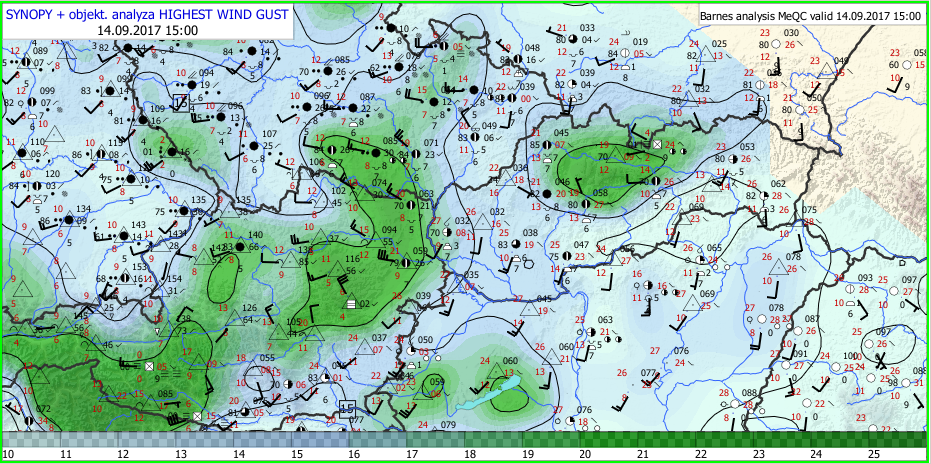Vo štvrtok 14.9.2017 počasie na Slovensku ovplyvnil rýchlo postupujúci studený front, s ktorým bol spojený veľmi silný nárazový vietor.