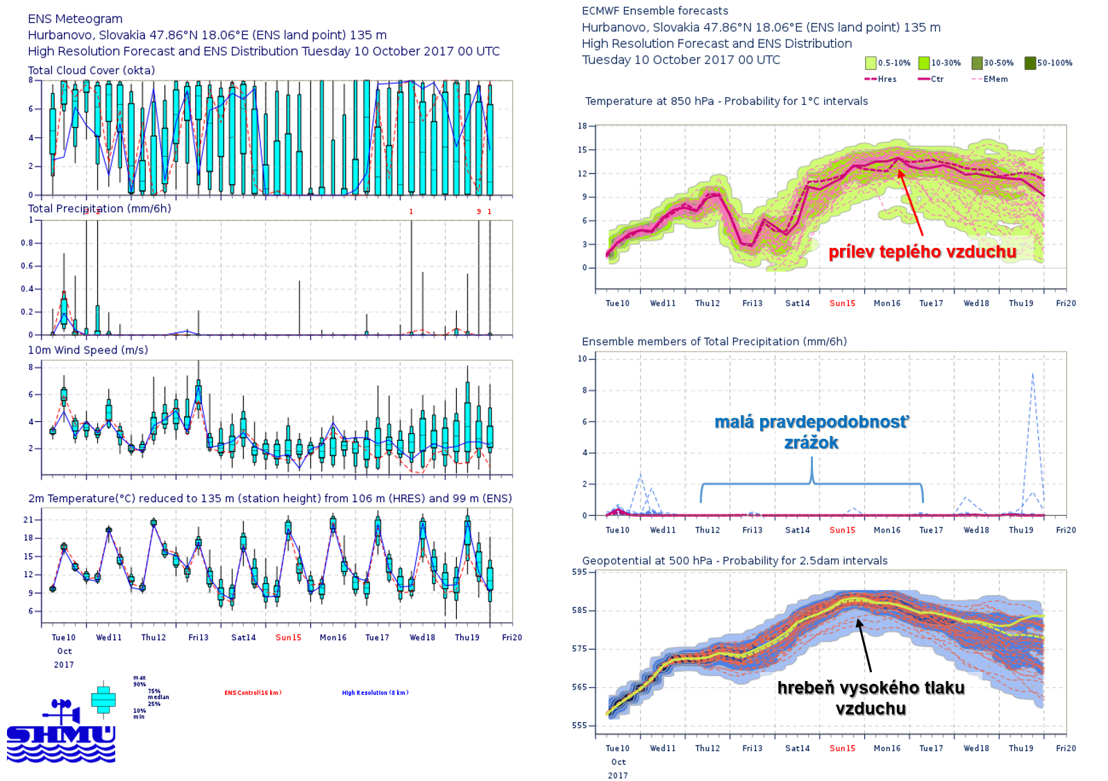 Na animácii nižšie je vidieť, že situácia bude pomerne dynamická a po tom ako sa tlaková výš presunie nad Balkán začne slabnúť. Otázkou tak zostáva ako dlho bude babie leto trvať. Predpoveď ustáleného, teplého a na zrážky chudobného počasia potvrdzuje aj ansámblová predpoveď ECMWF pre Hurbanovo.