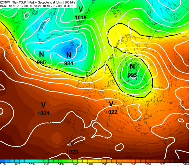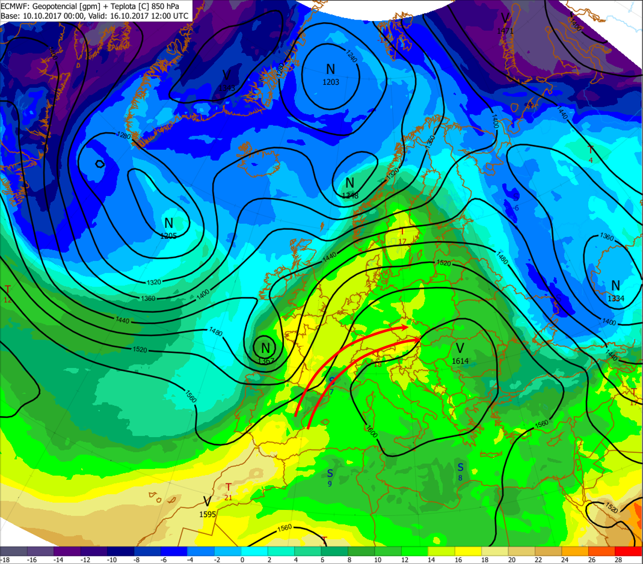 [predpoveď modelu ECMWF na 16.10.2017 o 12 UTC ]