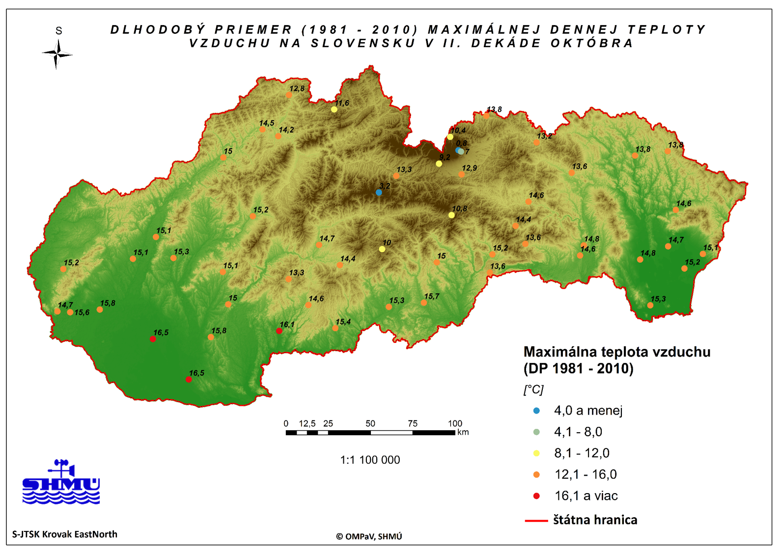 Obr. 3: Priemerná maximálna denná teplota vzduchu na vybraných staniciach SHMÚ v druhej októbrovej dekáde