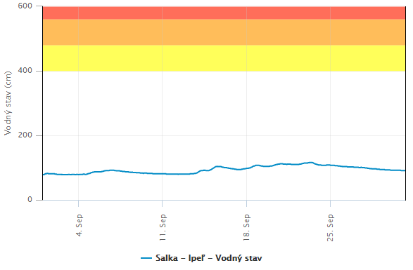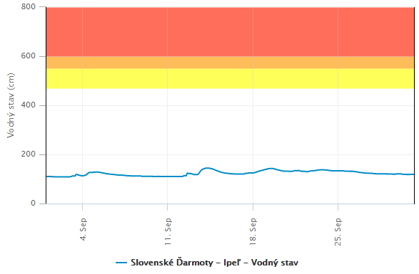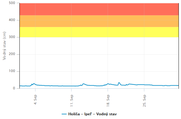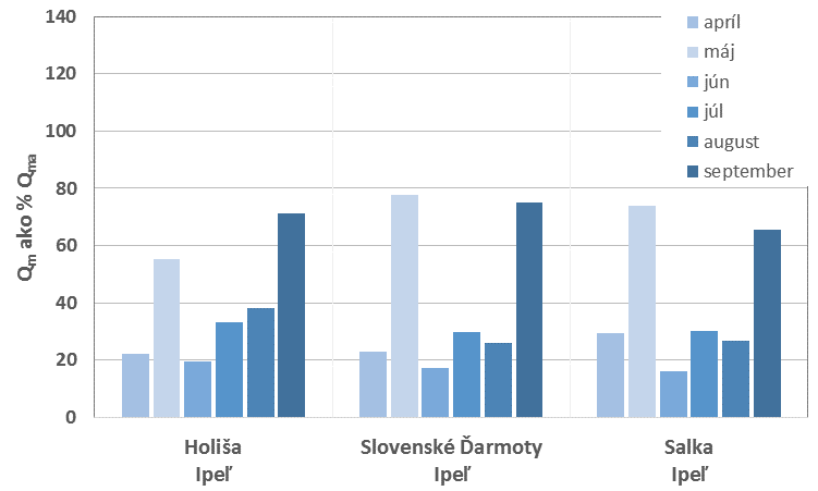 Počas celého mesiaca sme zaznamenali niekoľko zrážkoodtokových udalostí, ktoré však z hydrologického hľadiska neboli významné (obr. 1). Priemerné denné prietoky boli na hydroprognóznych staniciach väčšinou na úrovni hodnôt 330 až 270-denných prietokov. Maximálne kulminačné septembrové prietoky neprekročili 120-denný prietok v Holiši, resp. 170-denné prietoky v Slovenských Ďarmotách a v Salke. Kulminačný prietok v Holiši sa vyskytol v bezzrážkovom období a bol ovplyvnený manipuláciou na VN Málinec. Druhý najvyšší kulminačný prietok ako odozva na zrážky bol v Holiši na úrovni 180-denného prietoku.