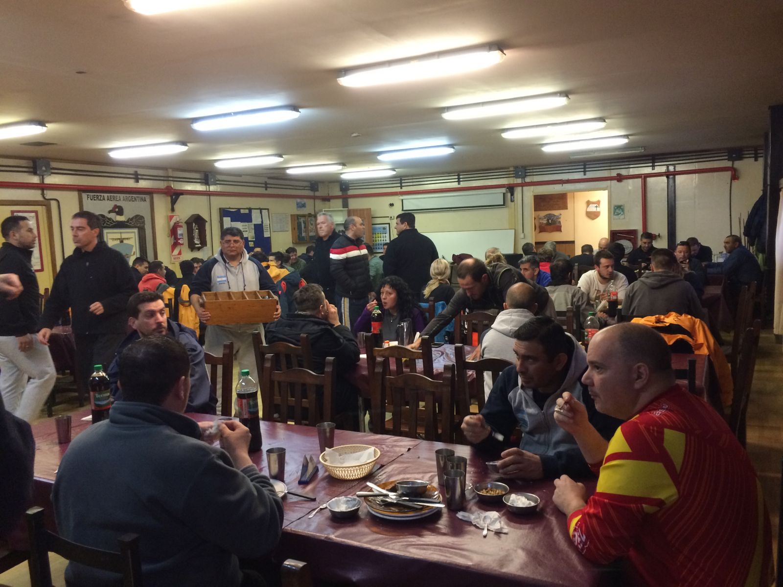 Obr. 10: Fotografia z jedálne. Na stanici Marambio je v lete okolo 100 – 200 ľudí, v zime menej, len okolo 50. Vedci tvoria výraznú menšinu, značne prevažuje personál a vojaci.