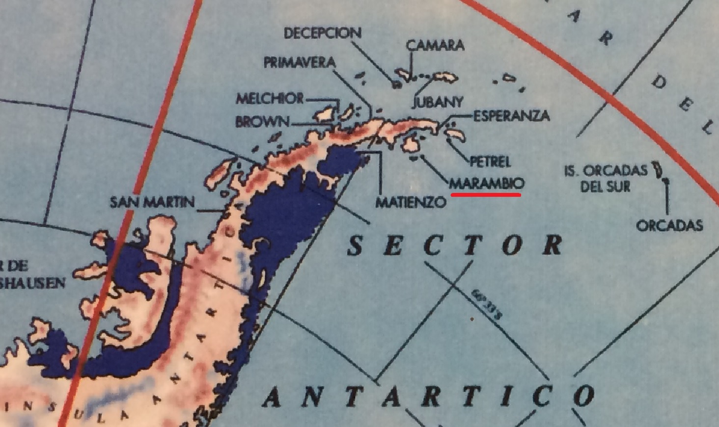 Obr. 5: Stanica Marambio je hlavnou argentínskou základňu v Antarktíde. Na obrázku je znázornené umiestnenie aj ďalších argentínskych staníc.