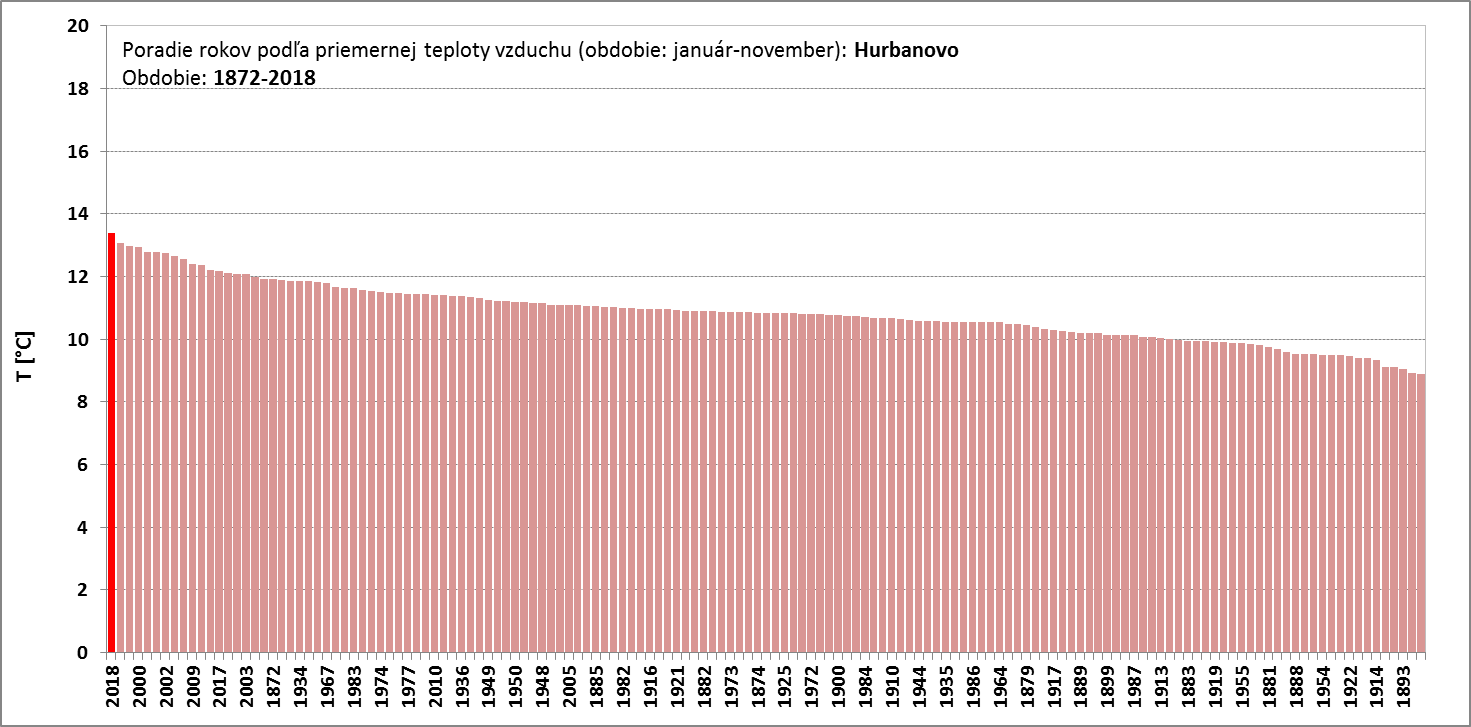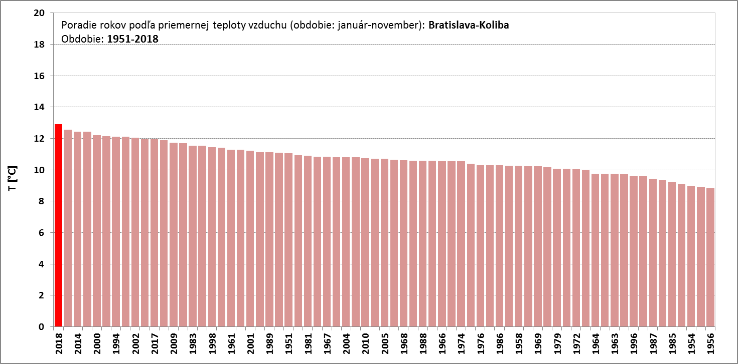 V súvislosti s aktuálne prebiehajúcou konferenciou COP24 v poľskom meste Katovice, Svetová meteorologická organizácia (WMO) vydala koncom novembra predbežnú správu o stave globálnej klímy za rok 2018. Podľa WMO a predbežných údajov o globálnej teplote za obdobie od januára do októbra 2018, tento rok skončí veľmi pravdepodobne ako štvrtý najteplejší za posledných aspoň 168 rokov (1850-2018). Správa WMO vo väčších detailoch informuje aj o ďalších dôležitých indikátoroch prebiehajúcej zmeny klímy, a to napríklad o úrovni globálnej koncentrácie skleníkových plynov, tepelnom stave oceánov, rozsahu kryosféry (v Arktíde a Antarktíde), výskyte významných poveternostných extrémov a ich dôsledkoch na socio-ekonomickú sféru. Predbežné údaje o teplote vzduchu na území Slovenska naznačujú, že rok 2018 bude na prevažnej časti meteorologických staníc prvý až druhý najteplejší rok v období od začiatku 20. storočia [na základe napr. údajov z meteorologickej stanice Bratislava-Koliba a Hurbanovo].