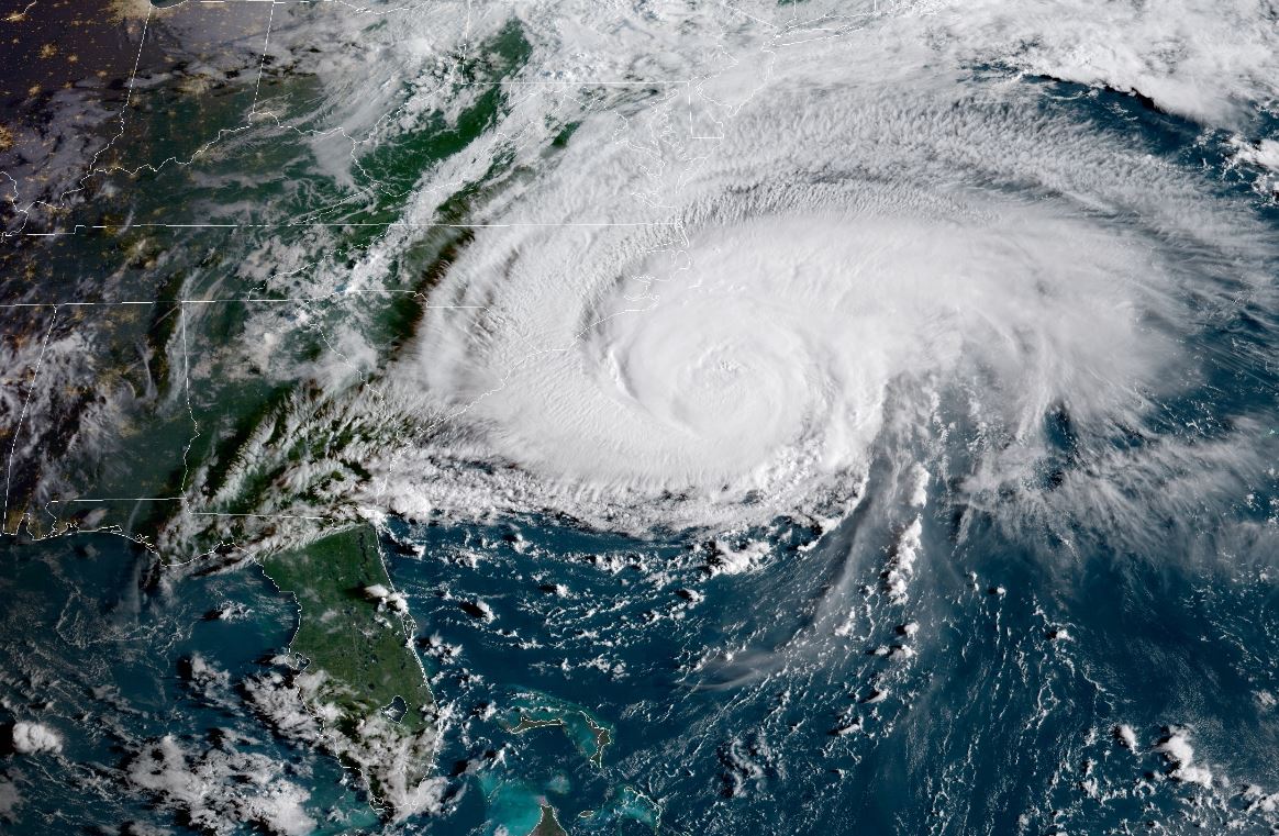 Obr. 6: Tropická cyklóna (hurikán) Florence na zábere meteorologickej družice dňa 13. septembra 2018 (ako TC 2. kategórie) [Zdroj: NASA]