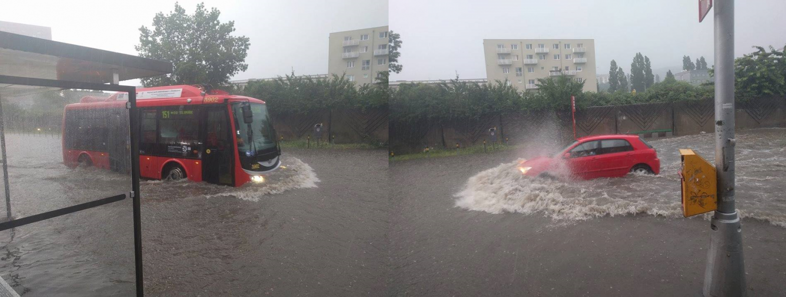 Obr. 2: Zaplavené ulice Bratislavy dňa 6.6.2018 (neďaleko OD Slimák, autor: P. Molcany).