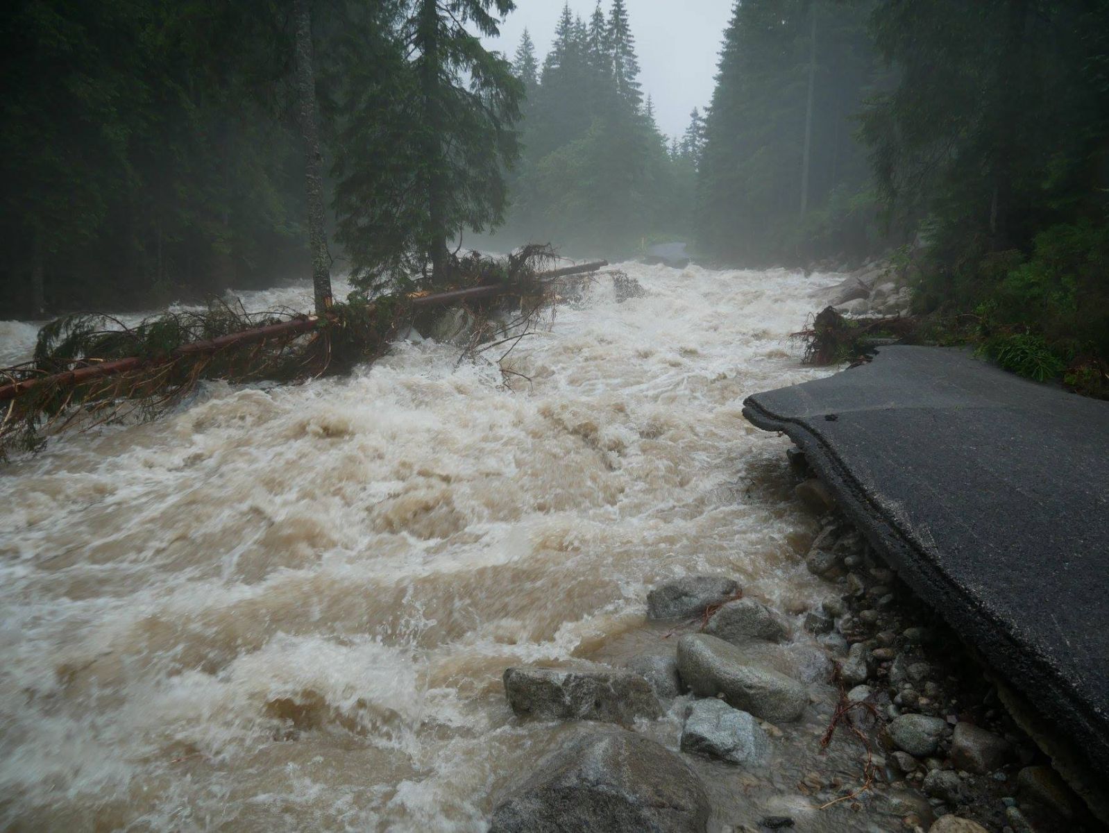 Obr. 4: Zničená cesta k horárni pod Muráňom v Javorovej doline (zdroj: facebook Tatry, viac fotografií si môžete pozrieť na našom fb profile).