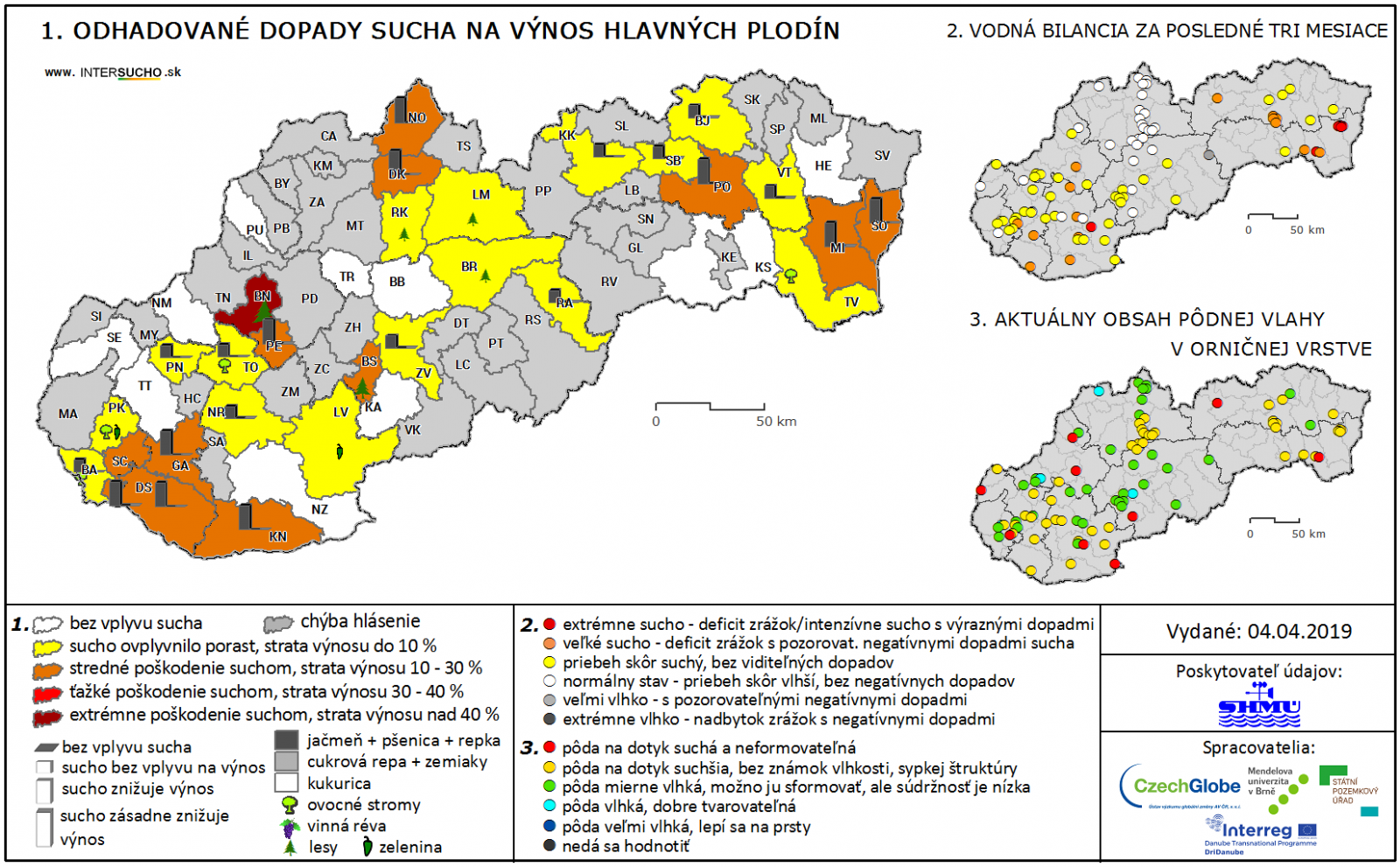 Obr. 2 Dopady sucha na poľnohospodárske plodiny k 4.4.2019