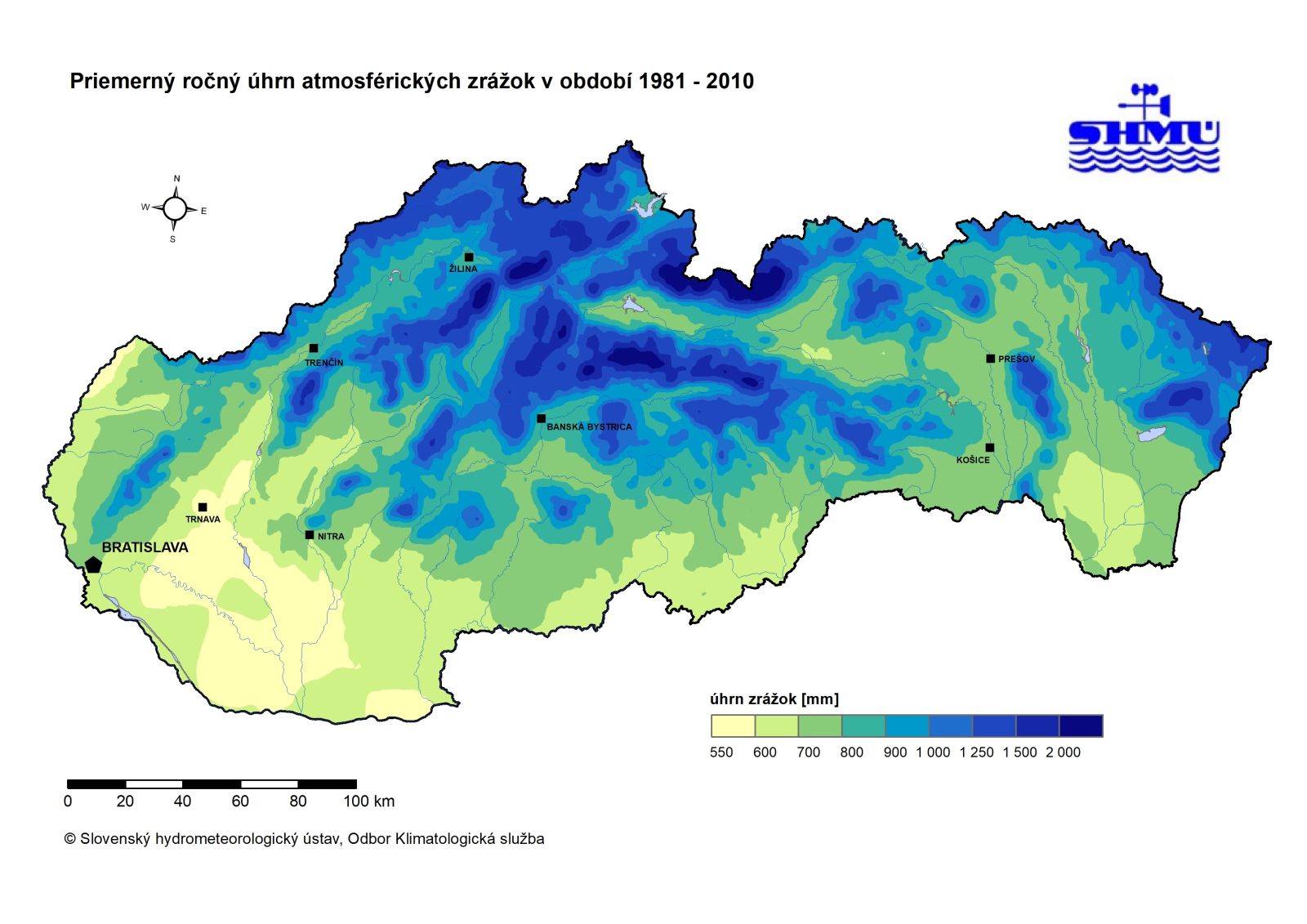 Zdroj: Kolektív autorov: Klimatický atlas Slovenska. Bratislava: Slovenský hydrometeorologický ústav, 2015.