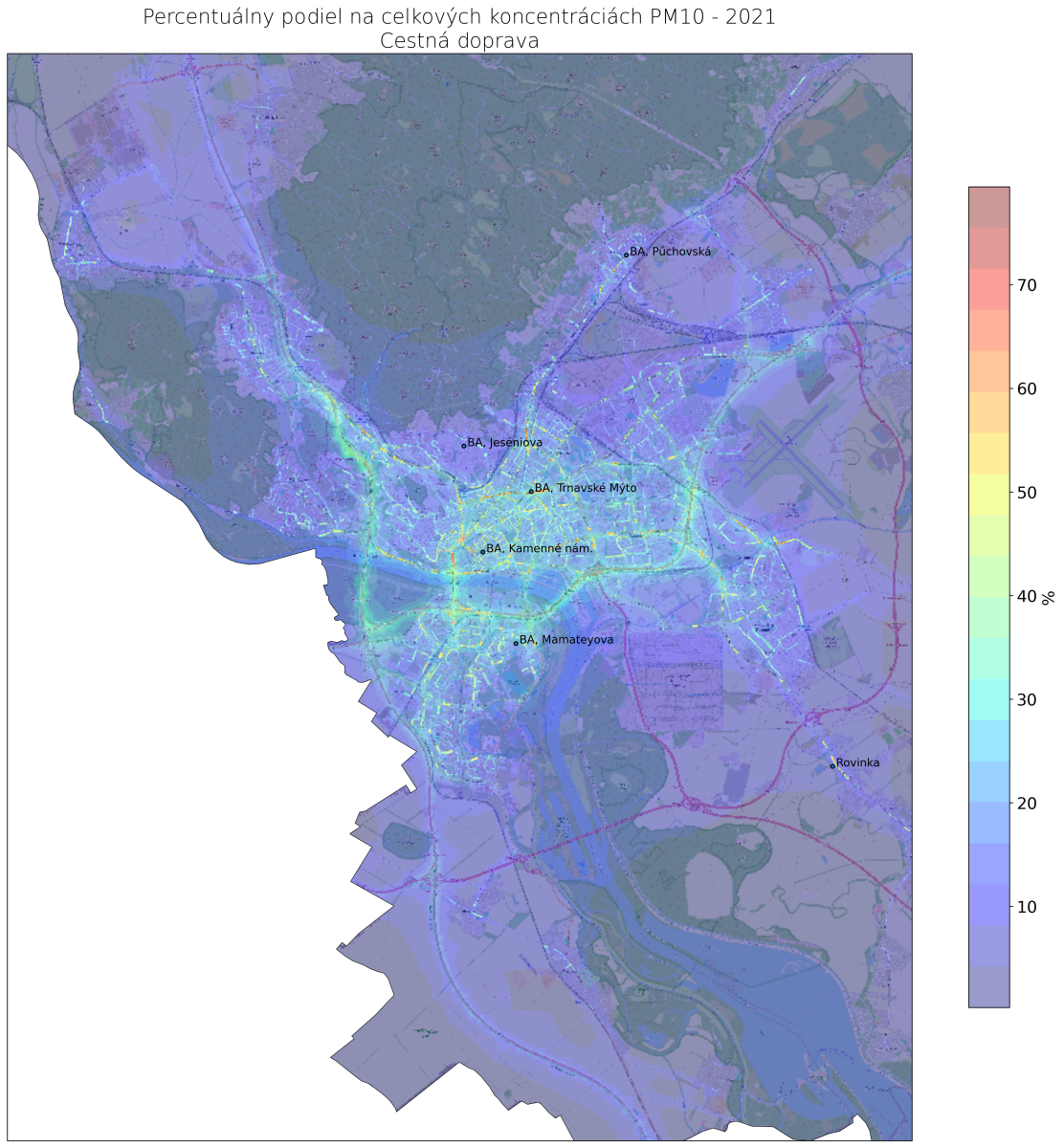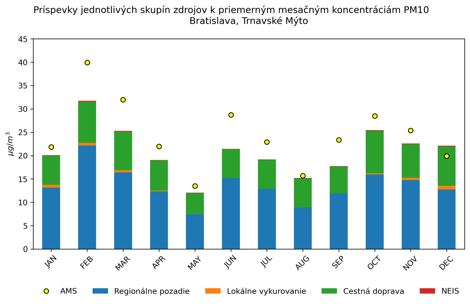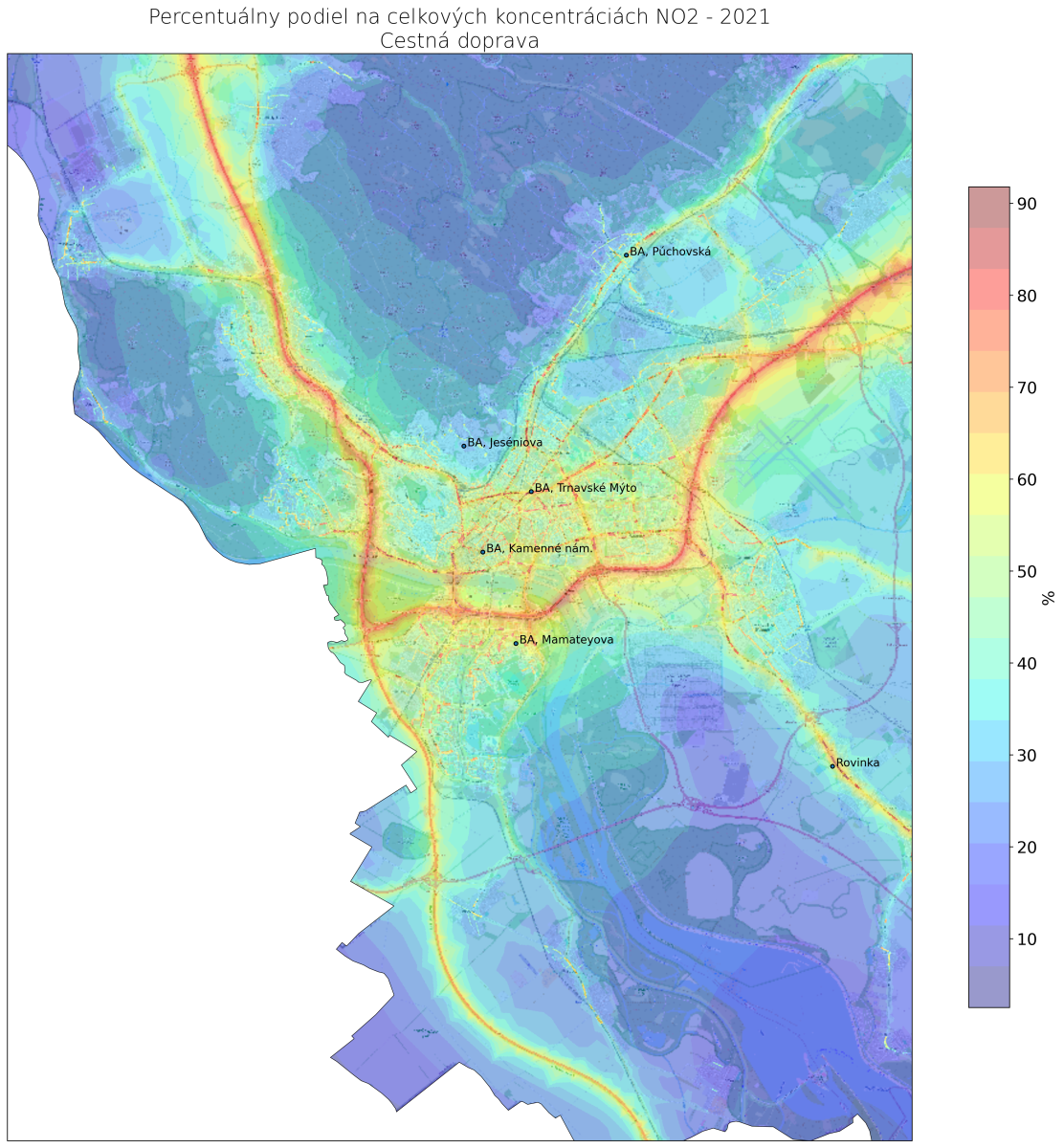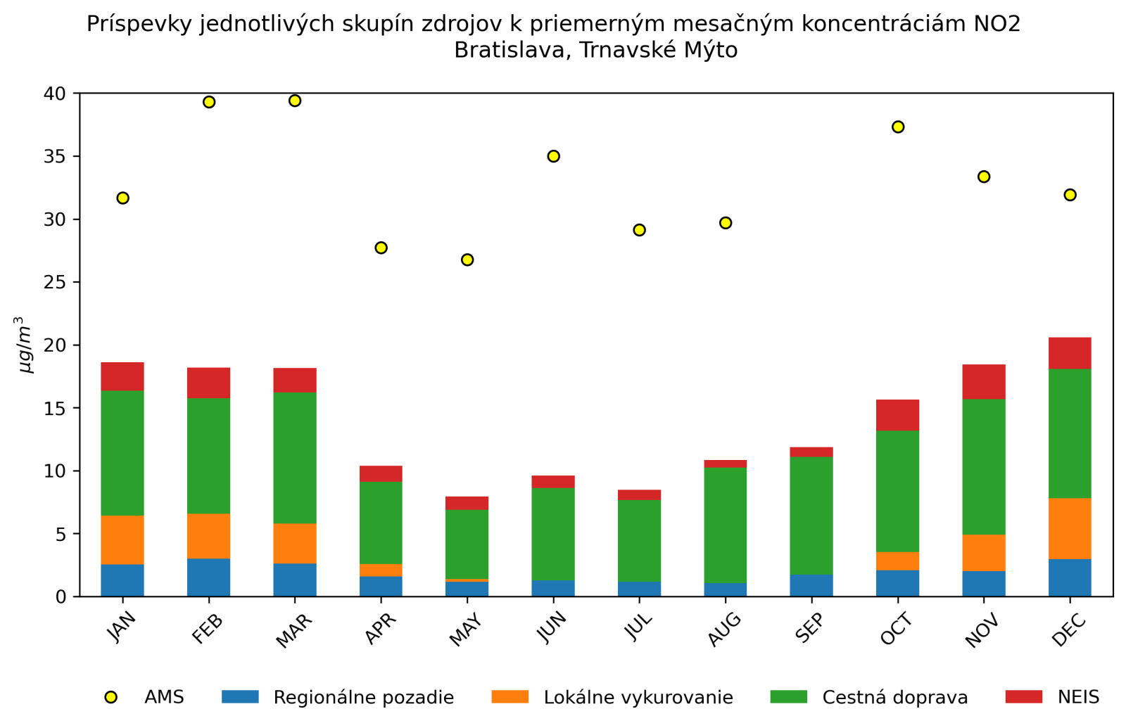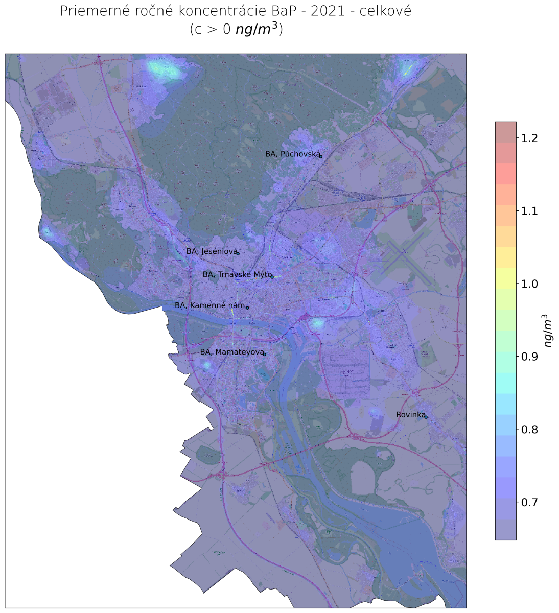 v mieste monitorovacej stanice Bratislava, Trnavské Mýto