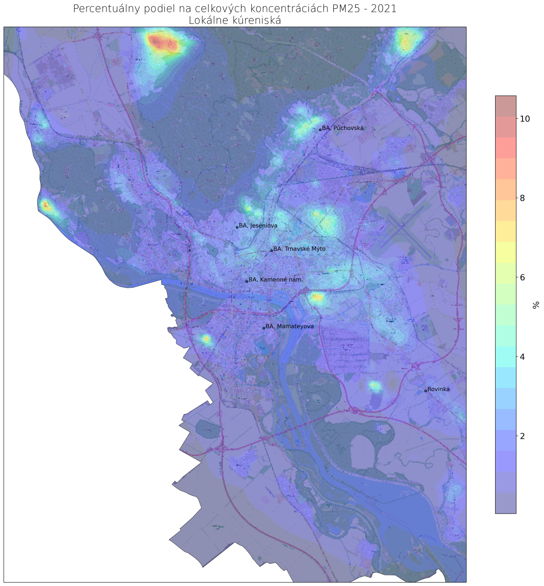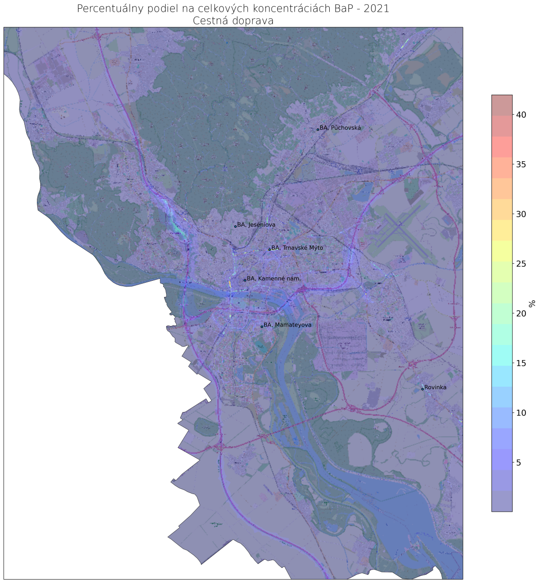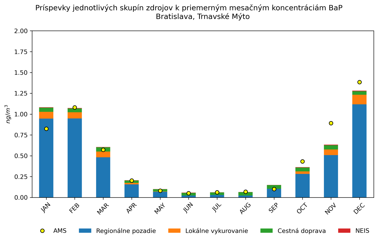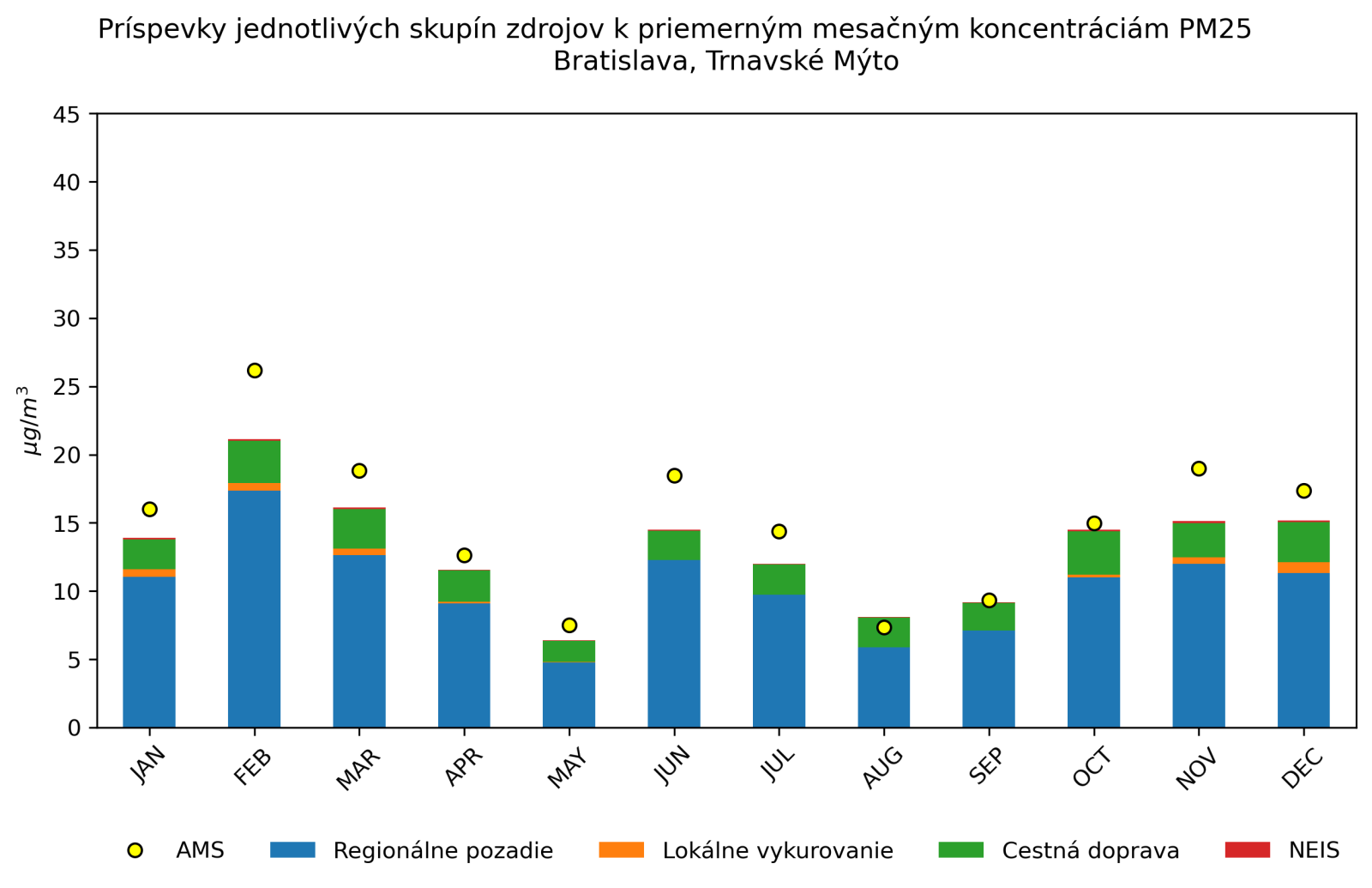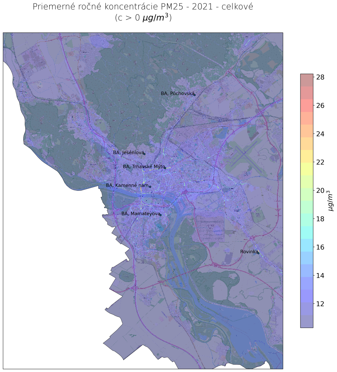 v mieste monitorovacej stanice Bratislava, Trnavské Mýto