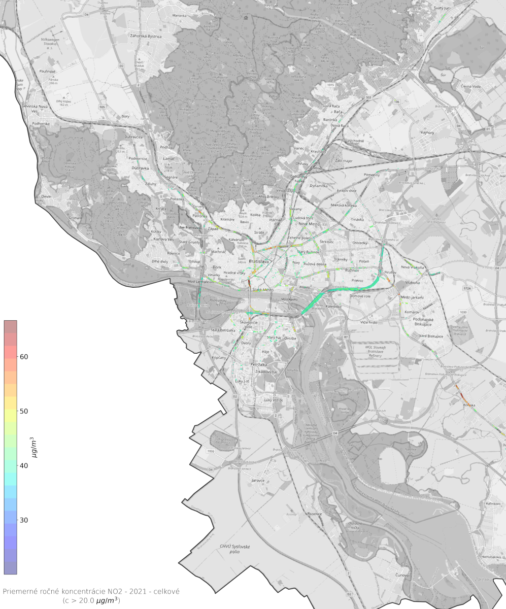 Priemerné ročné koncentrácie NO2