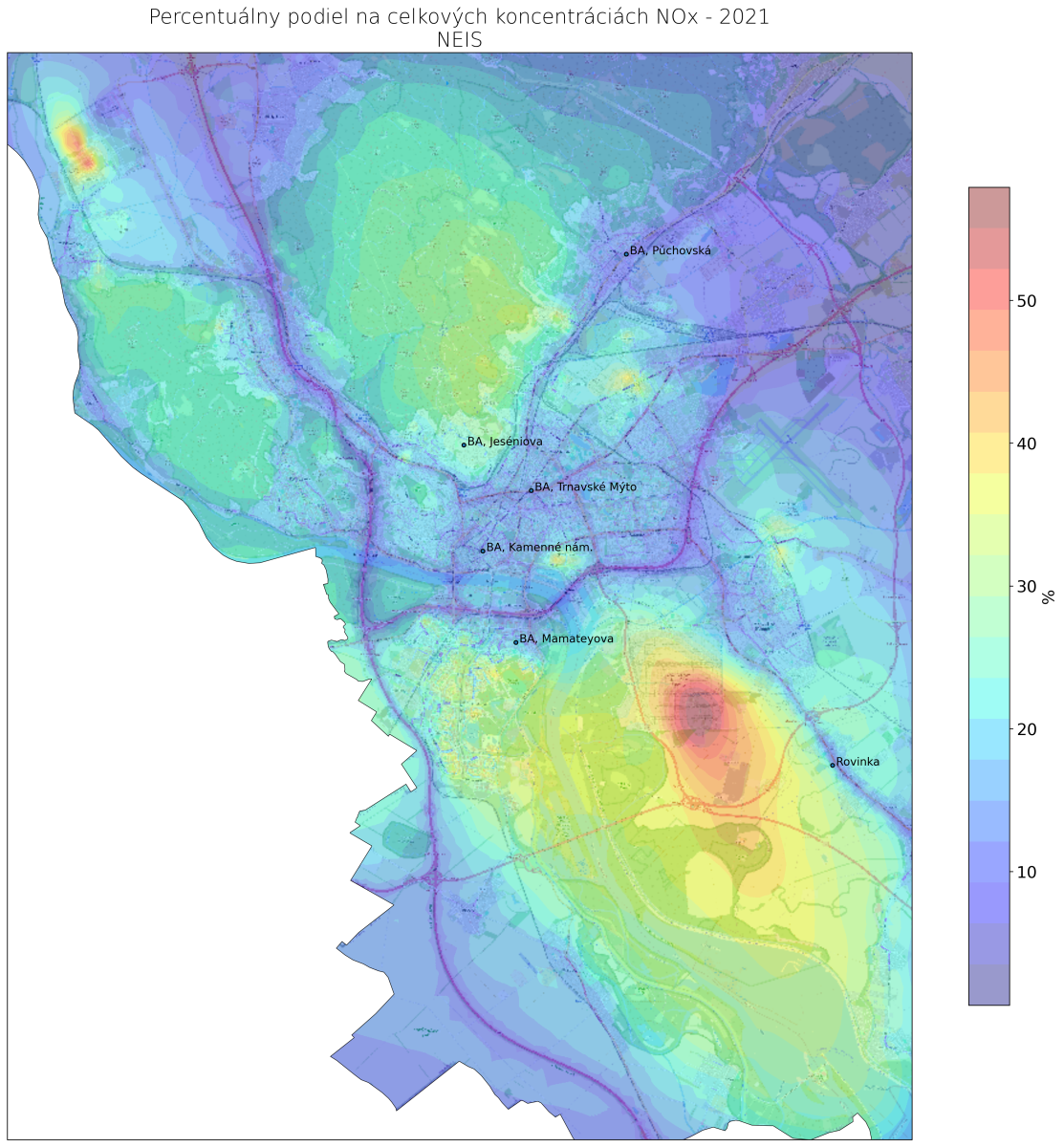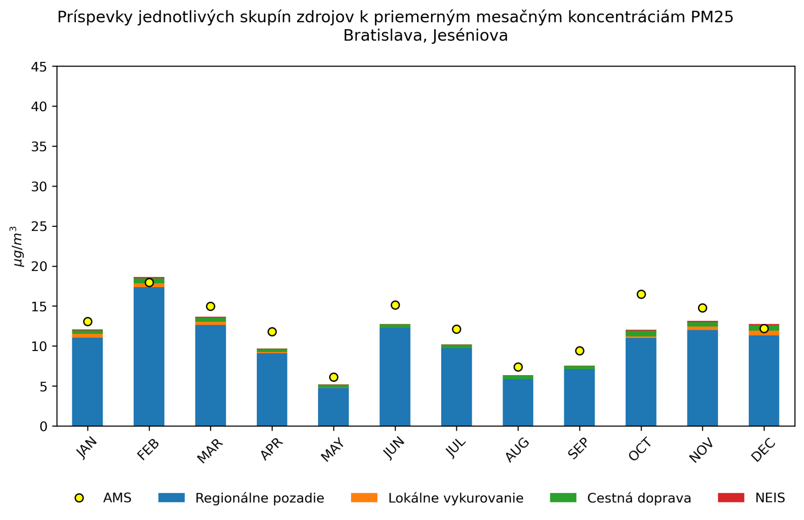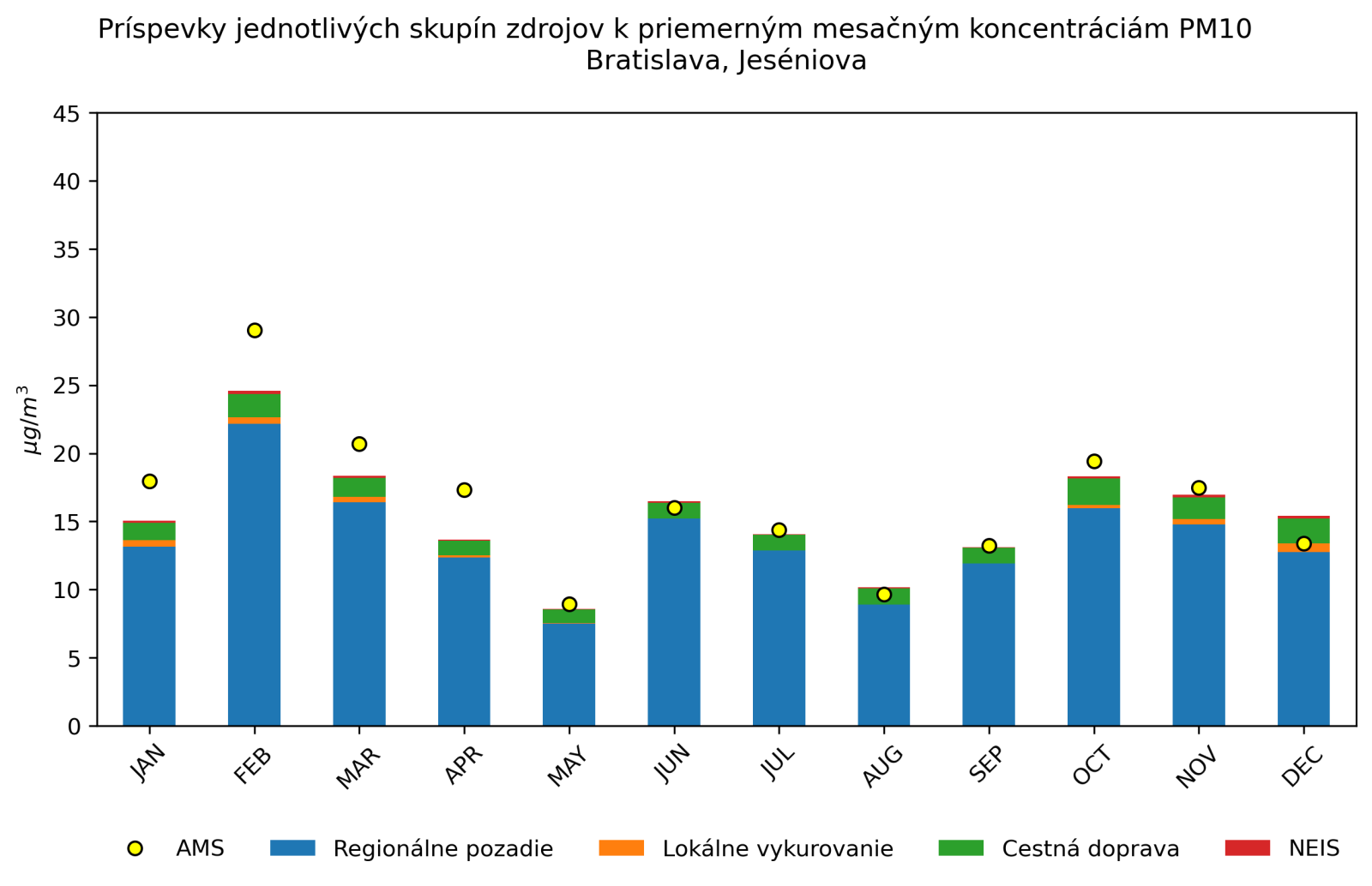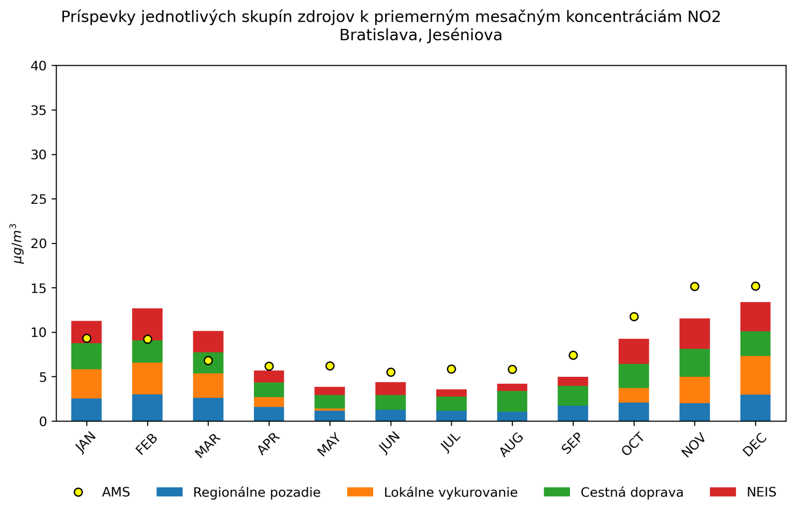 v mieste monitorovacej stanice Bratislava, Jeséniova
