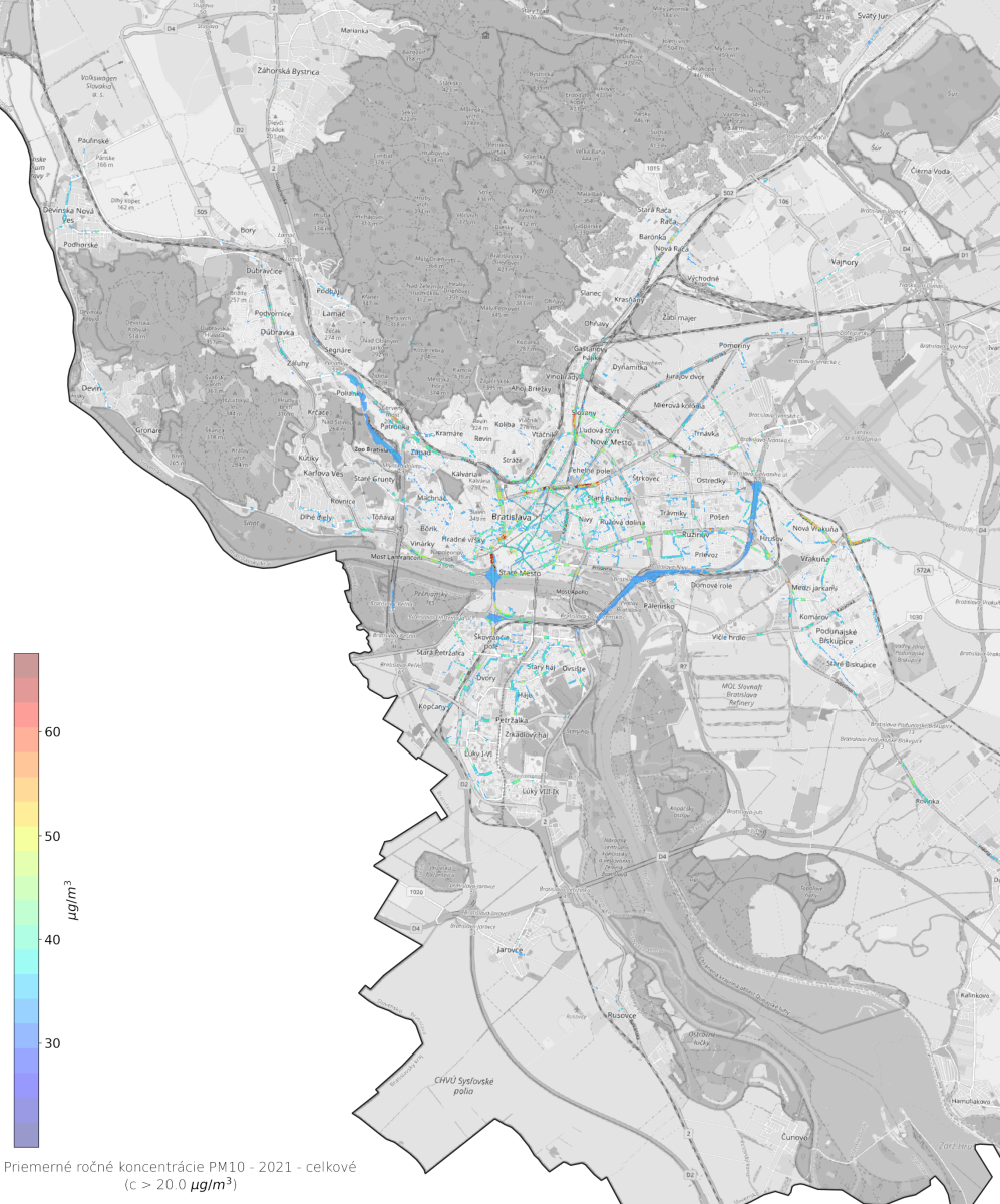 Priemerné ročné koncentrácie PM10