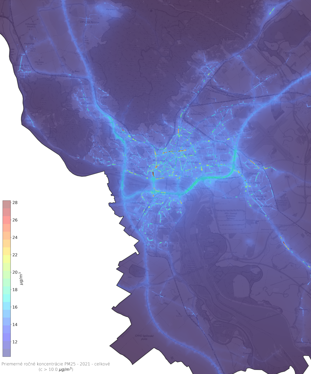 Priemerné ročné koncentrácie PM2,5