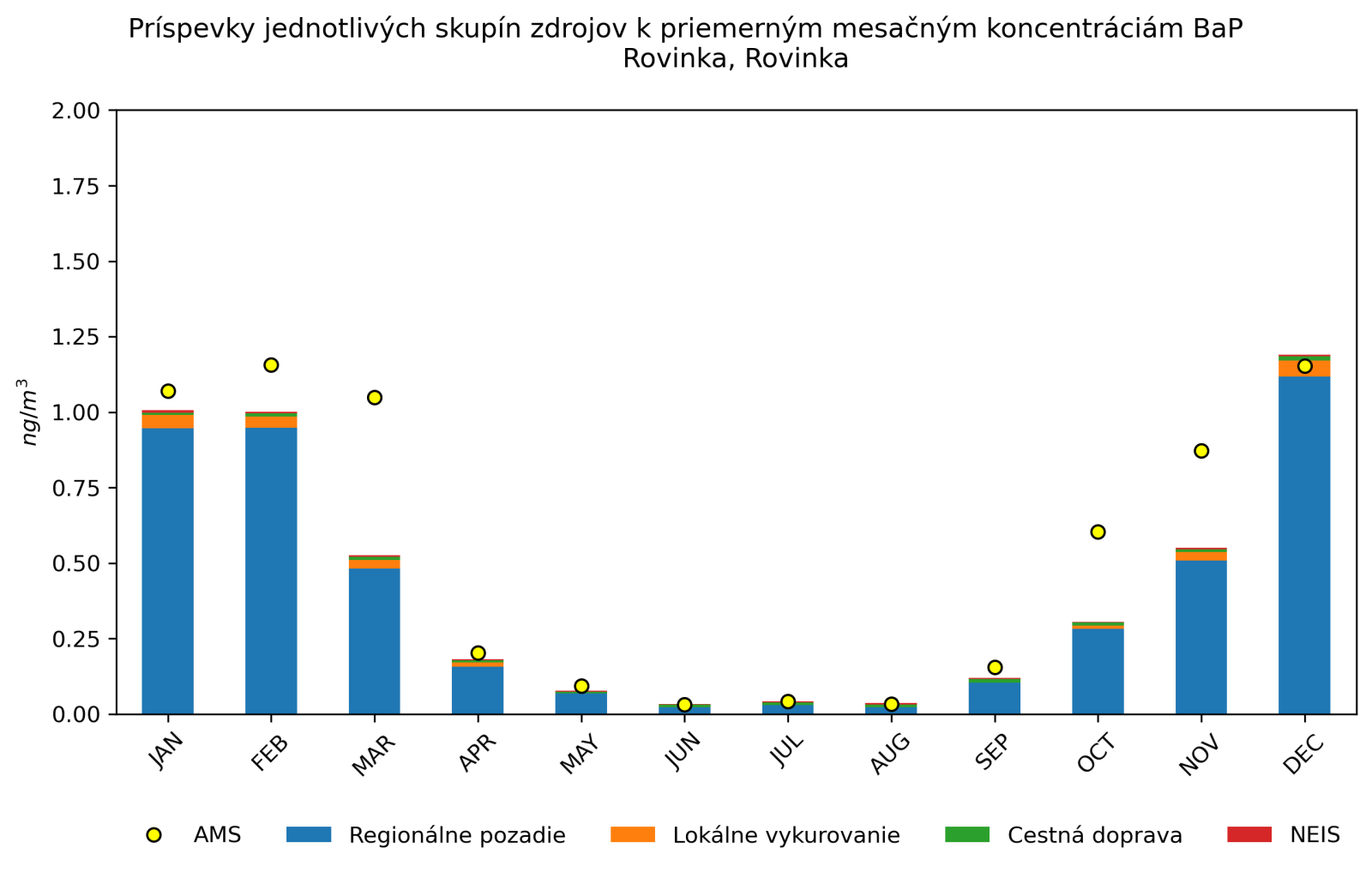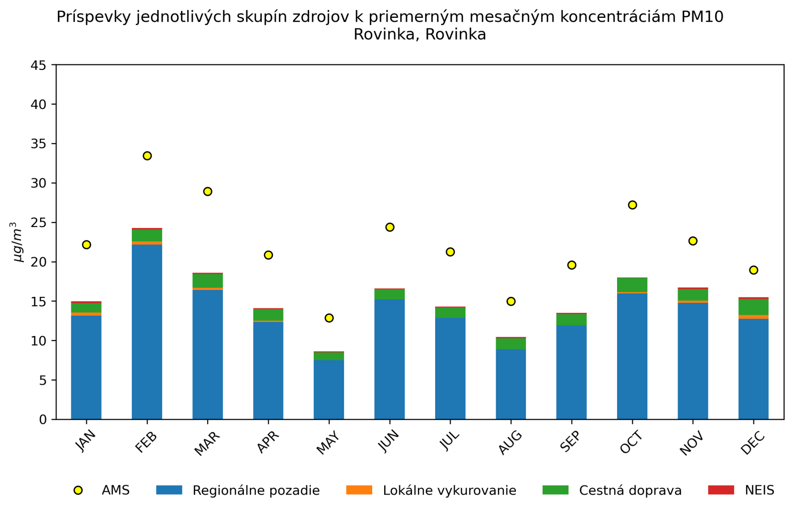 Podiel jednotlivých skupín zdrojov a porovnanie s nameranými koncentráciami