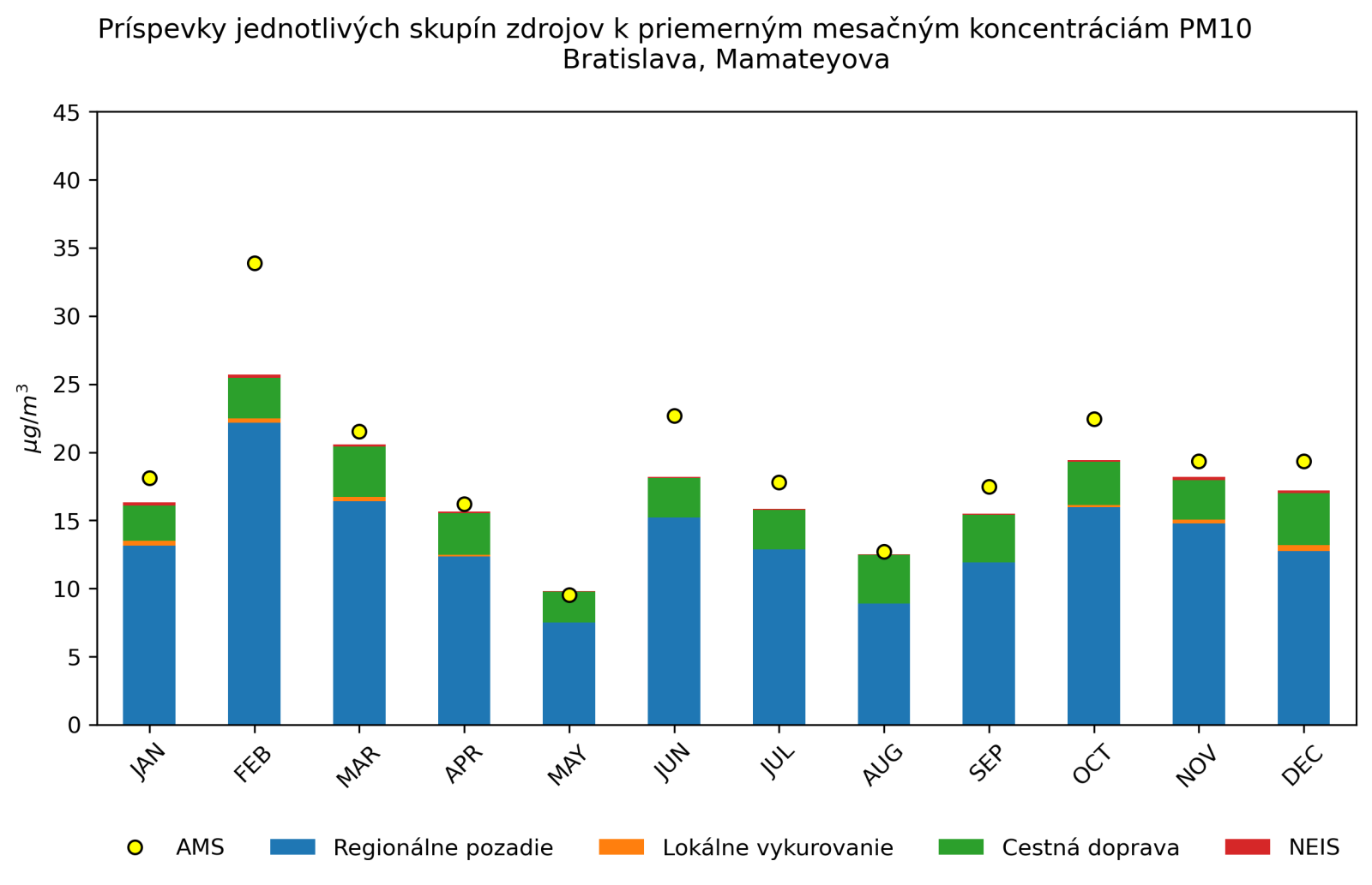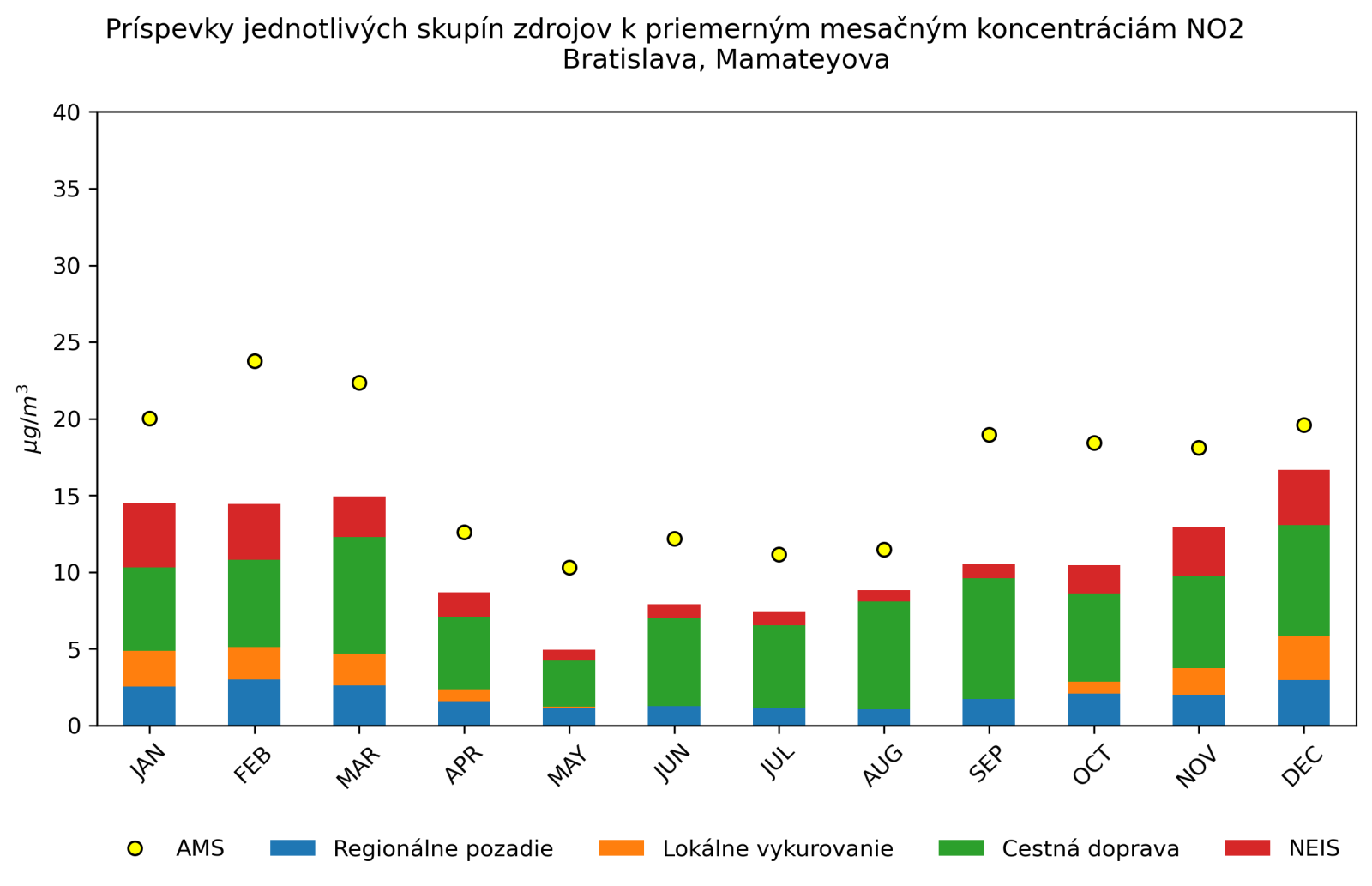 v mieste monitorovacej stanice Bratislava, Mamateyova