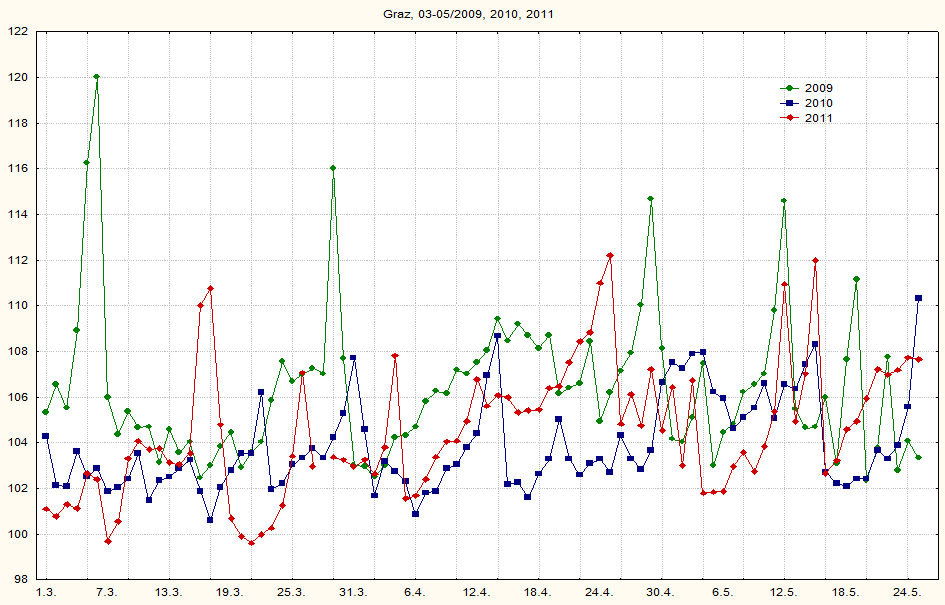 Obr. 7 Príkon dávkového ekvivalentu gama žiarenia, Graz, 2009 – 2011