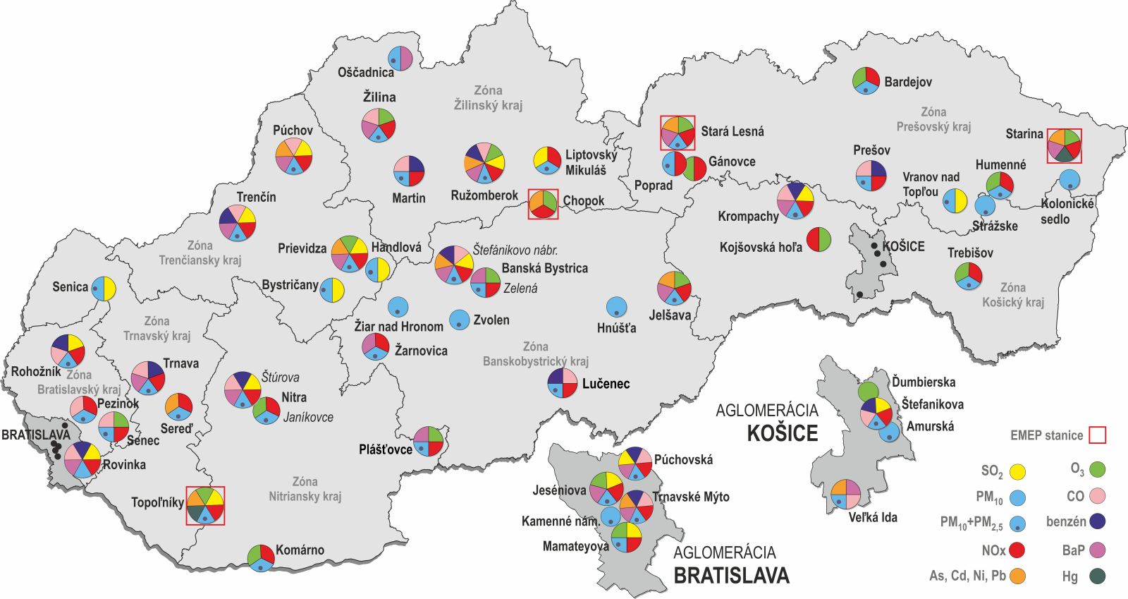 Na 2 monitorovacích staniciach sa priemerná ročná koncentrácia BaP práve rovná cieľovej hodnote (Banská Bystrica, Štefánikovo nábr. a Martin, Jesenského).