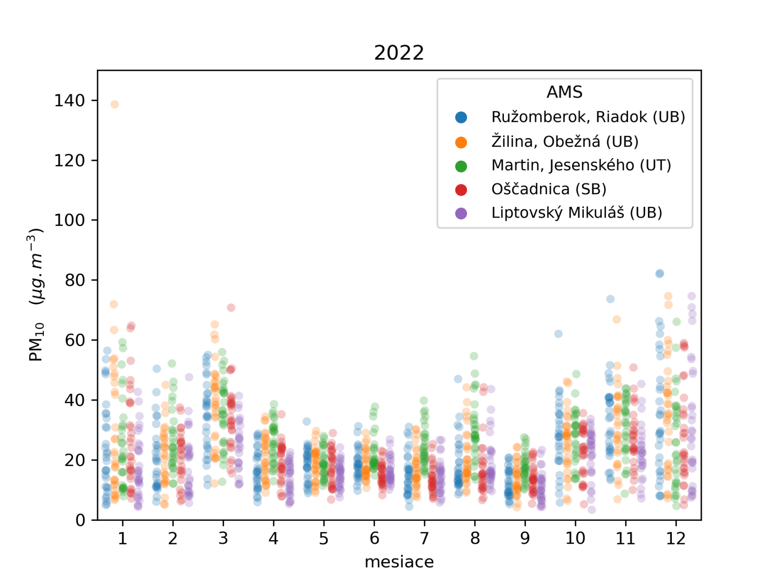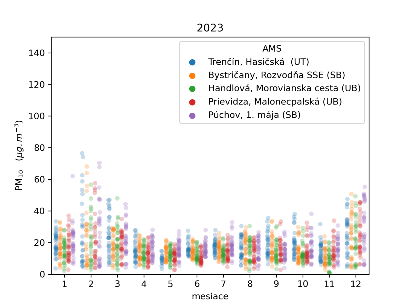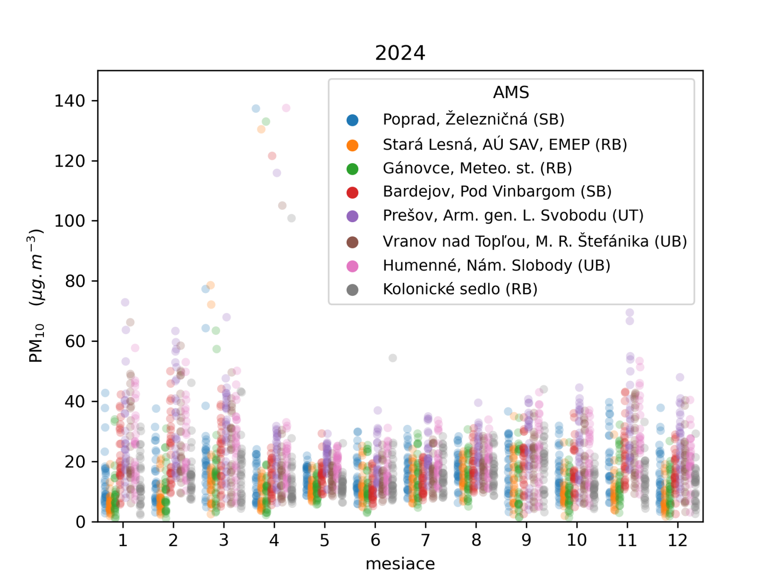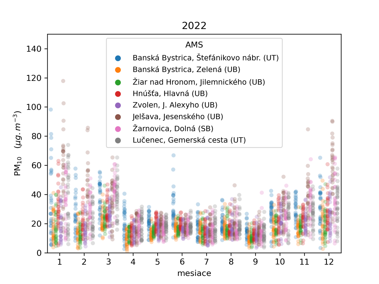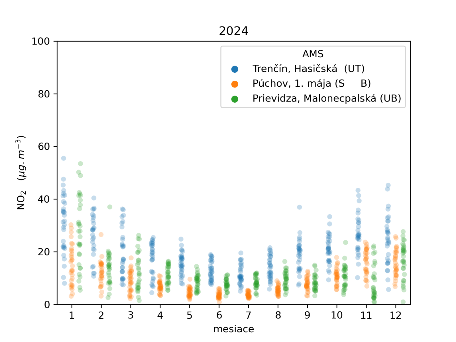 Poznámka: Pre účely hodnotenia kvality ovzdušia je územie Slovenska rozdelené na aglomerácia a zóny, rozdelenie je popísané na web stránke SHMÚ.V grafoch je v legende pri monitorovacej stanici v zátvorke uvedený typ oblasti a stanice.