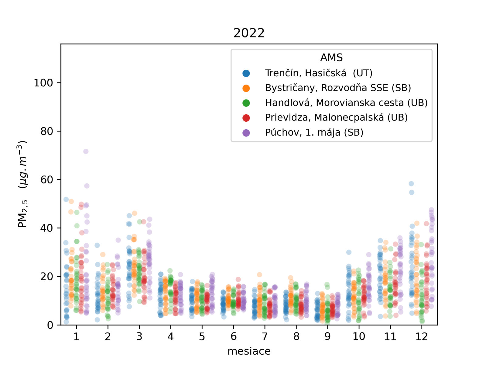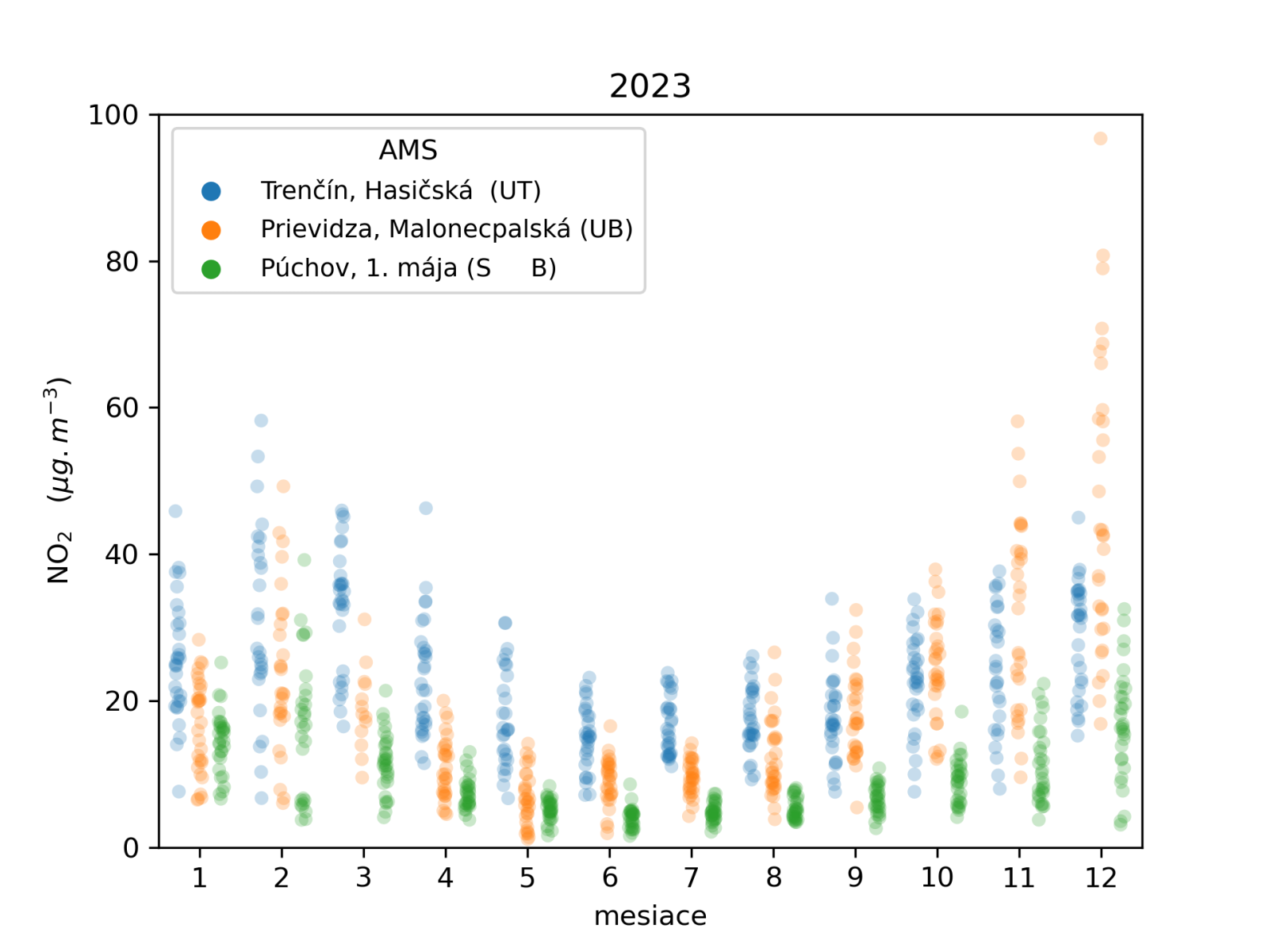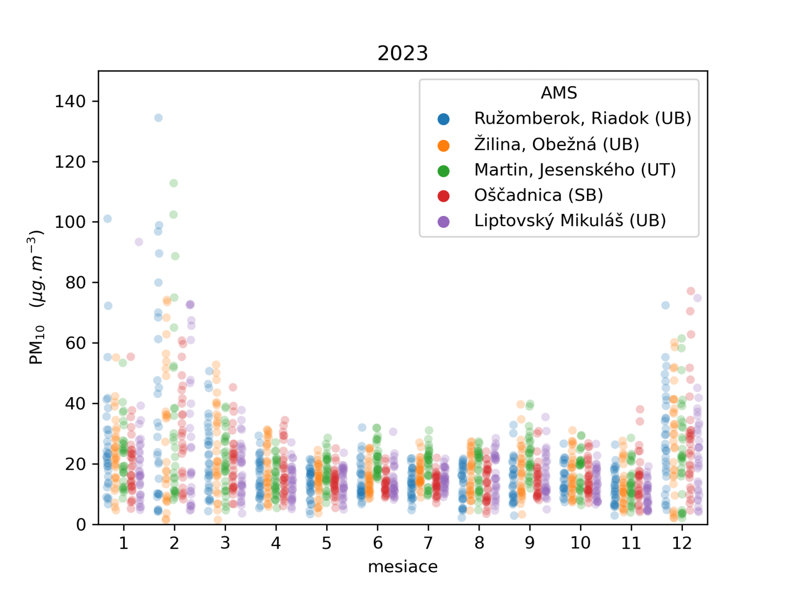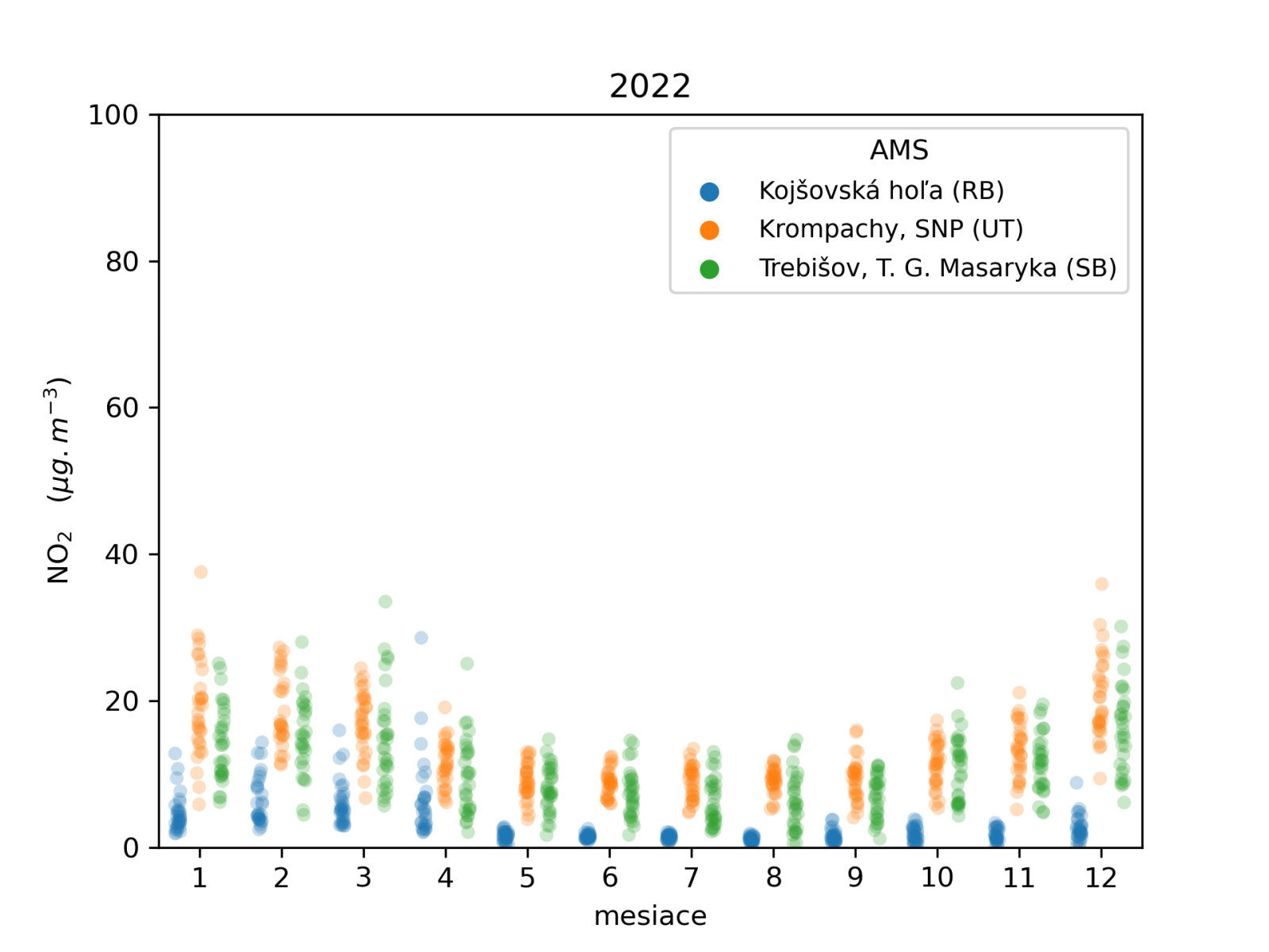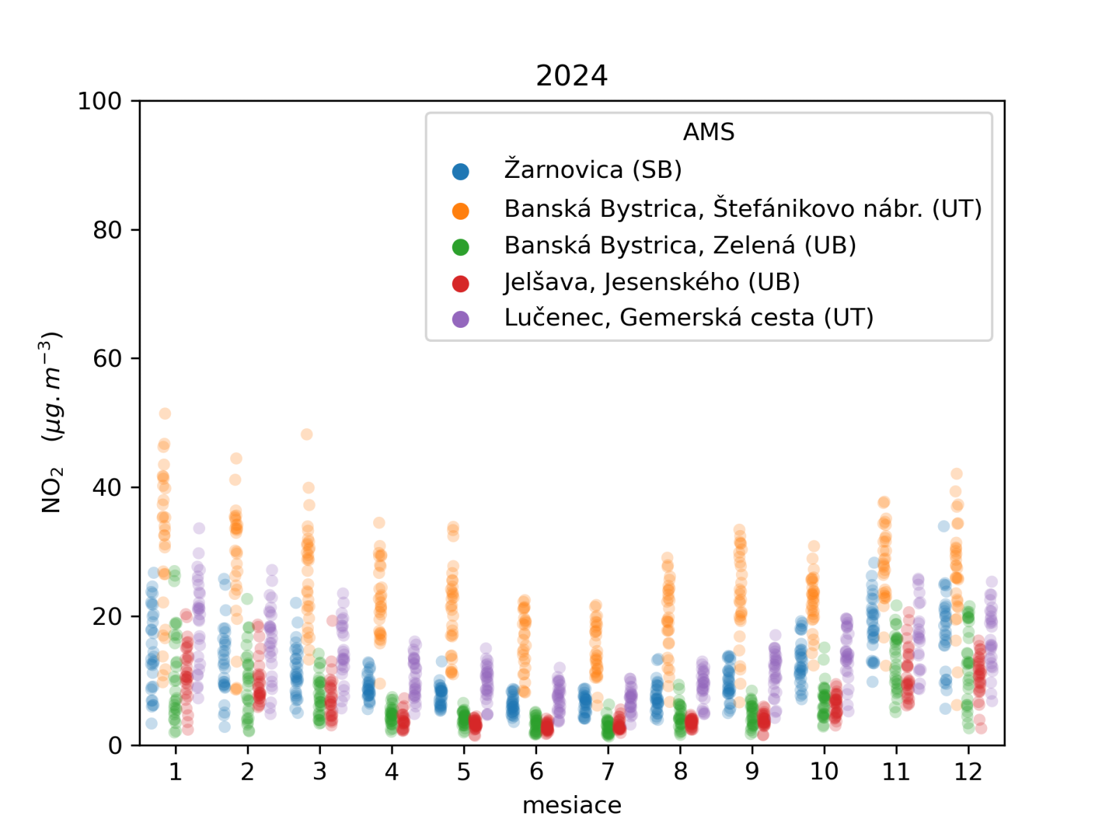 Poznámka: Pre účely hodnotenia kvality ovzdušia je územie Slovenska rozdelené na aglomerácia a zóny, rozdelenie je popísané na web stránke SHMÚ.V grafoch je v legende pri monitorovacej stanici v zátvorke uvedený typ oblasti a stanice.