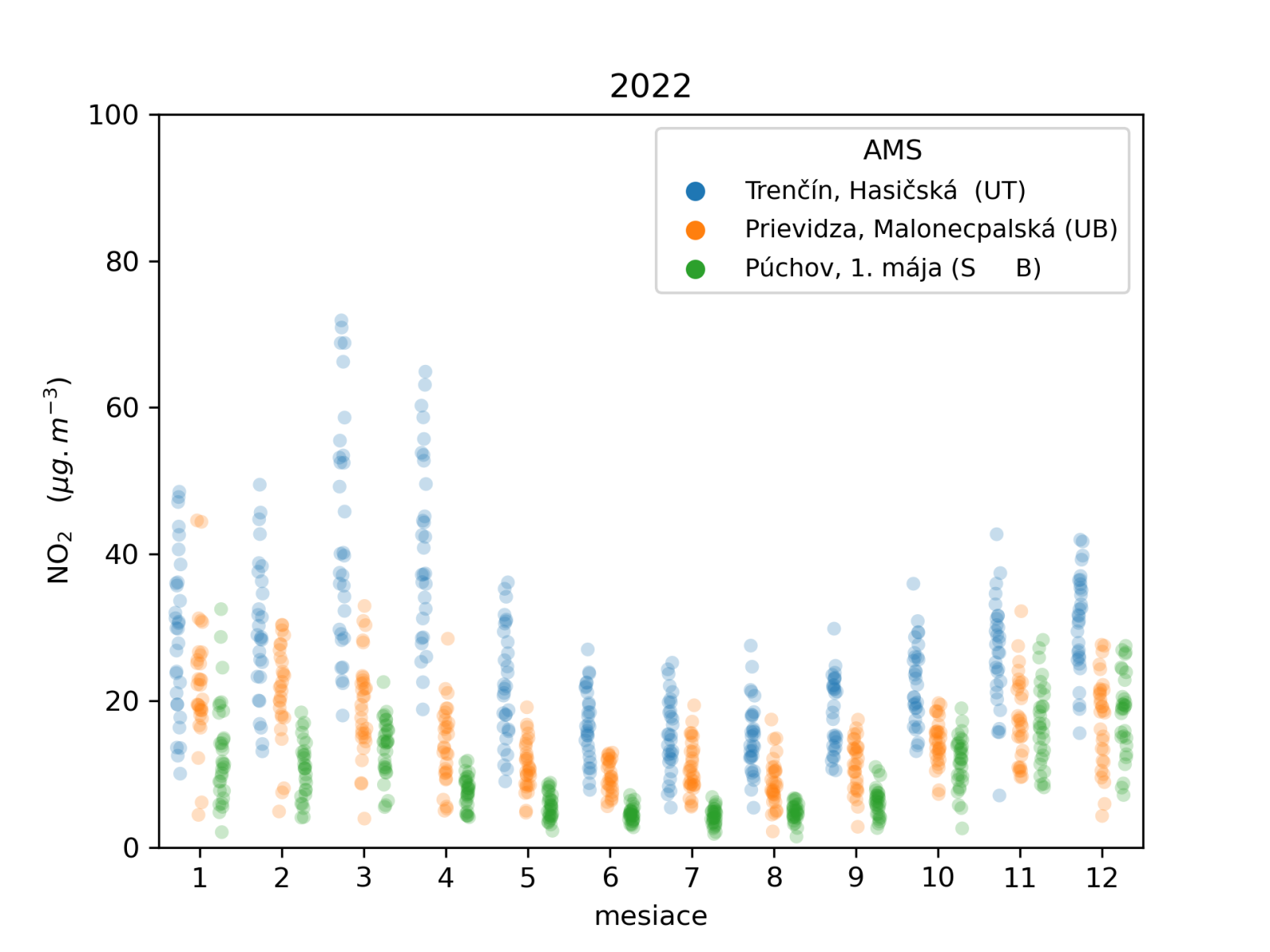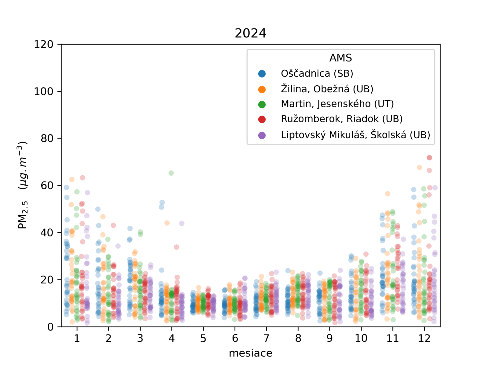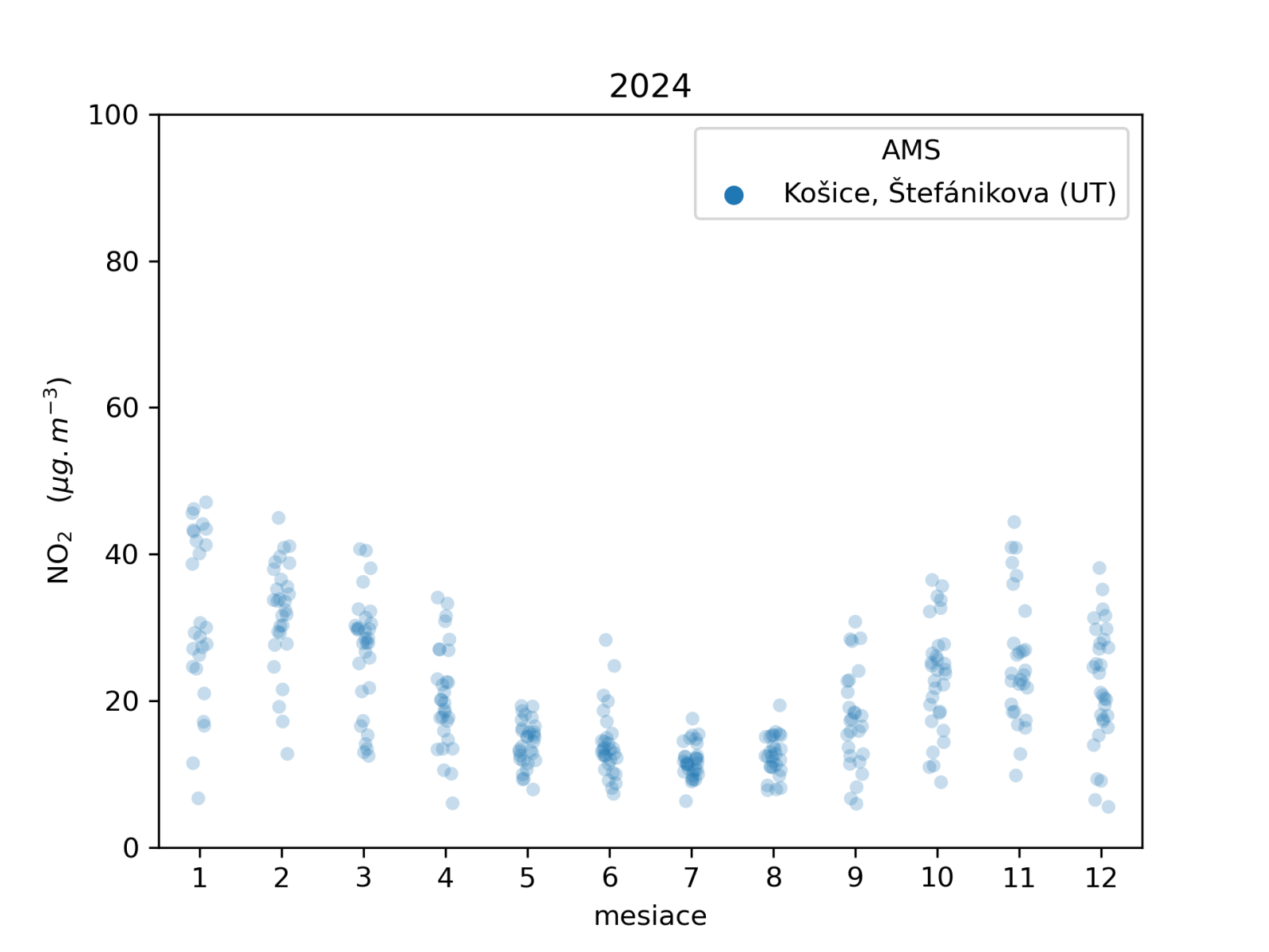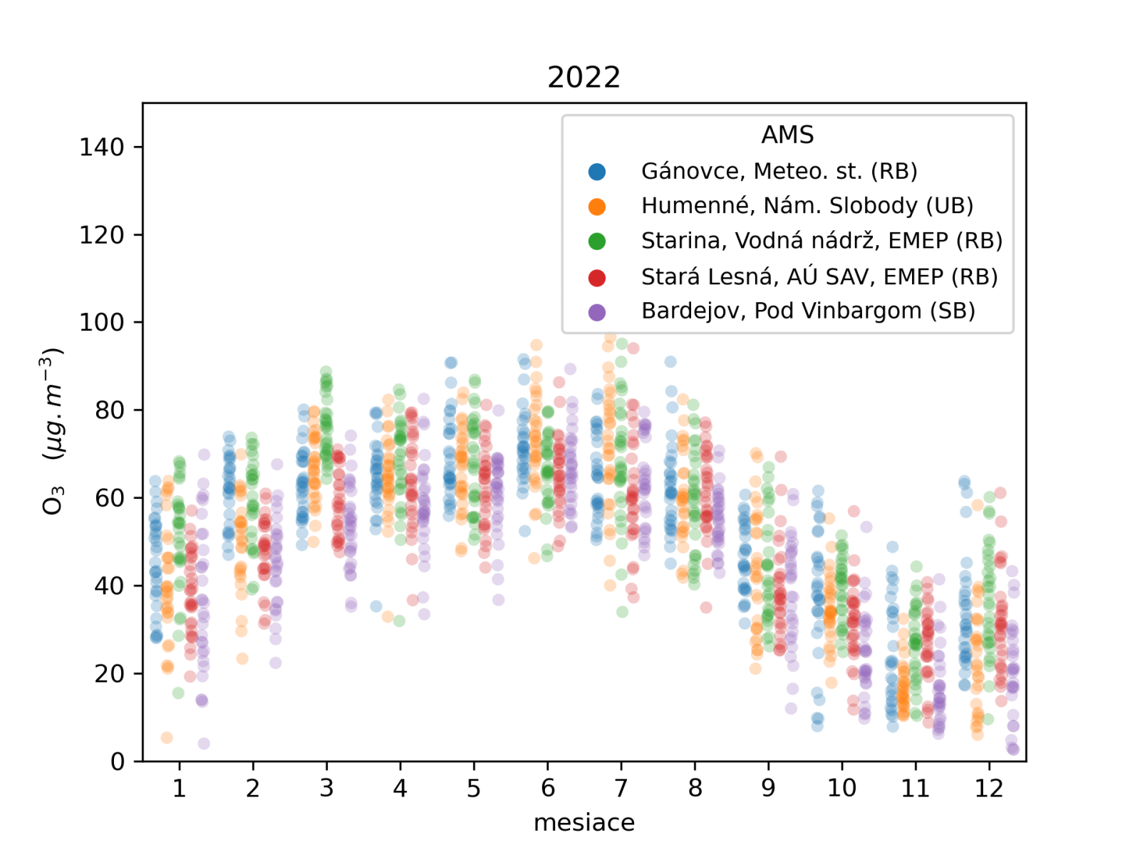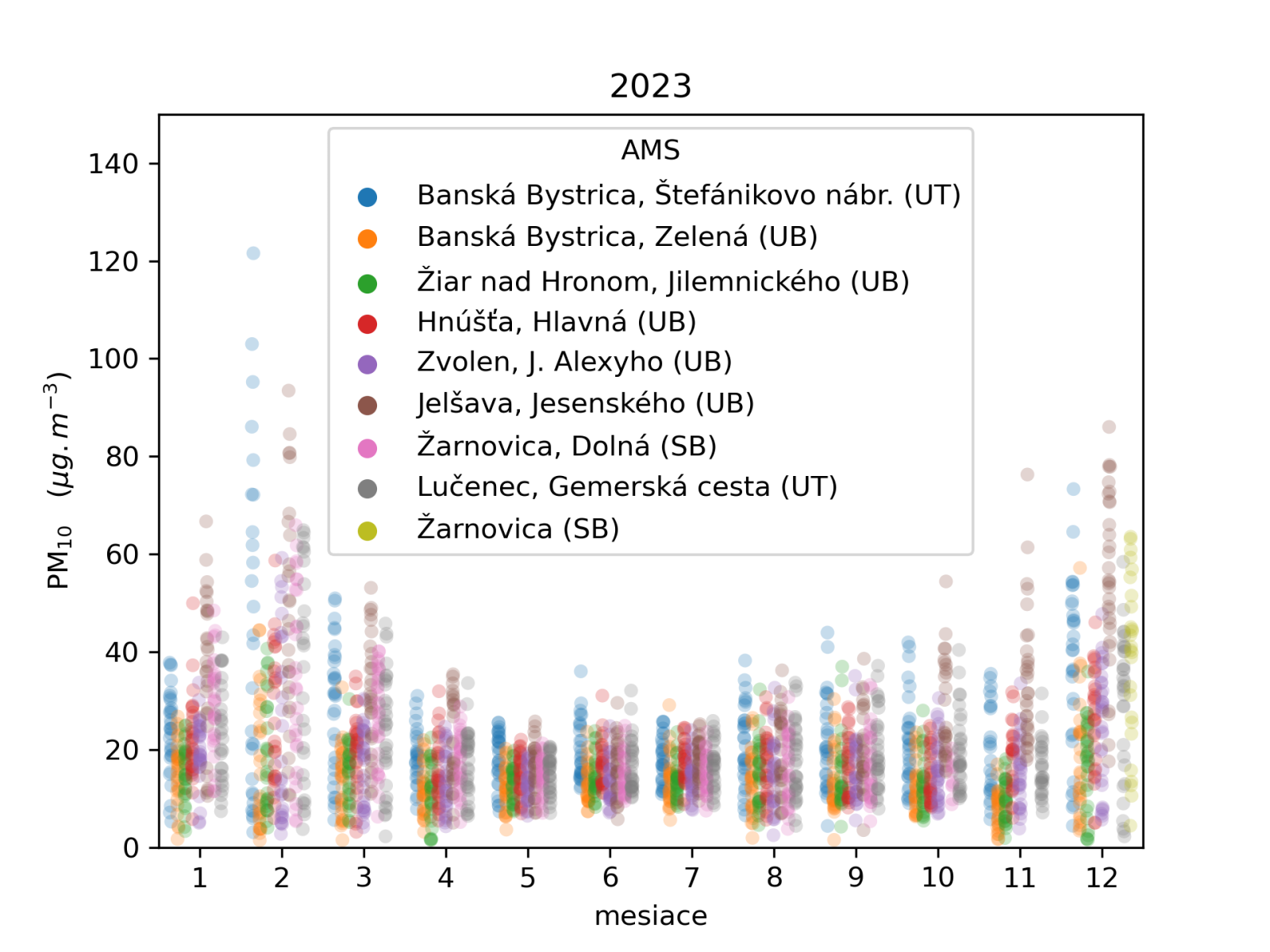 Poznámka: Pre účely hodnotenia kvality ovzdušia je územie Slovenska rozdelené na aglomerácia a zóny, rozdelenie je popísané na web stránke SHMÚ.V grafoch je v legende pri monitorovacej stanici v zátvorke uvedený typ oblasti a stanice.