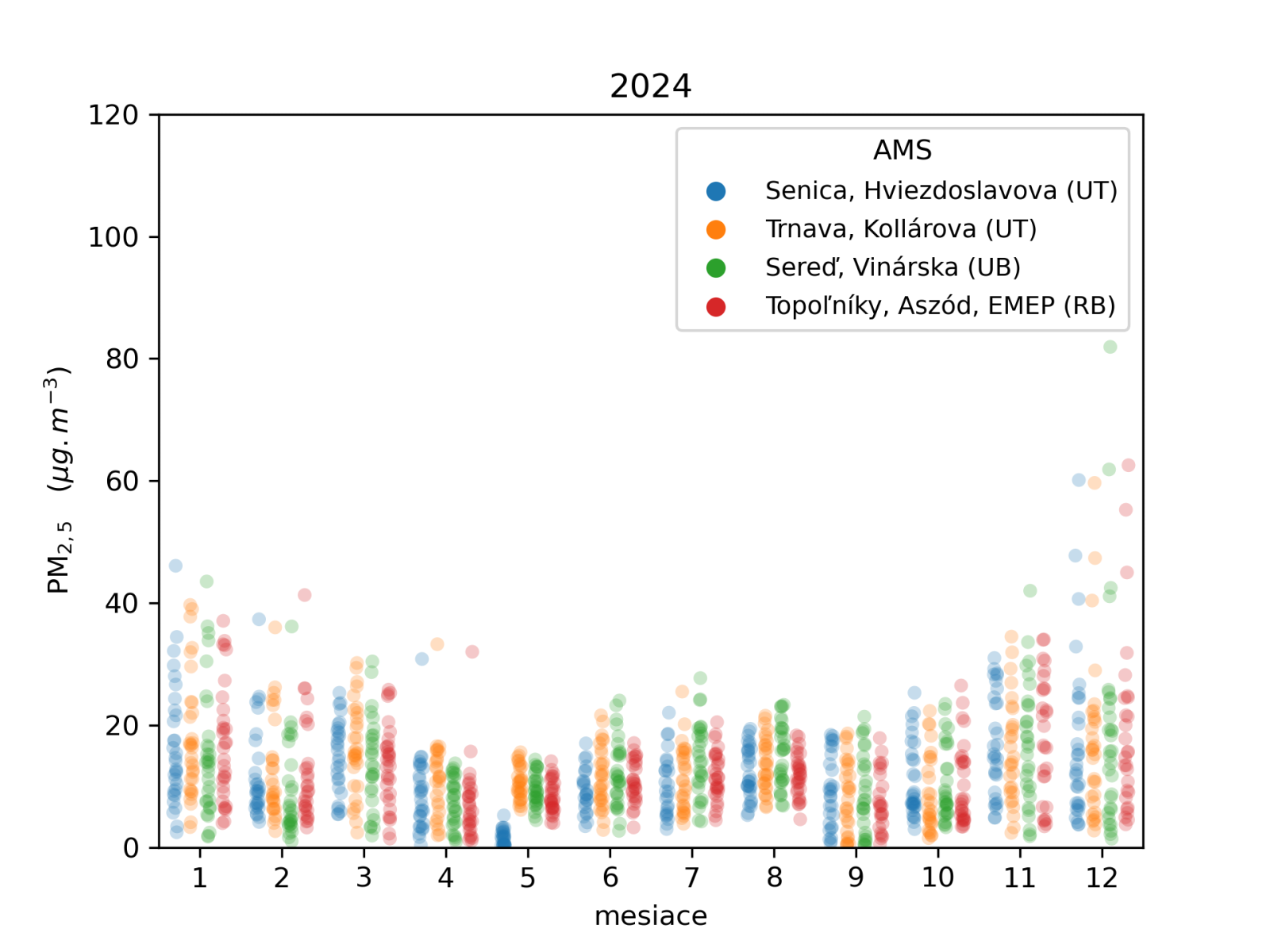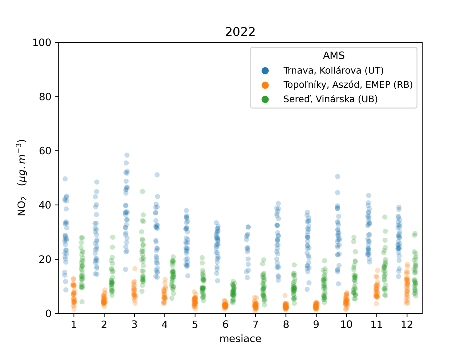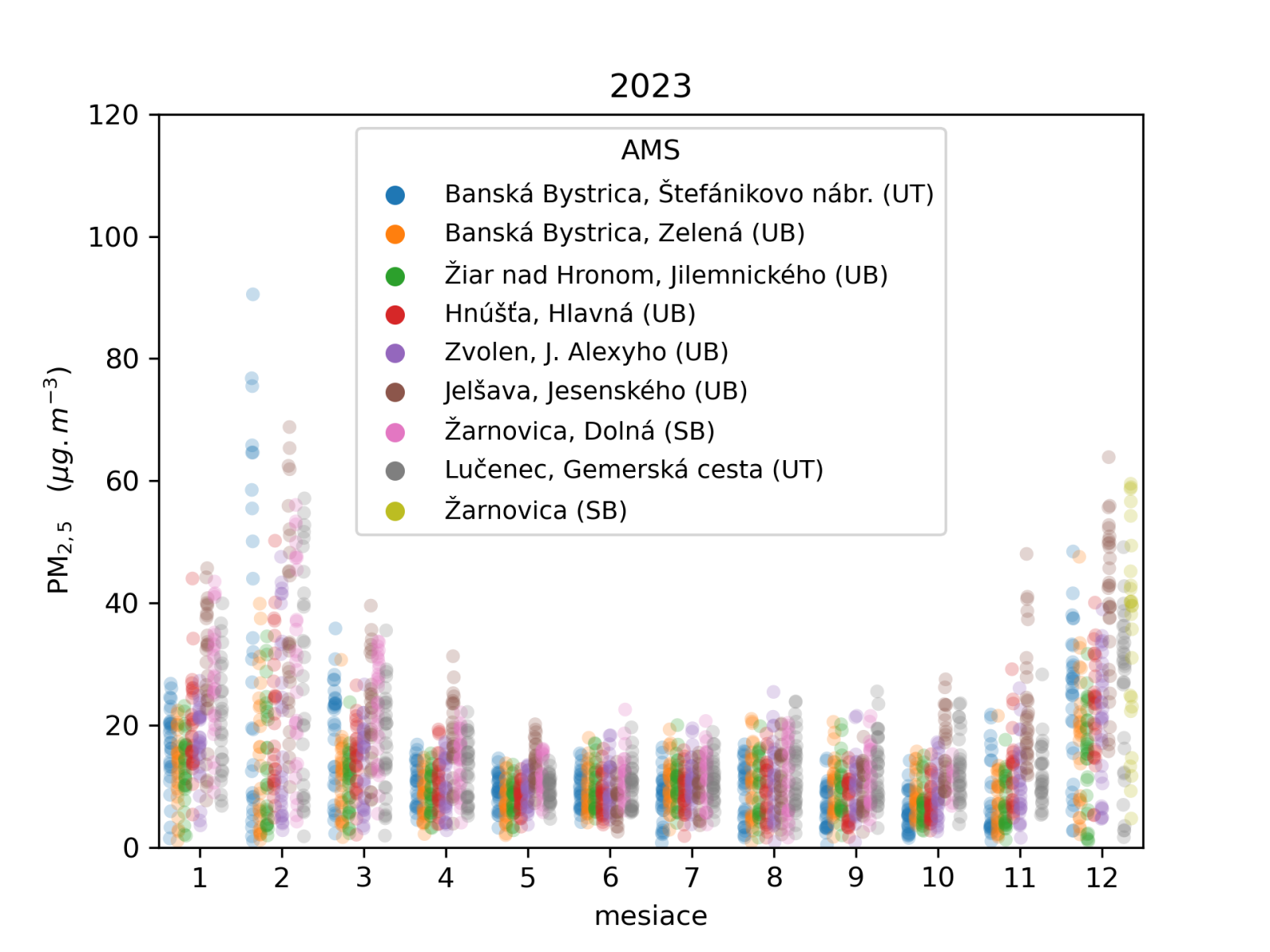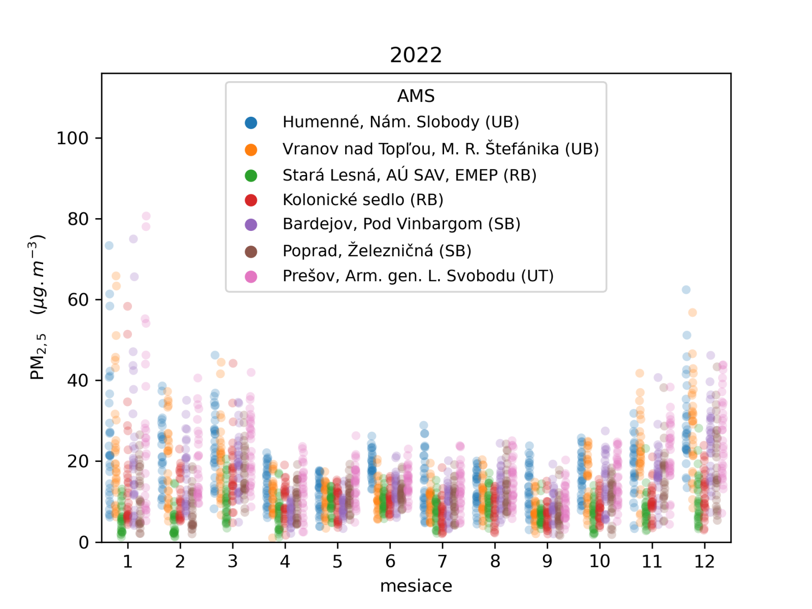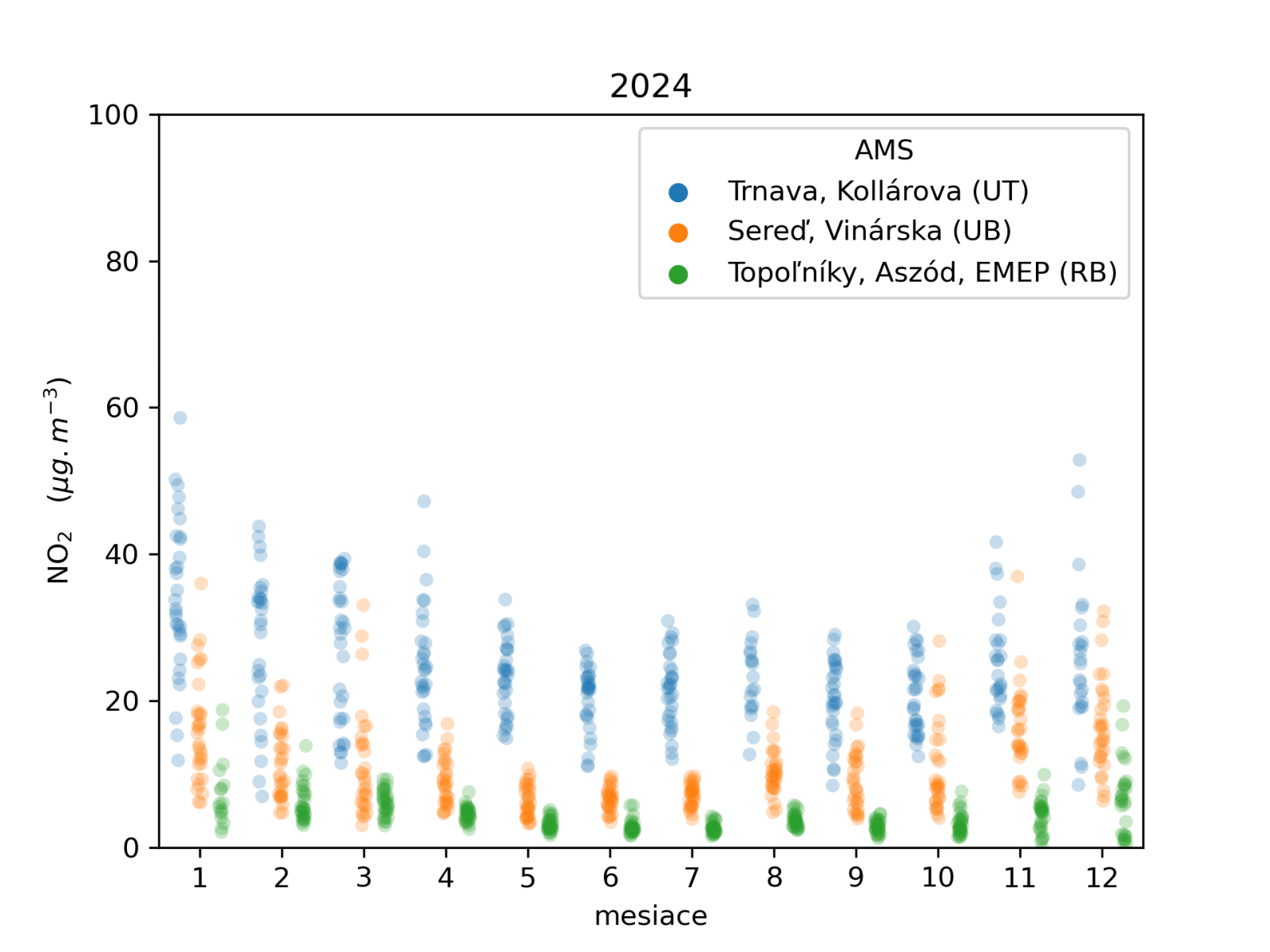 Poznámka: Pre účely hodnotenia kvality ovzdušia je územie Slovenska rozdelené na aglomerácia a zóny, rozdelenie je popísané na web stránke SHMÚ.V grafoch je v legende pri monitorovacej stanici v zátvorke uvedený typ oblasti a stanice.