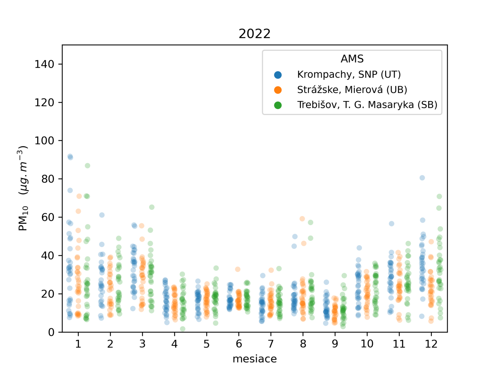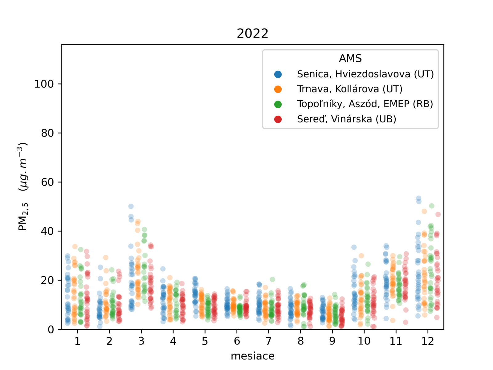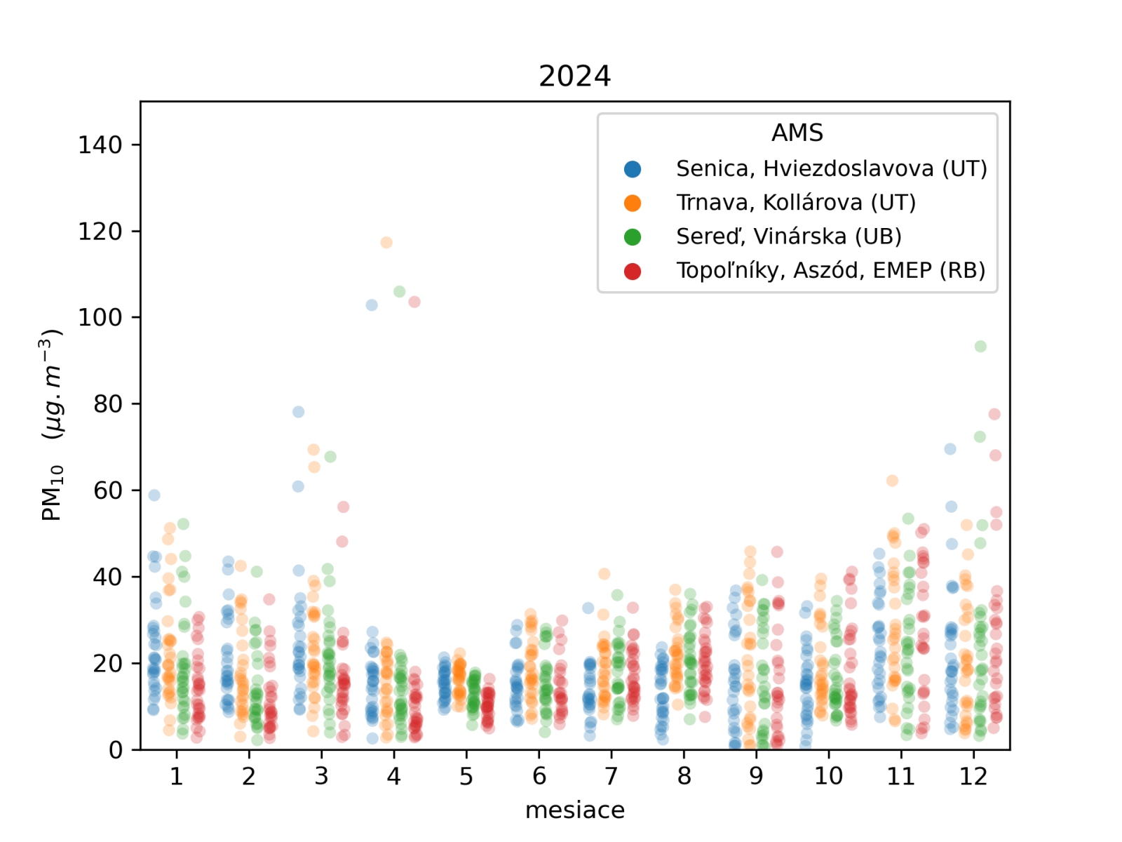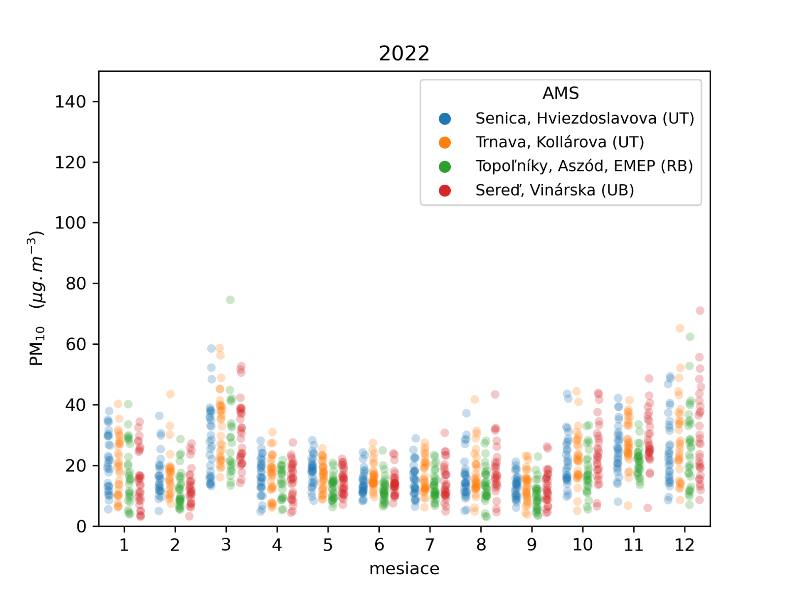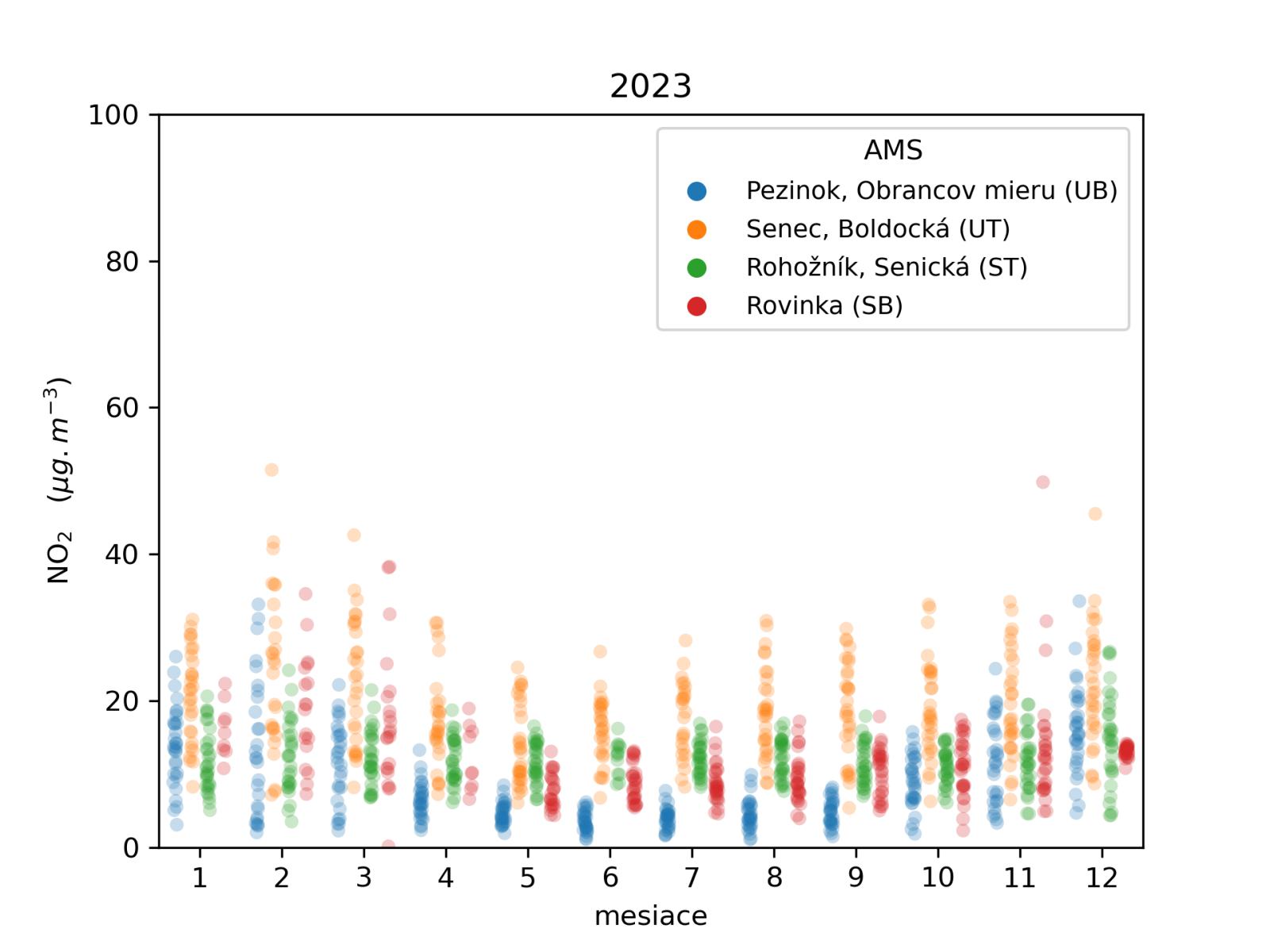 Poznámka: Pre účely hodnotenia kvality ovzdušia je územie Slovenska rozdelené na aglomerácia a zóny, rozdelenie je popísané na web stránke SHMÚ.V grafoch je v legende pri monitorovacej stanici v zátvorke uvedený typ oblasti a stanice.