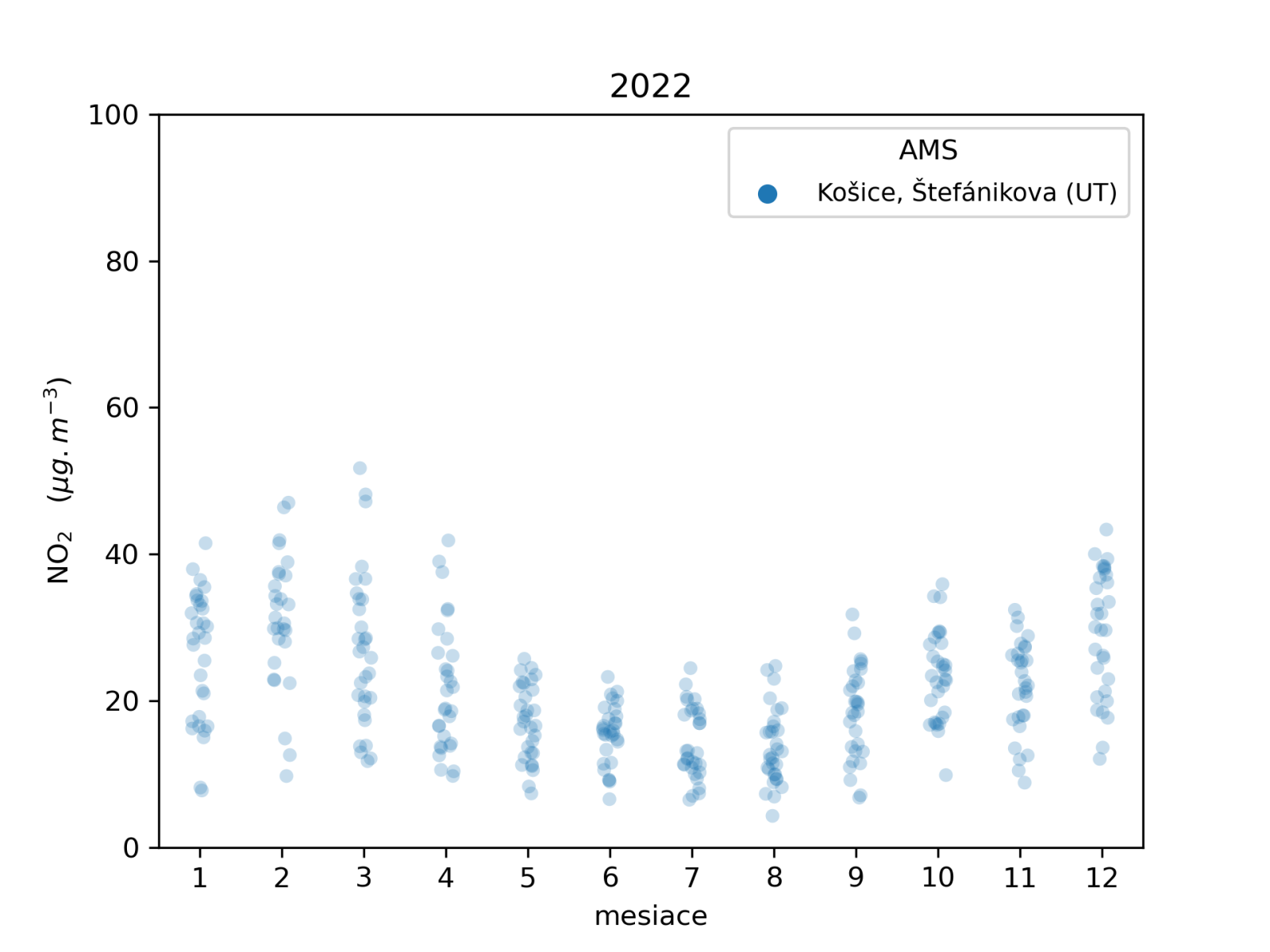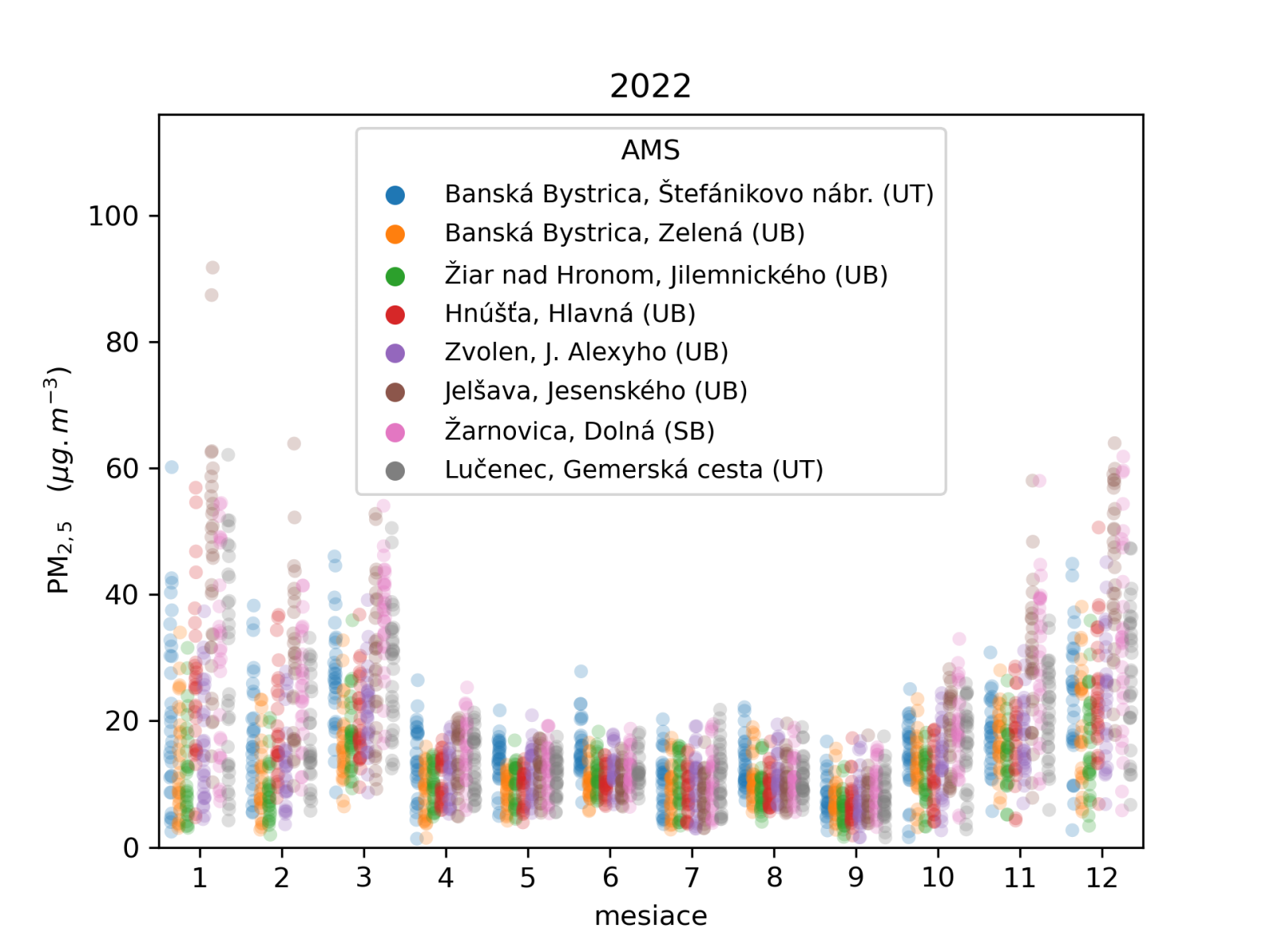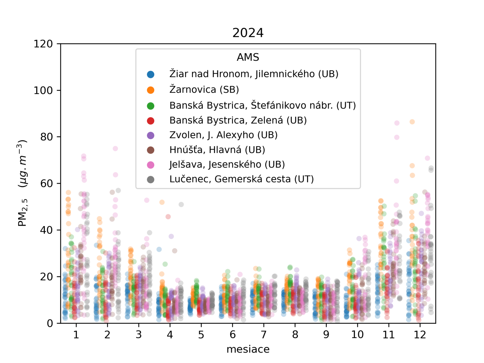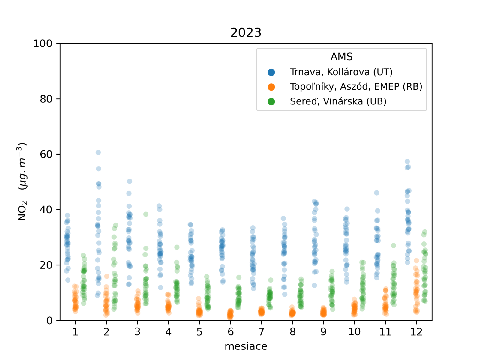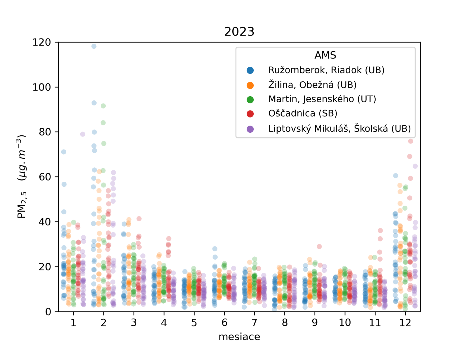 Poznámka: Pre účely hodnotenia kvality ovzdušia je územie Slovenska rozdelené na aglomerácia a zóny, rozdelenie je popísané na web stránke SHMÚ.V grafoch je v legende pri monitorovacej stanici v zátvorke uvedený typ oblasti a stanice.