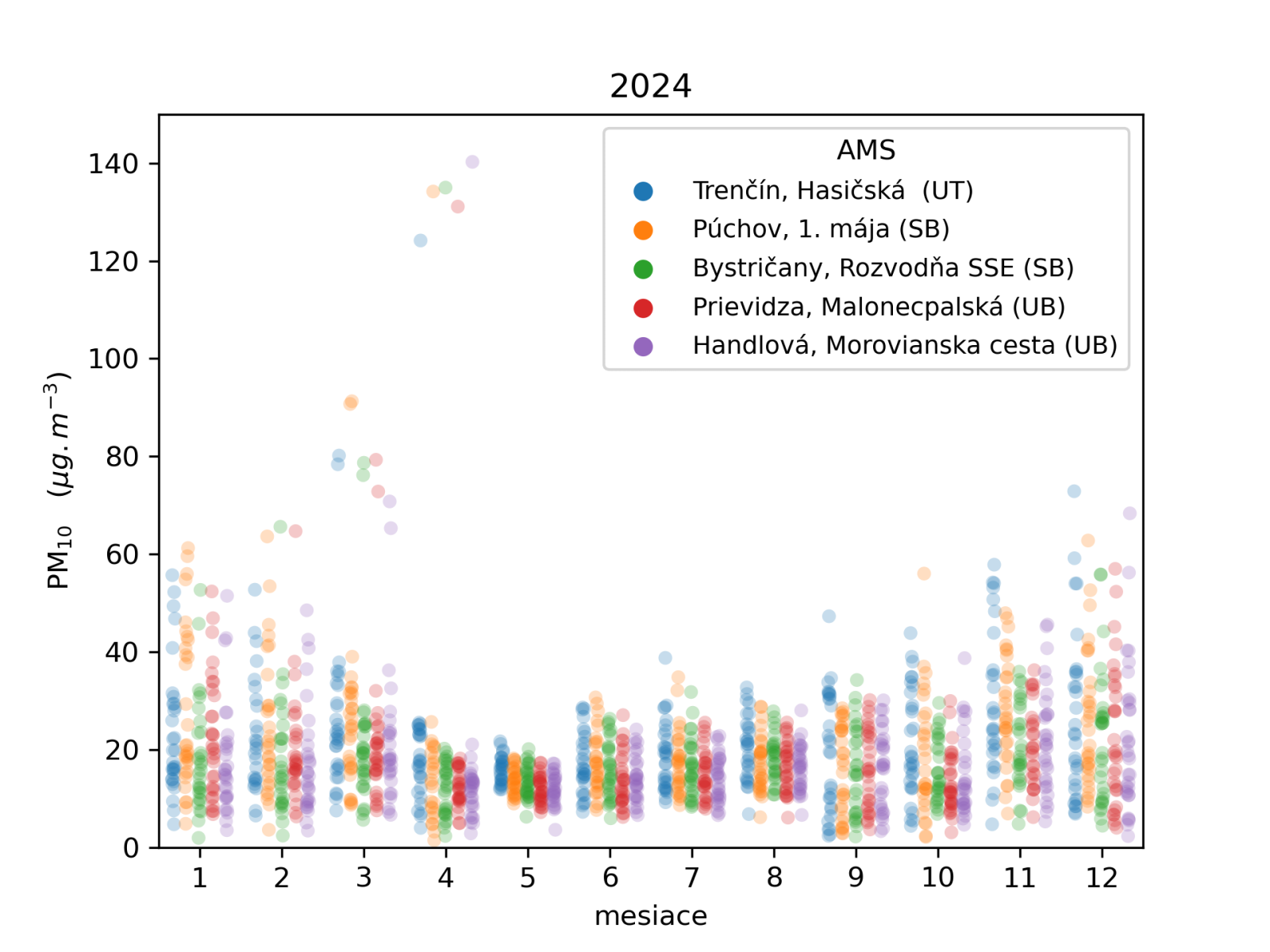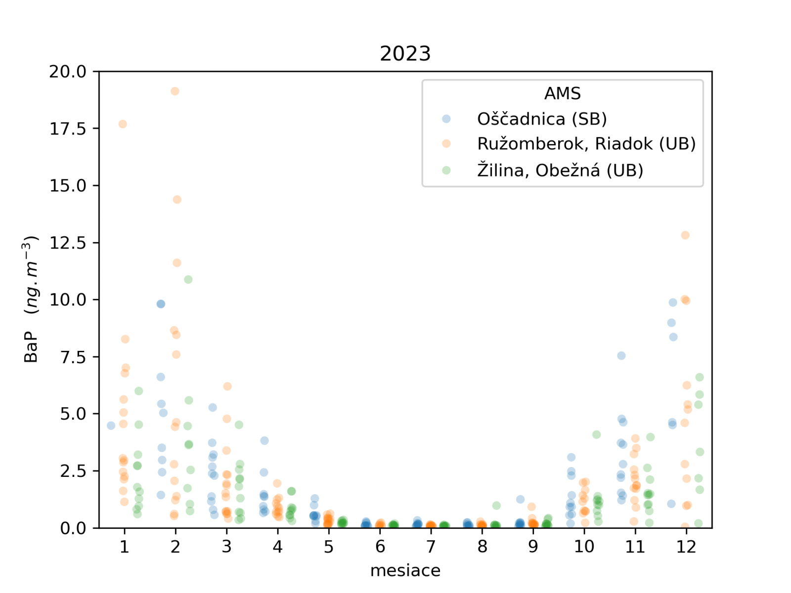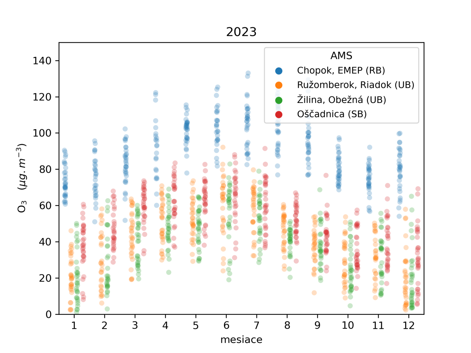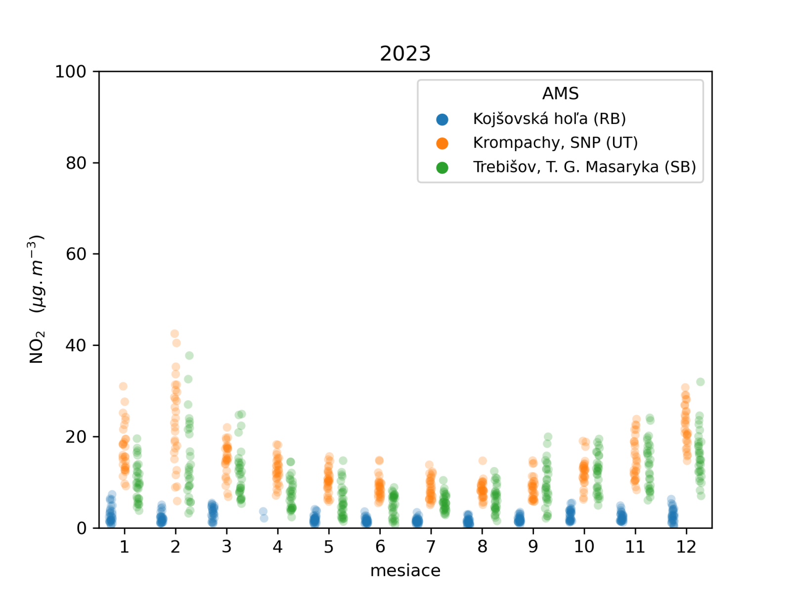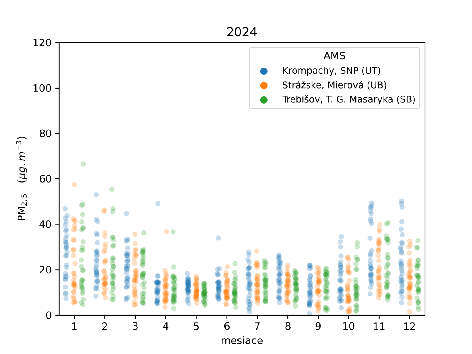Poznámka: Pre účely hodnotenia kvality ovzdušia je územie Slovenska rozdelené na aglomerácia a zóny, rozdelenie je popísané na web stránke SHMÚ.V grafoch je v legende pri monitorovacej stanici v zátvorke uvedený typ oblasti a stanice.