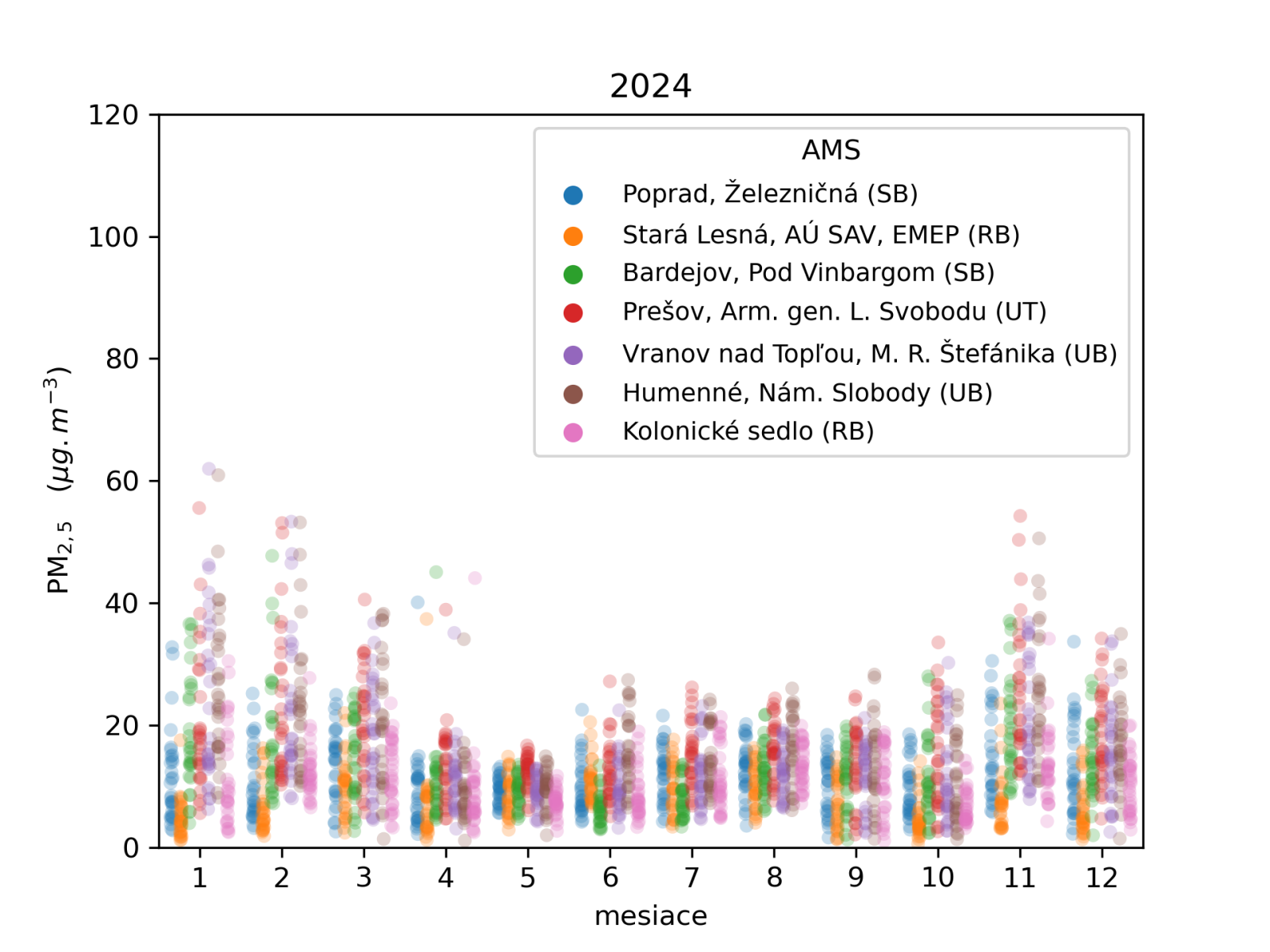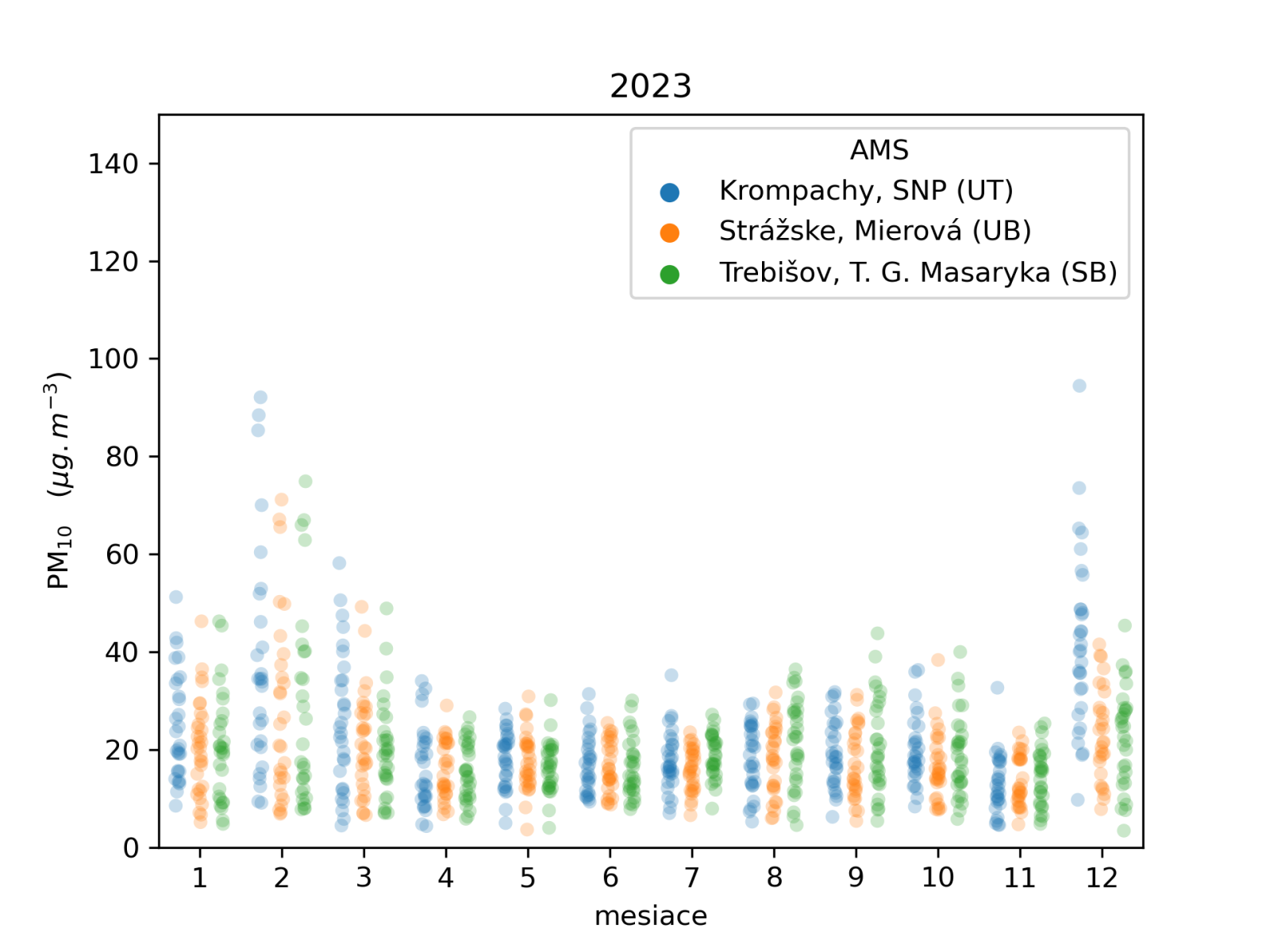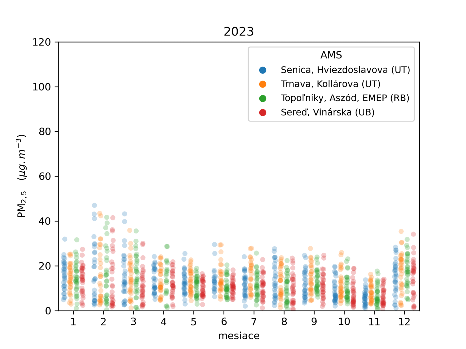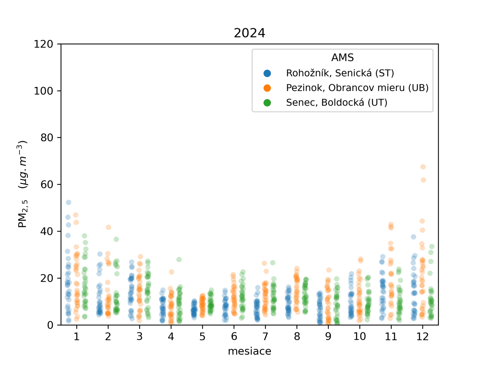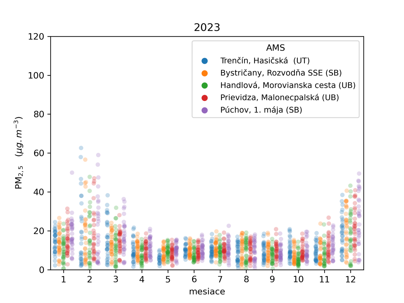 Poznámka: Pre účely hodnotenia kvality ovzdušia je územie Slovenska rozdelené na aglomerácia a zóny, rozdelenie je popísané na web stránke SHMÚ.V grafoch je v legende pri monitorovacej stanici v zátvorke uvedený typ oblasti a stanice.