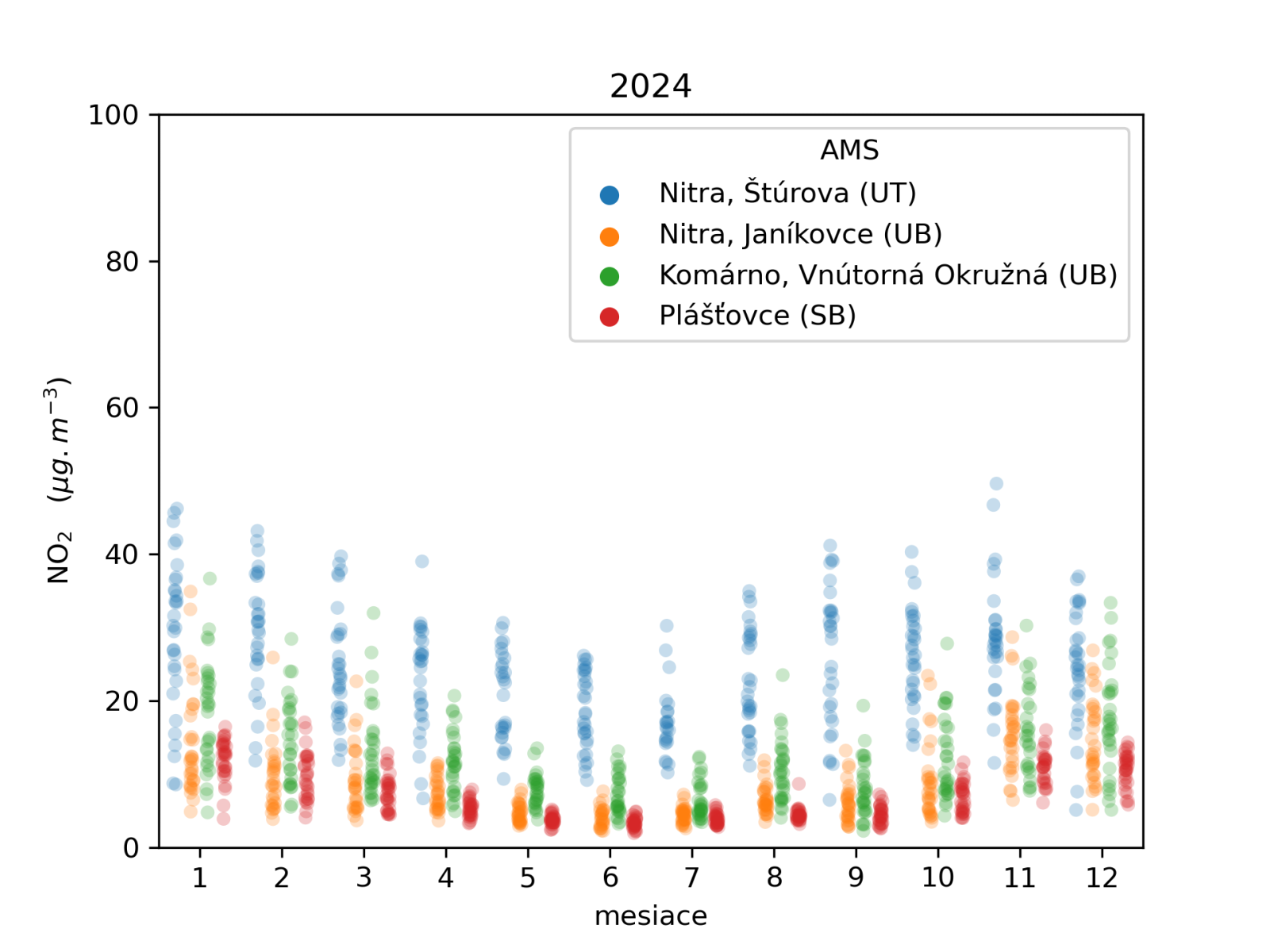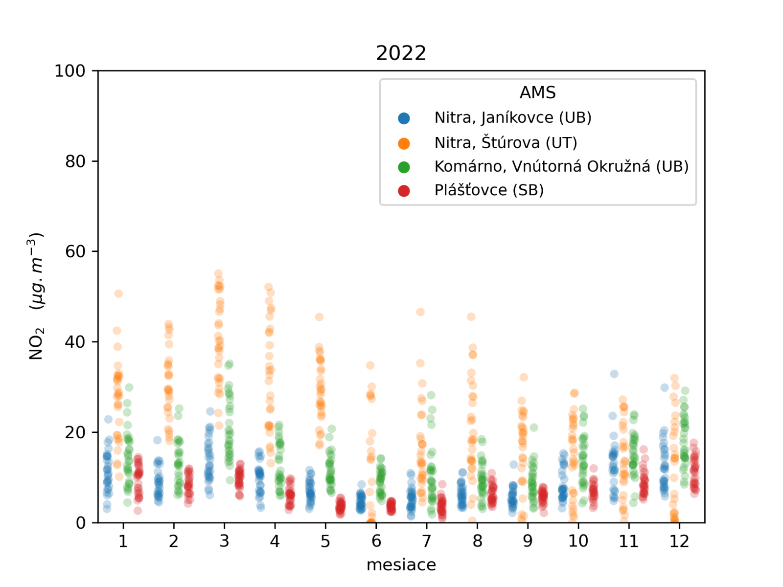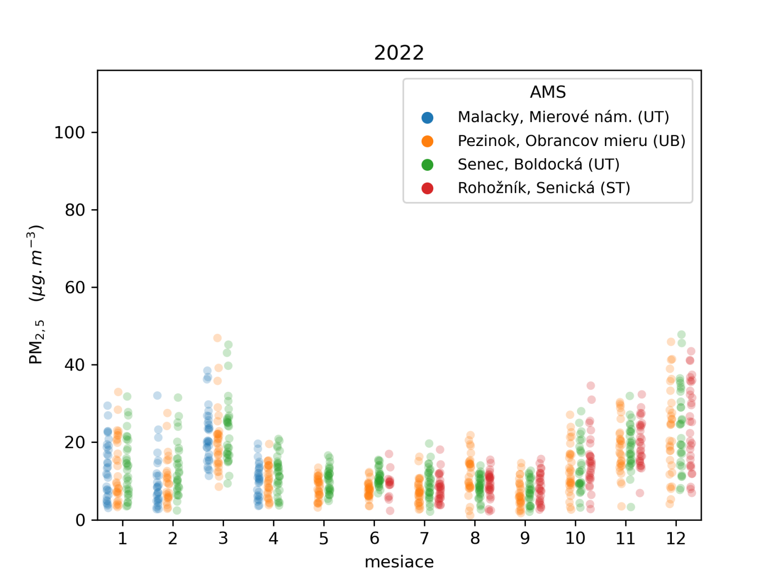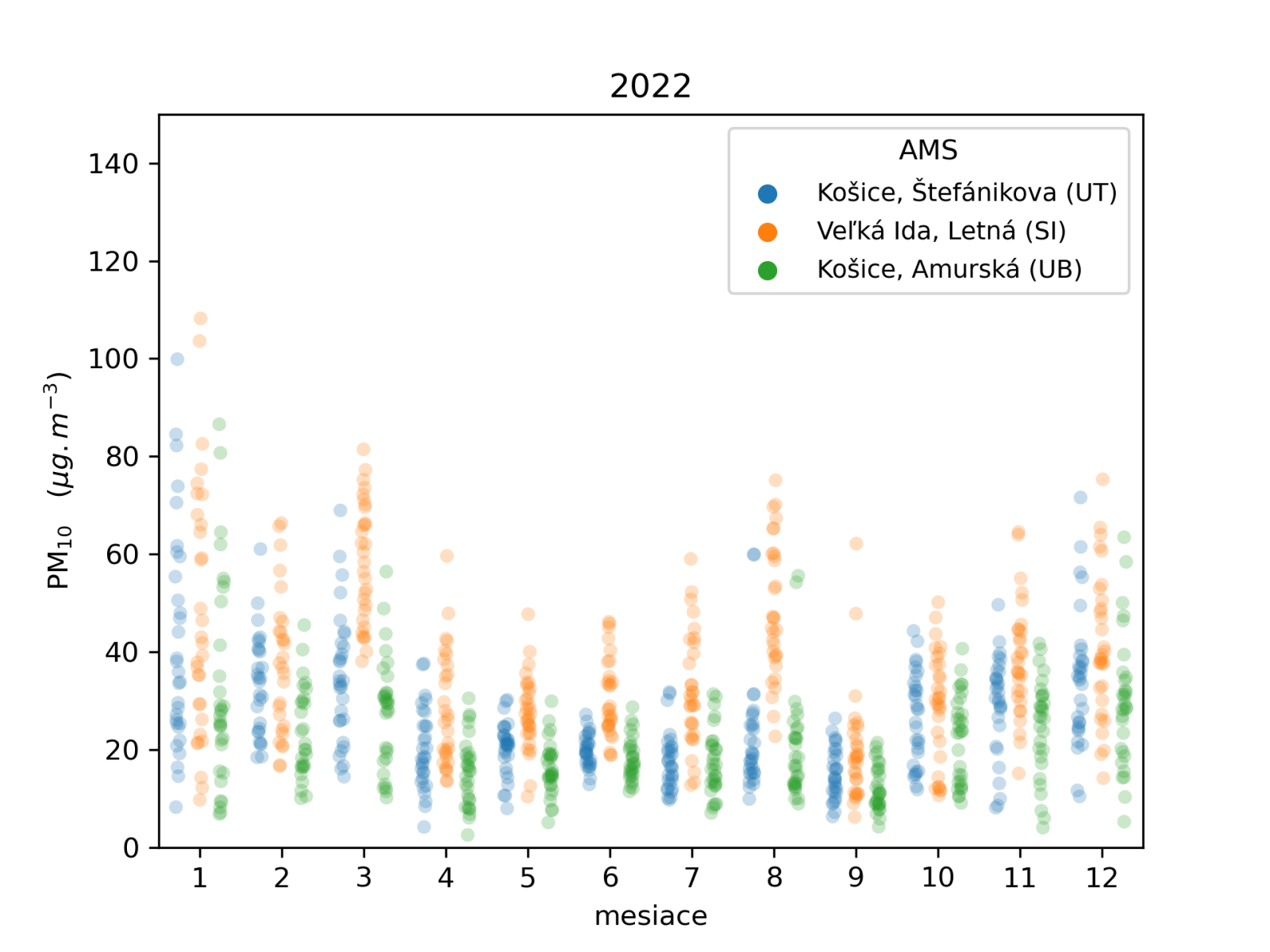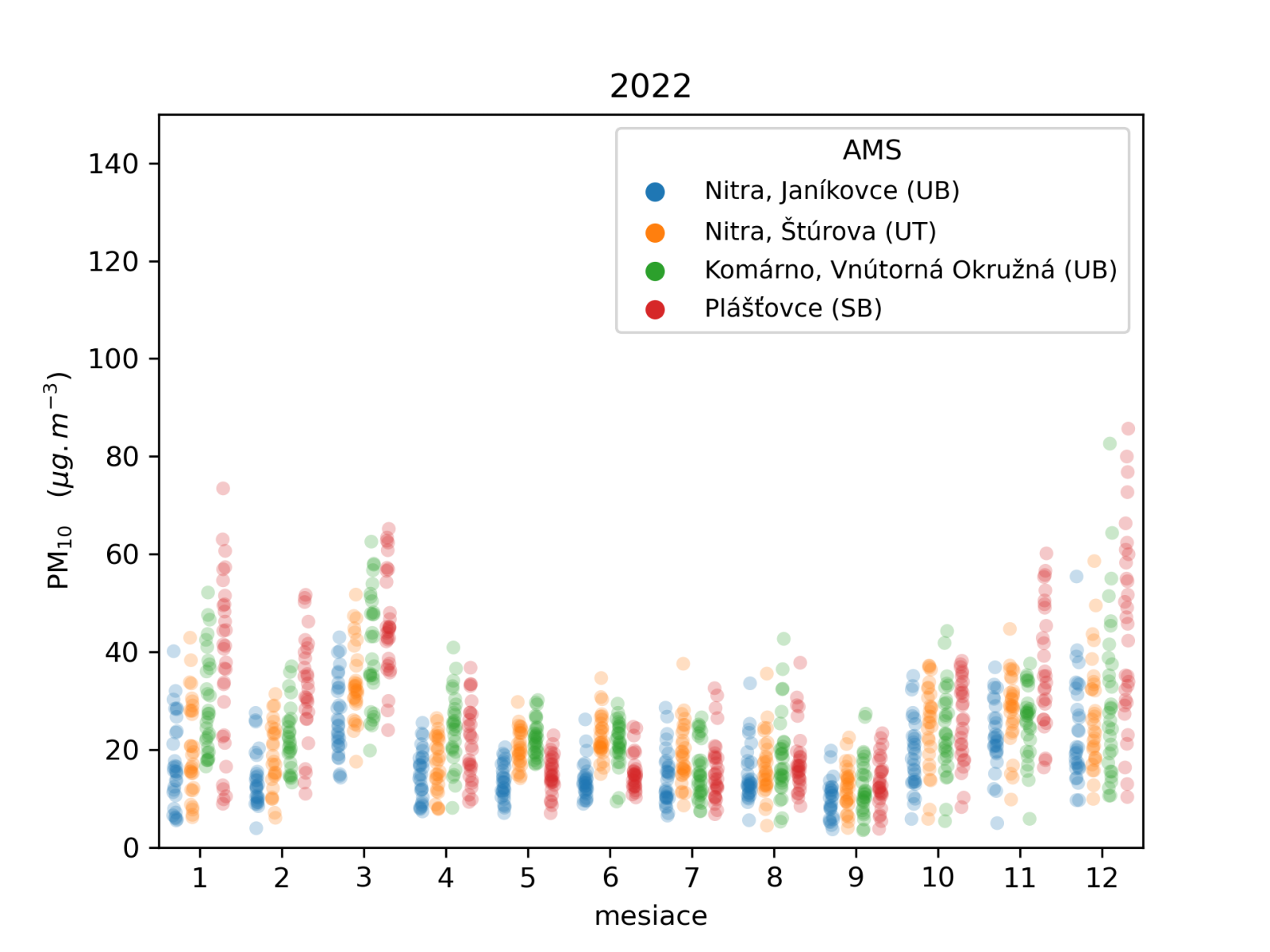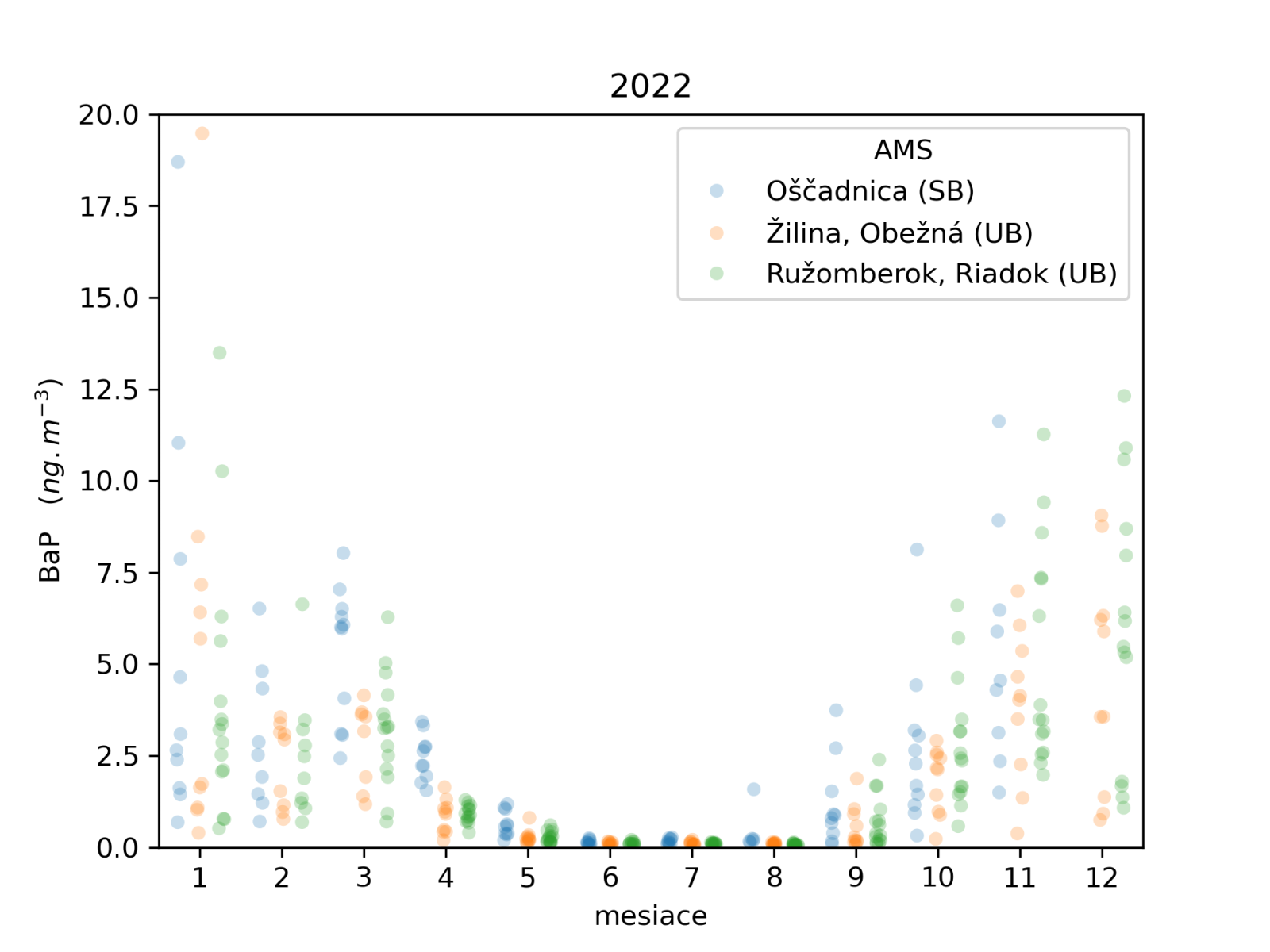 Poznámka: Pre účely hodnotenia kvality ovzdušia je územie Slovenska rozdelené na aglomerácia a zóny, rozdelenie je popísané na web stránke SHMÚ.V grafoch je v legende pri monitorovacej stanici v zátvorke uvedený typ oblasti a stanice.