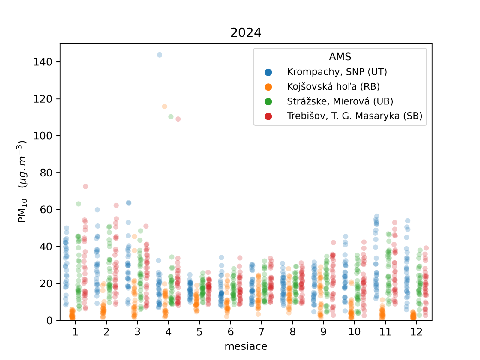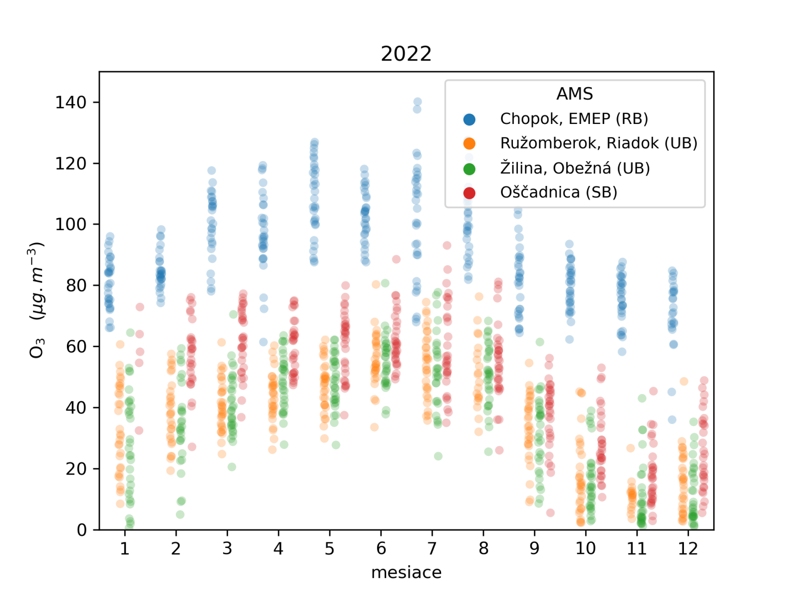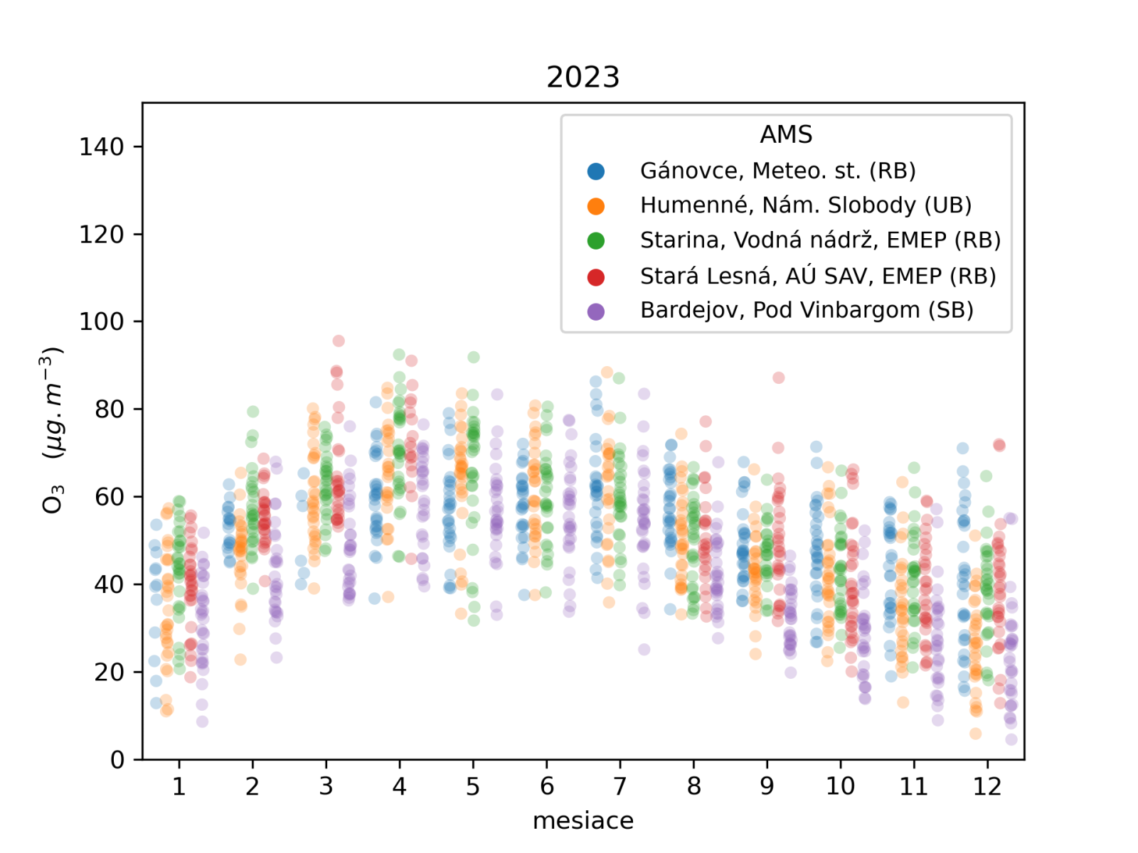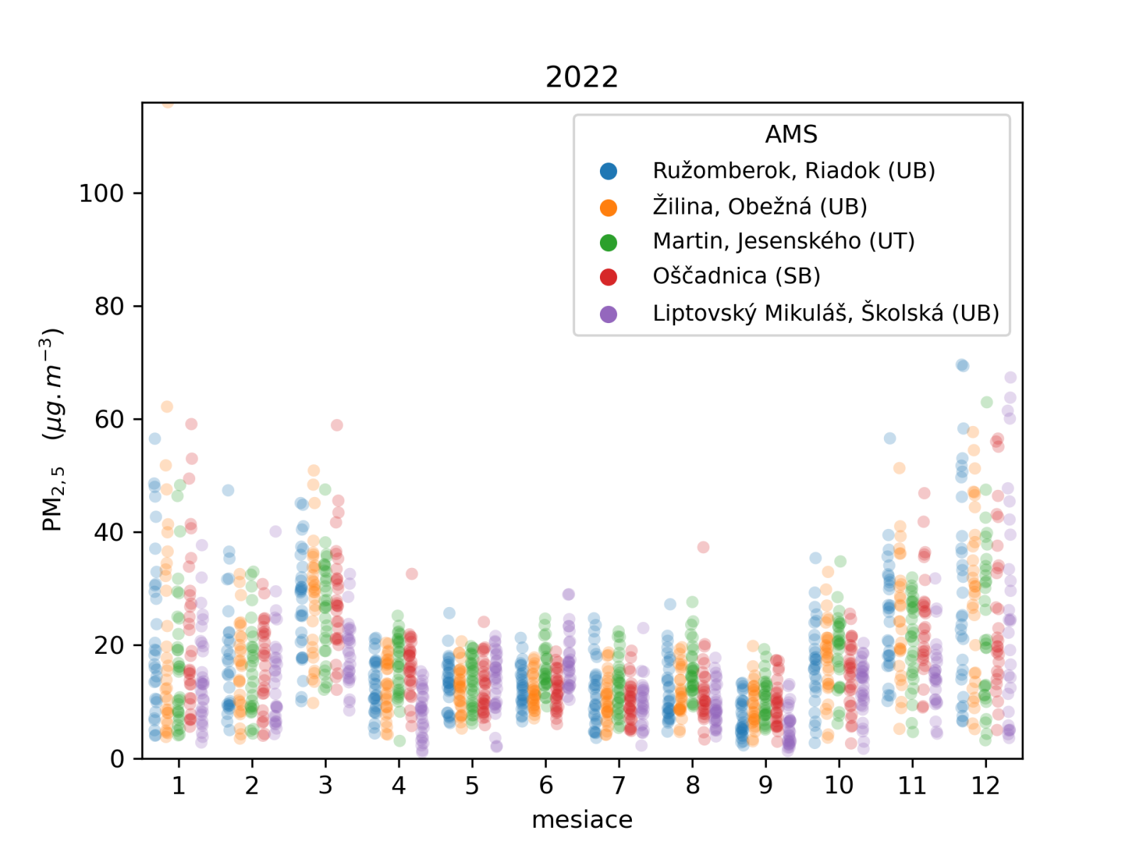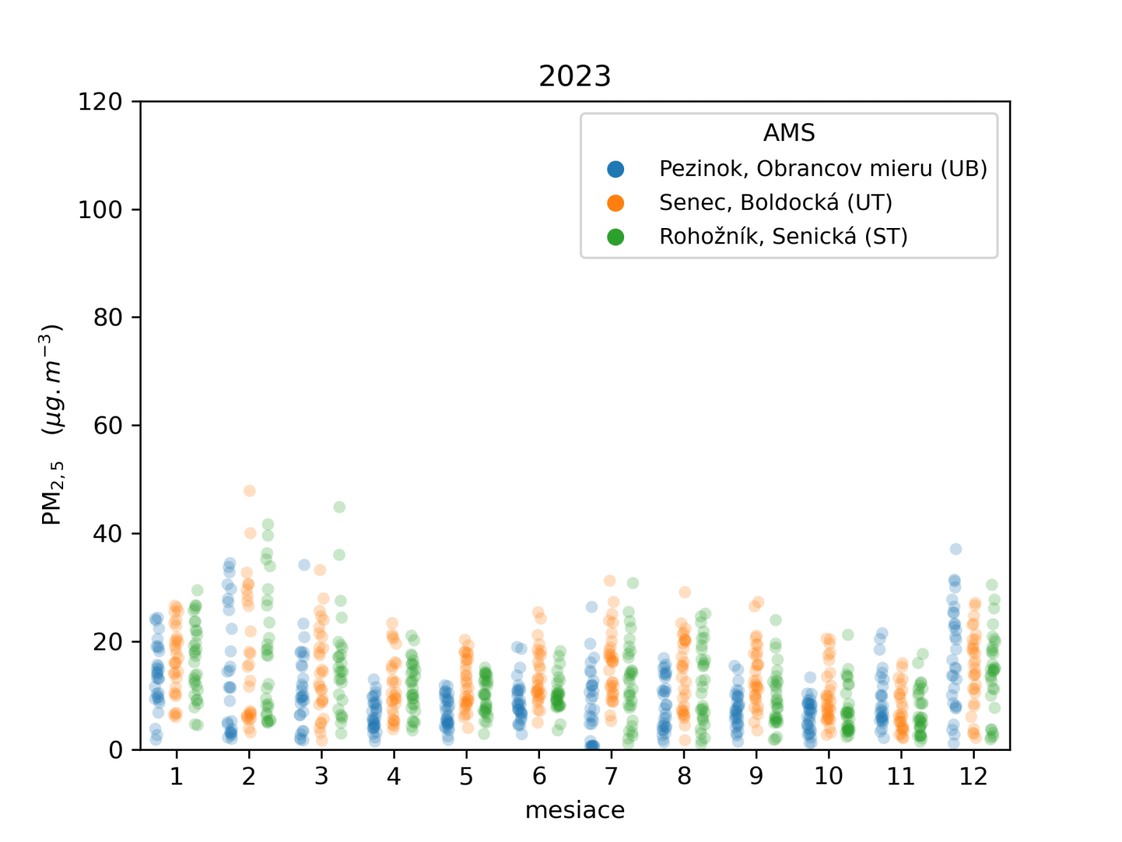 Poznámka: Pre účely hodnotenia kvality ovzdušia je územie Slovenska rozdelené na aglomerácia a zóny, rozdelenie je popísané na web stránke SHMÚ.V grafoch je v legende pri monitorovacej stanici v zátvorke uvedený typ oblasti a stanice.
