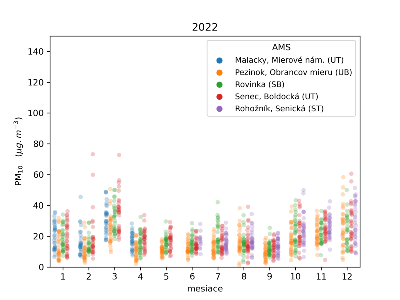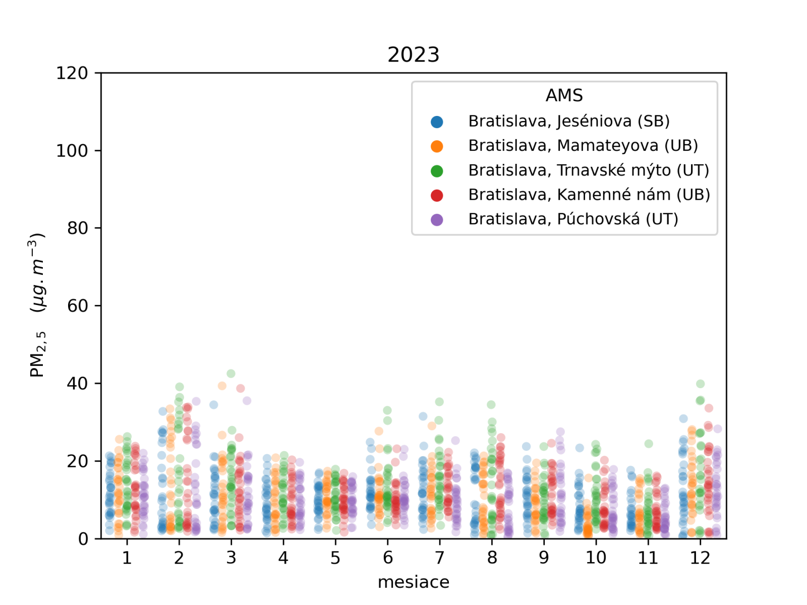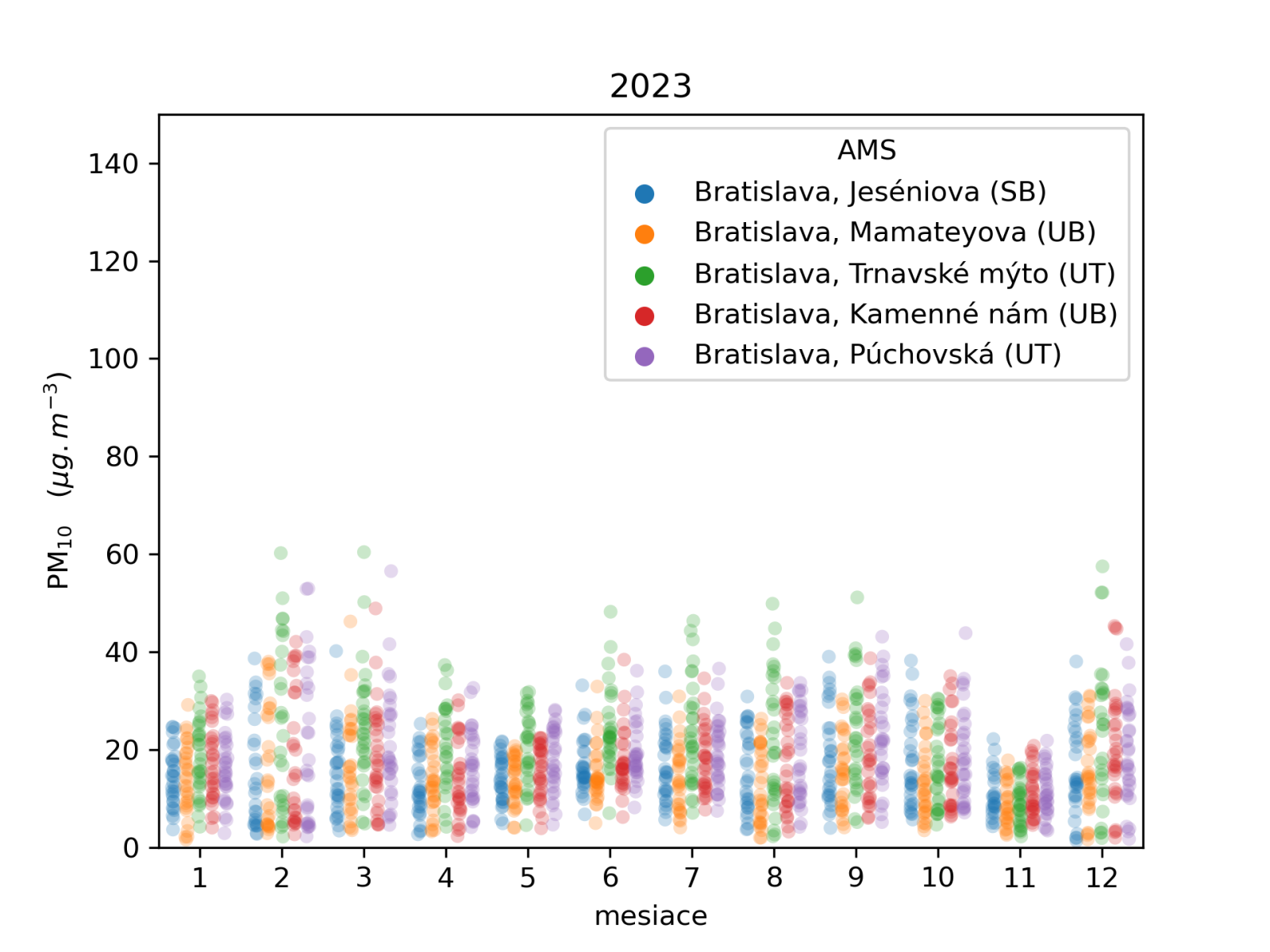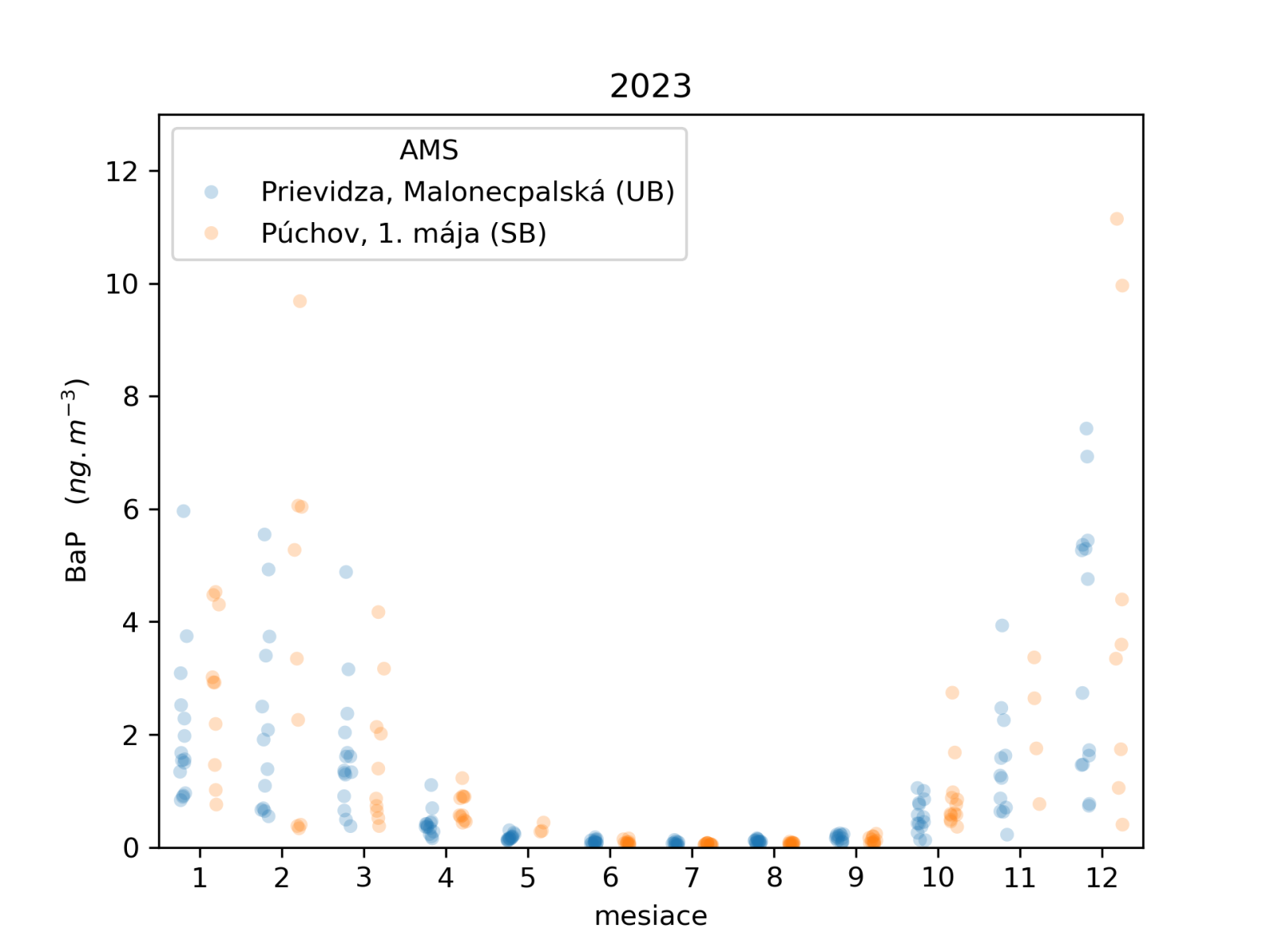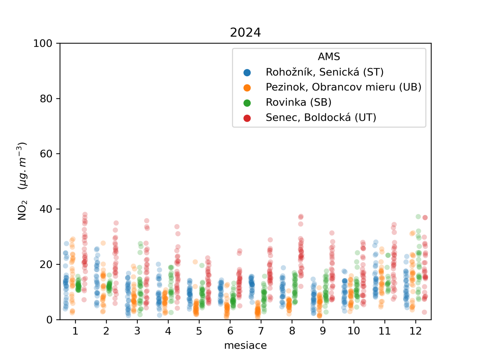 Poznámka: Pre účely hodnotenia kvality ovzdušia je územie Slovenska rozdelené na aglomerácia a zóny, rozdelenie je popísané na web stránke SHMÚ.V grafoch je v legende pri monitorovacej stanici v zátvorke uvedený typ oblasti a stanice.