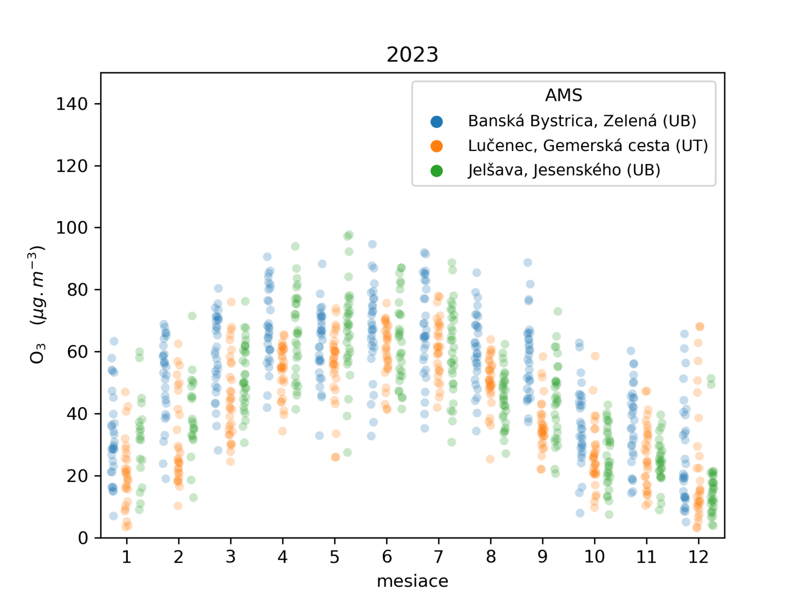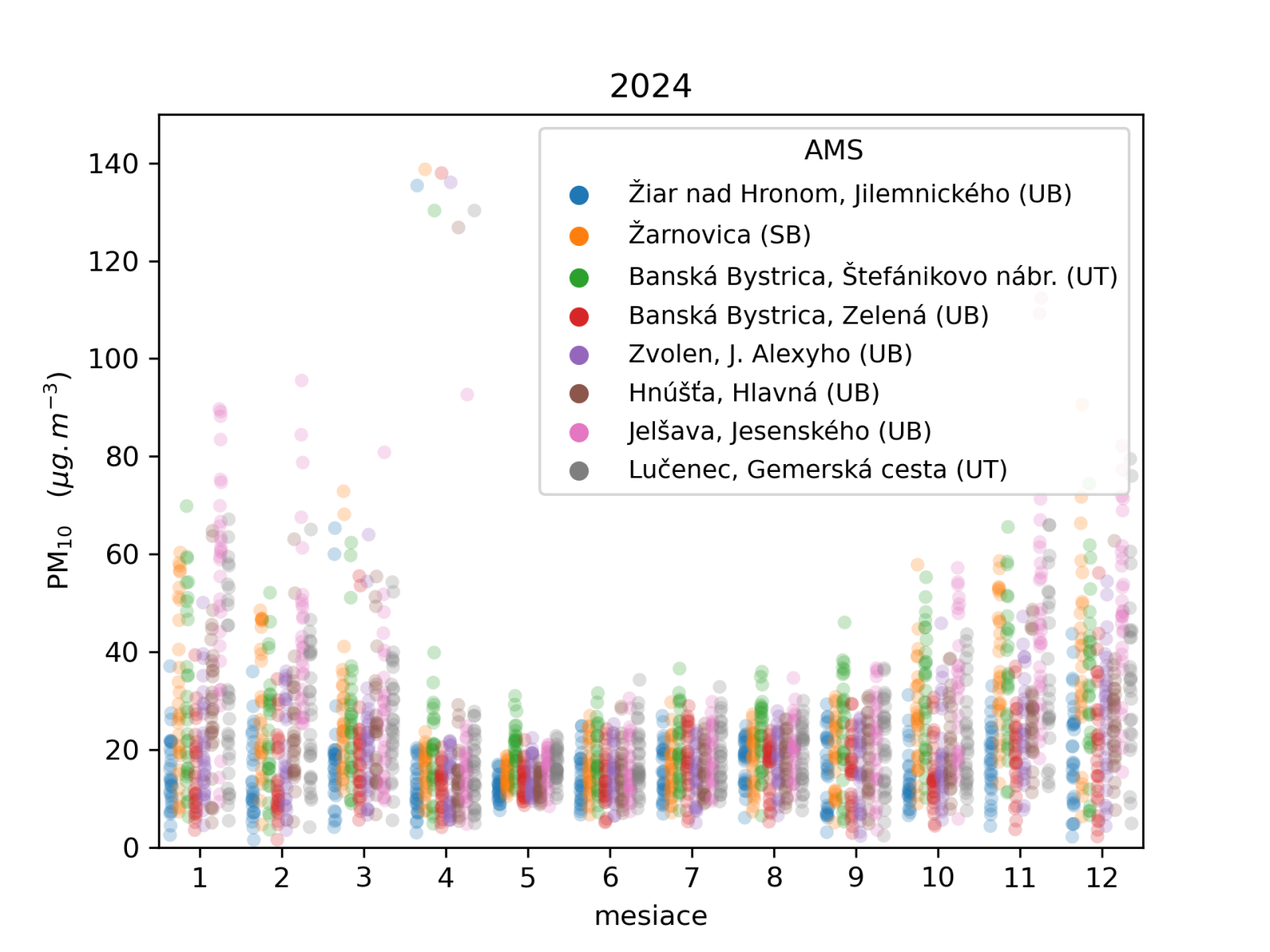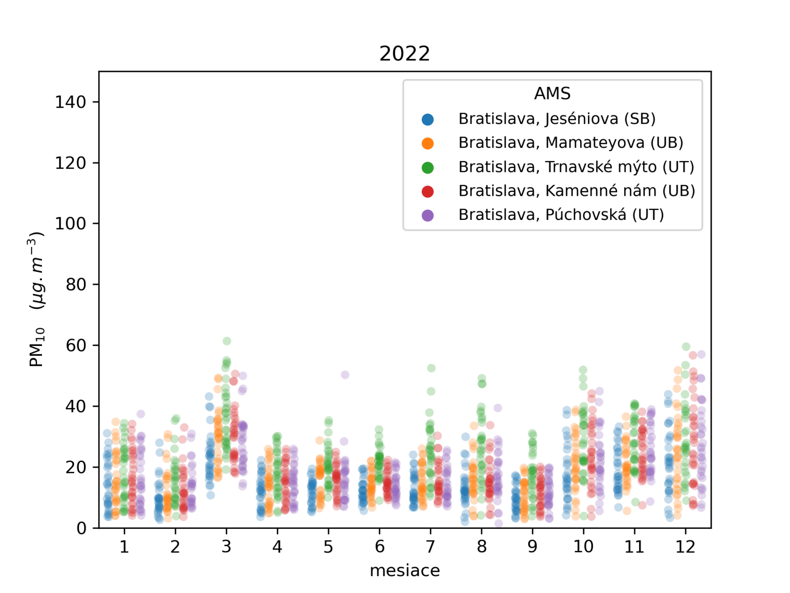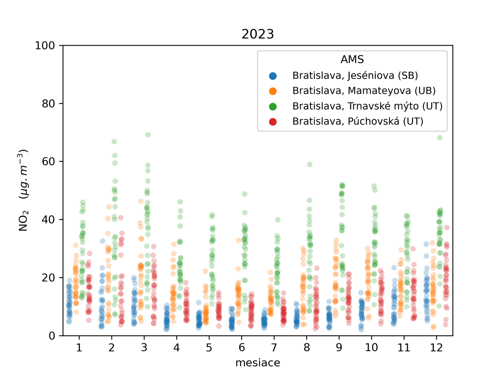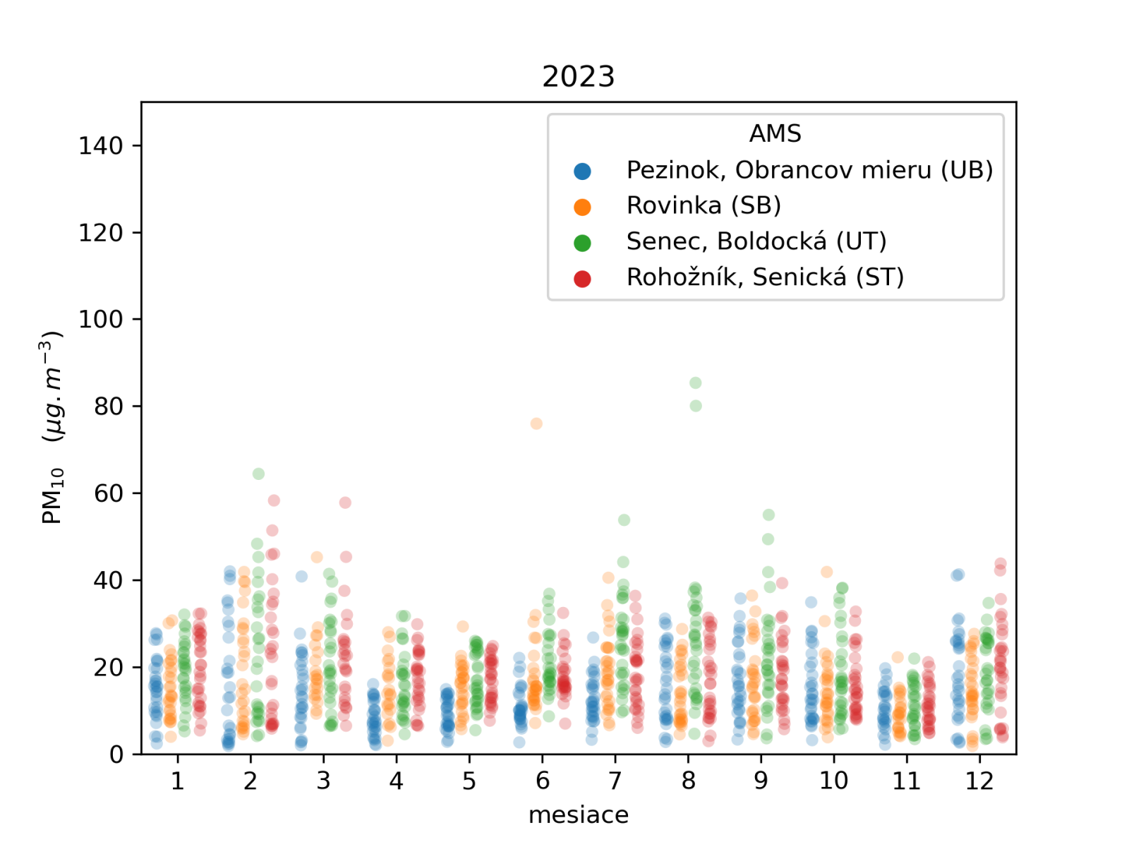 Poznámka: Pre účely hodnotenia kvality ovzdušia je územie Slovenska rozdelené na aglomerácia a zóny, rozdelenie je popísané na web stránke SHMÚ.V grafoch je v legende pri monitorovacej stanici v zátvorke uvedený typ oblasti a stanice.