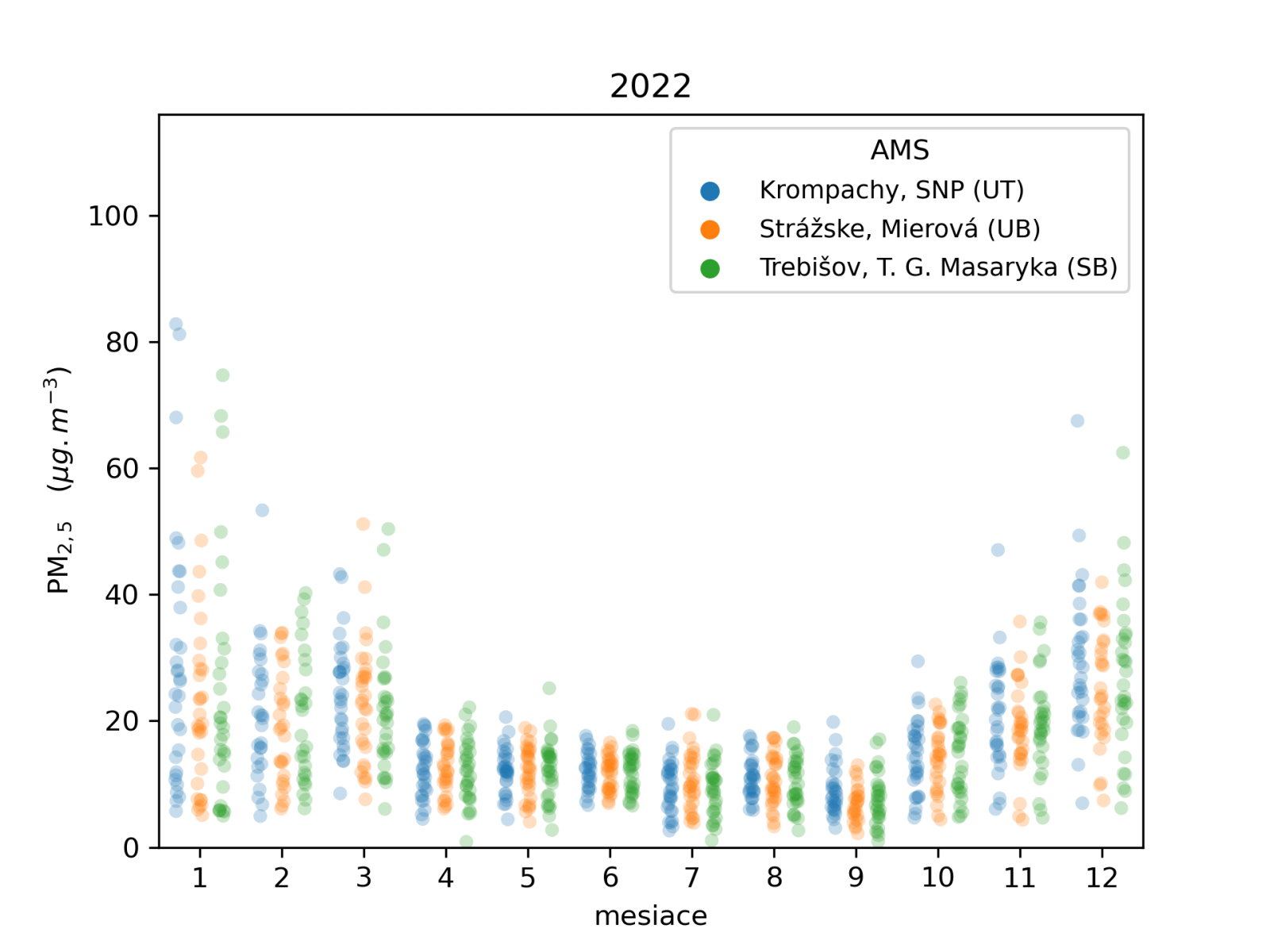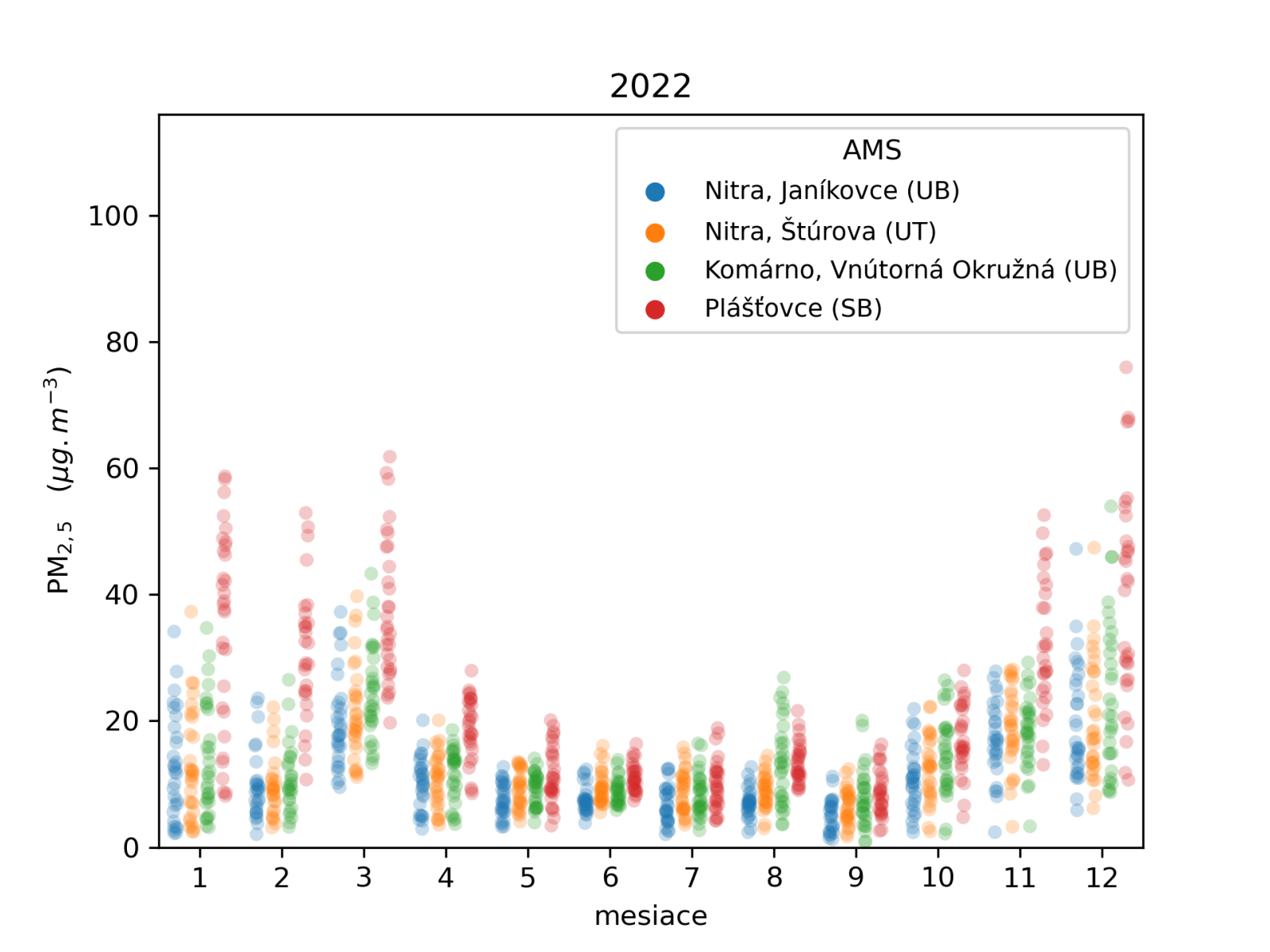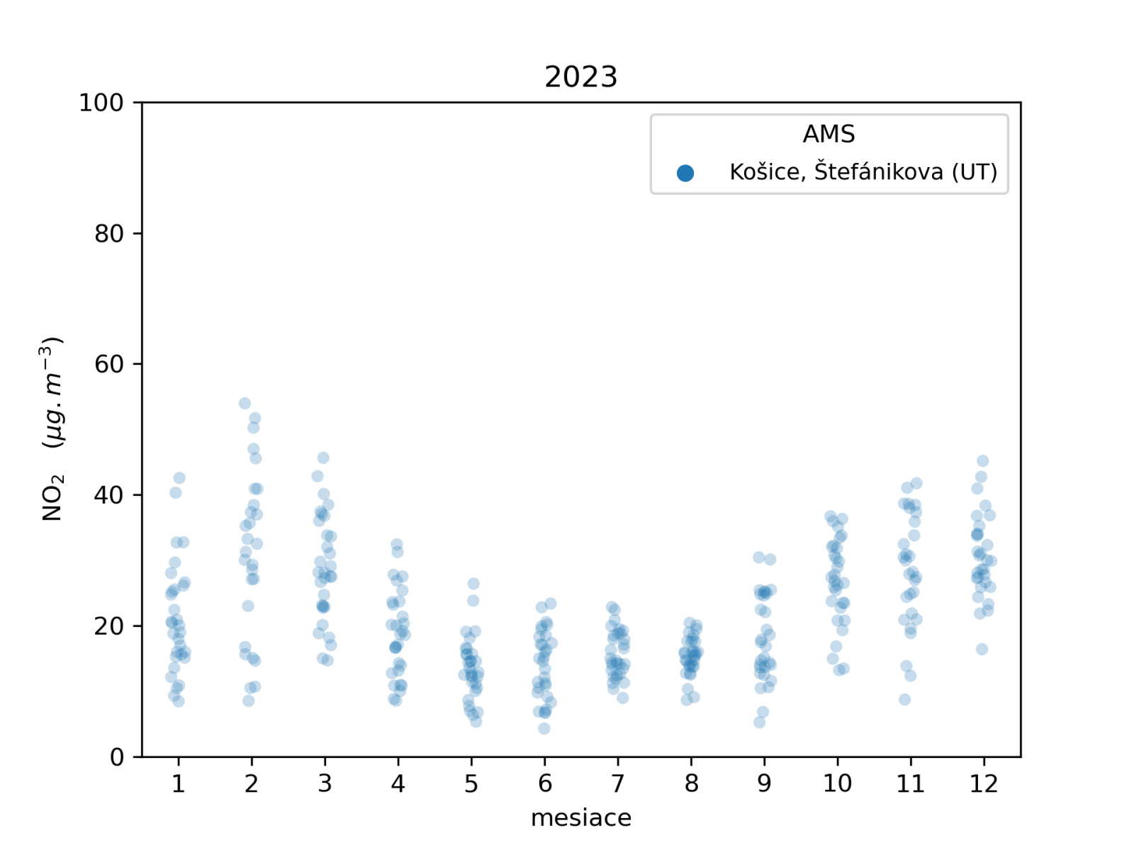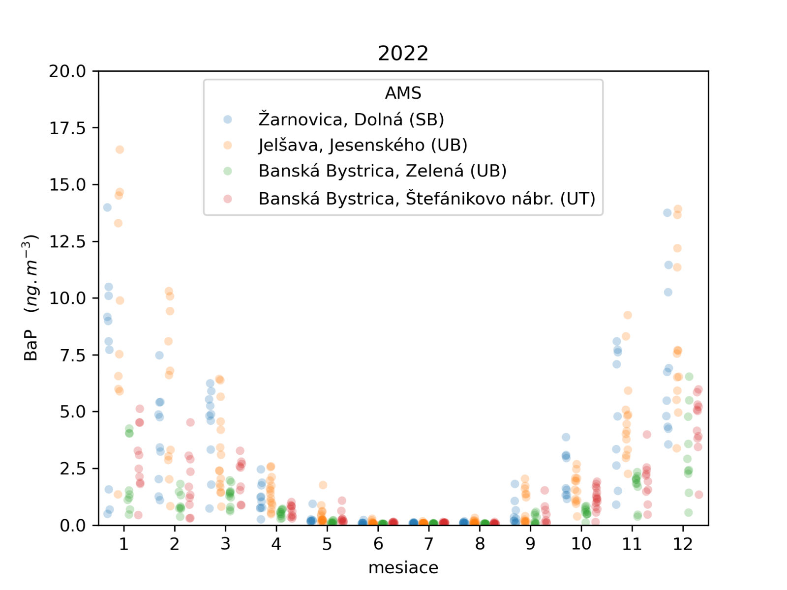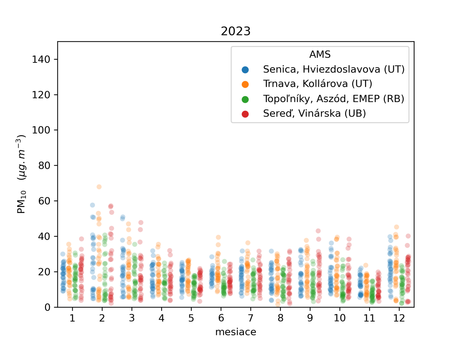 Poznámka: Pre účely hodnotenia kvality ovzdušia je územie Slovenska rozdelené na aglomerácia a zóny, rozdelenie je popísané na web stránke SHMÚ.V grafoch je v legende pri monitorovacej stanici v zátvorke uvedený typ oblasti a stanice.