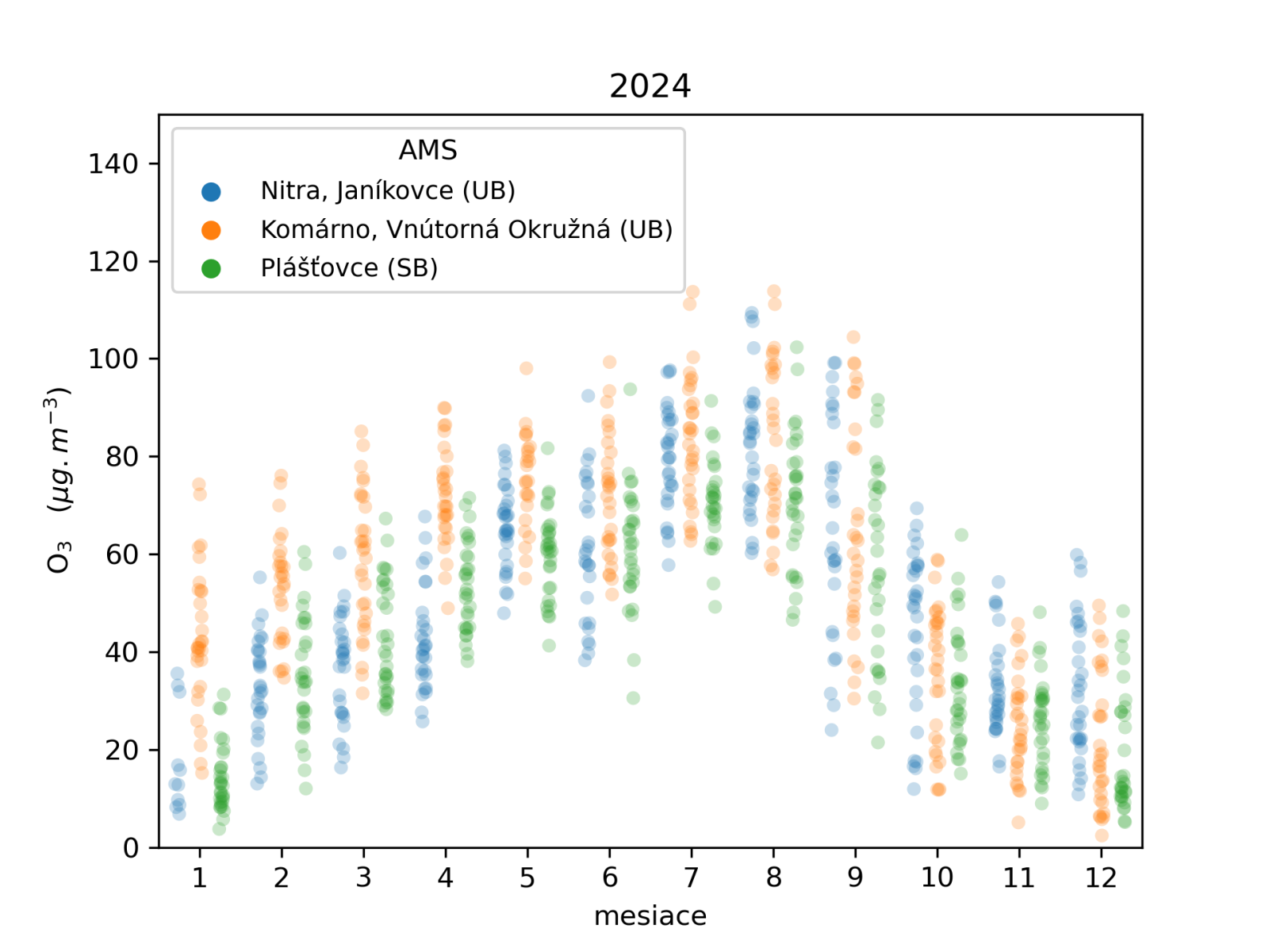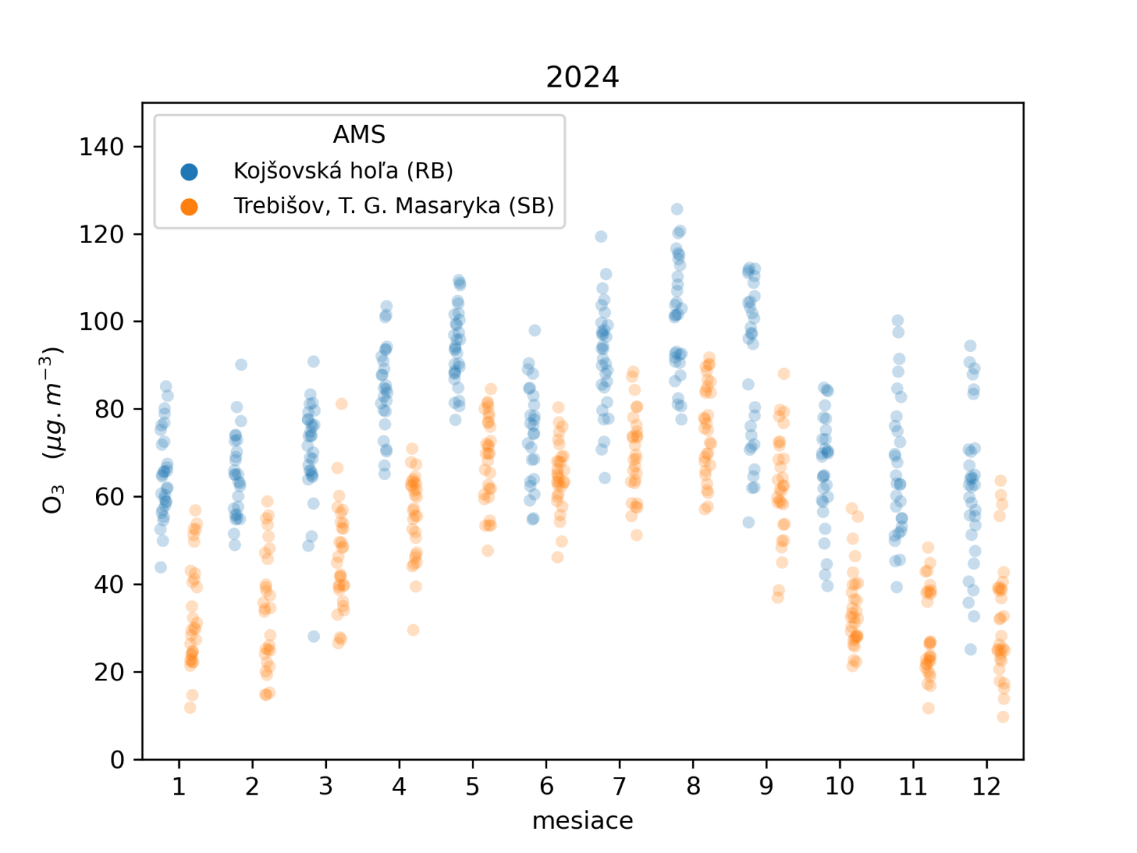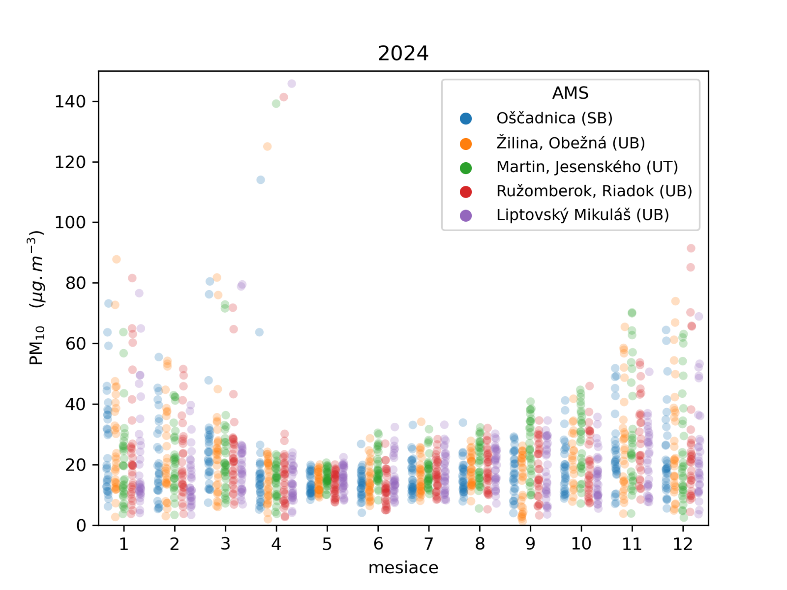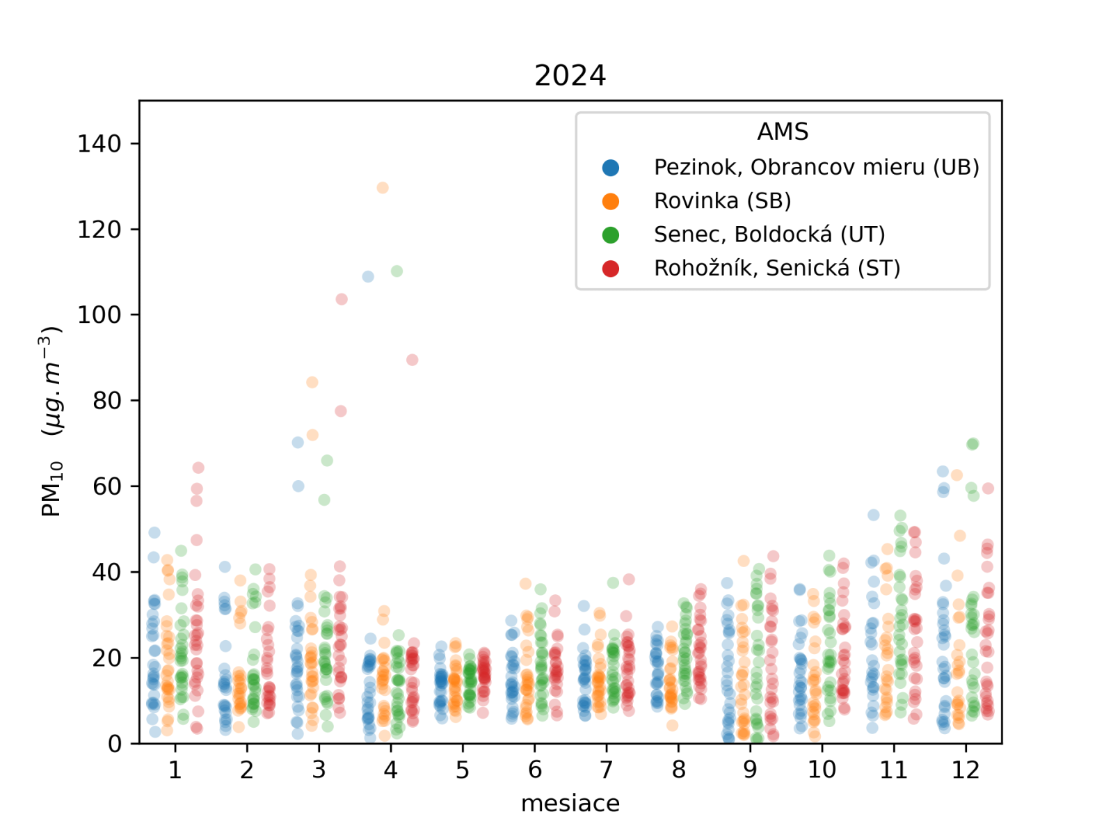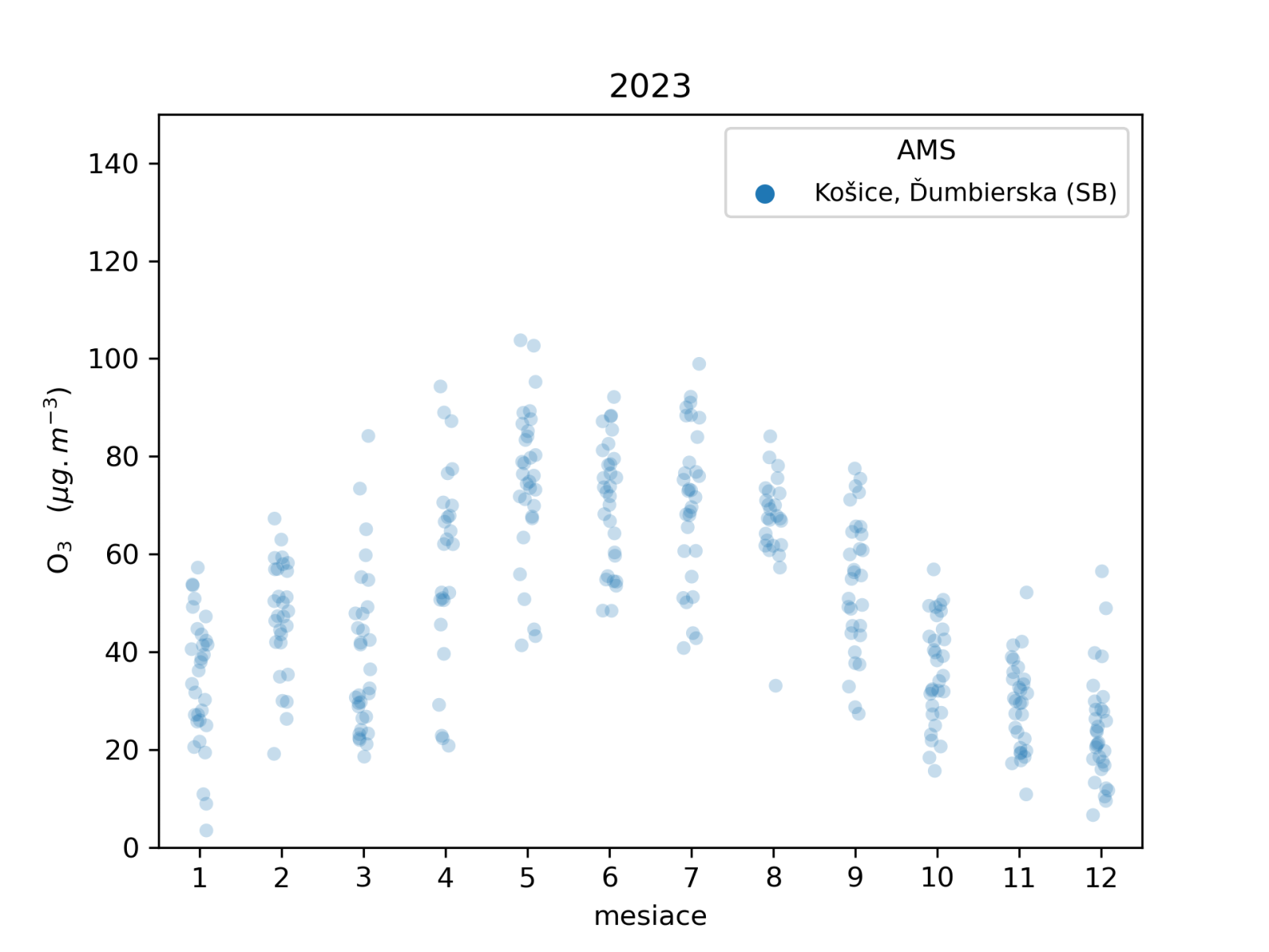 Poznámka: Pre účely hodnotenia kvality ovzdušia je územie Slovenska rozdelené na aglomerácia a zóny, rozdelenie je popísané na web stránke SHMÚ.V grafoch je v legende pri monitorovacej stanici v zátvorke uvedený typ oblasti a stanice.