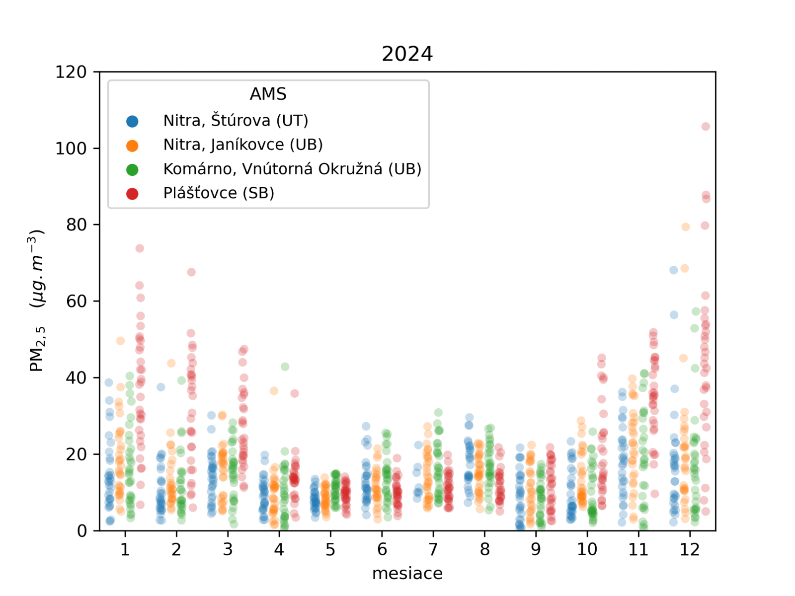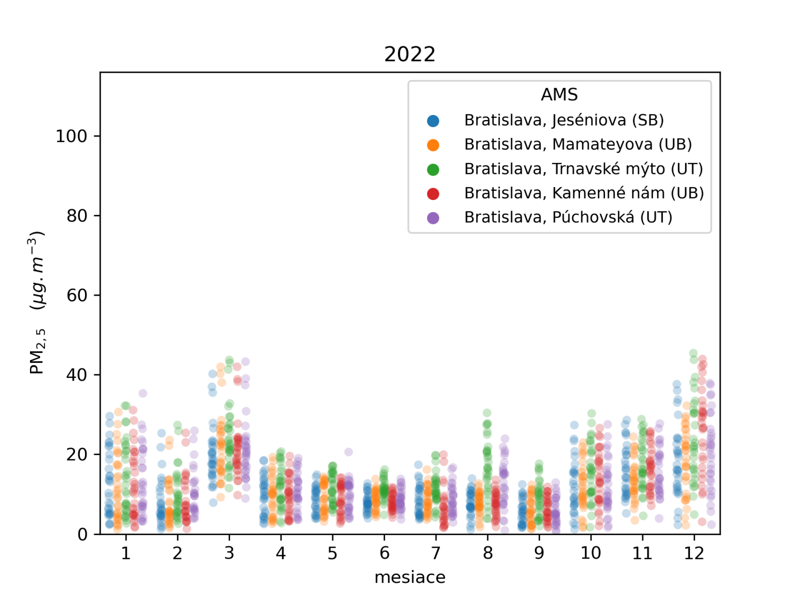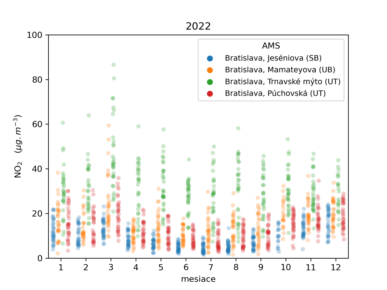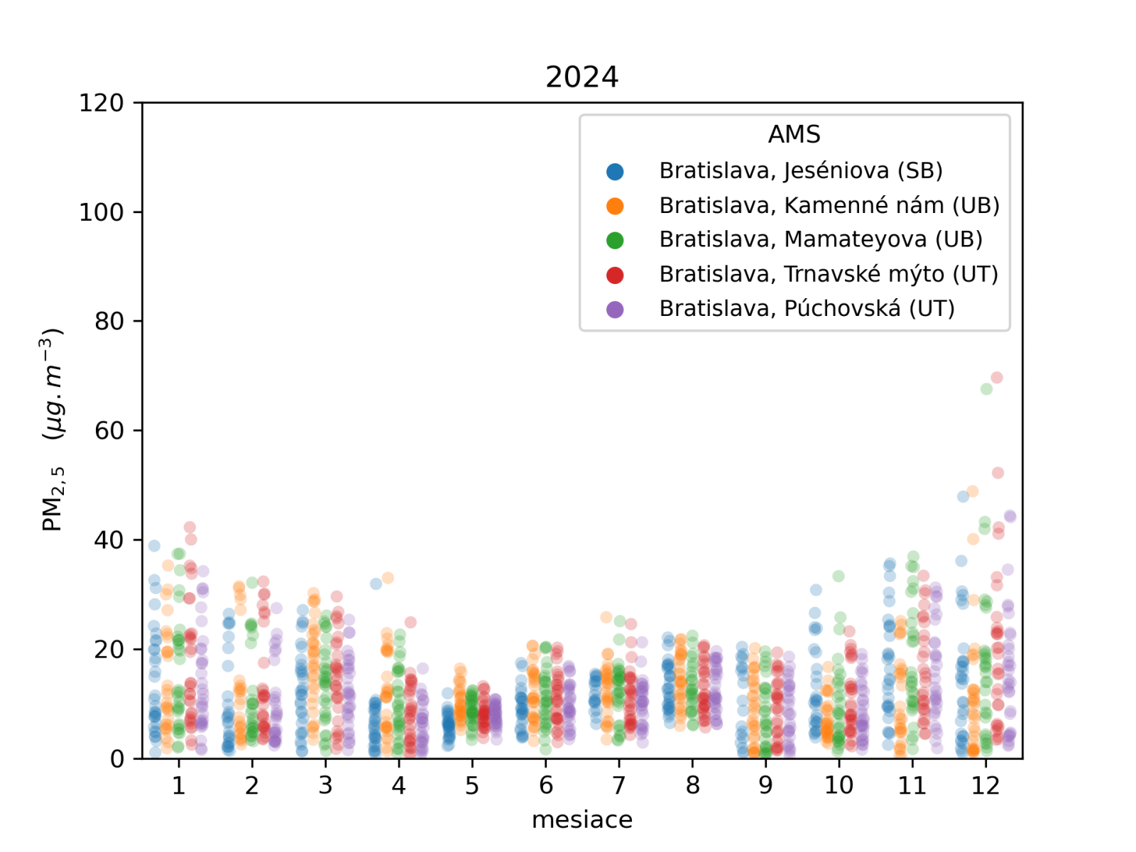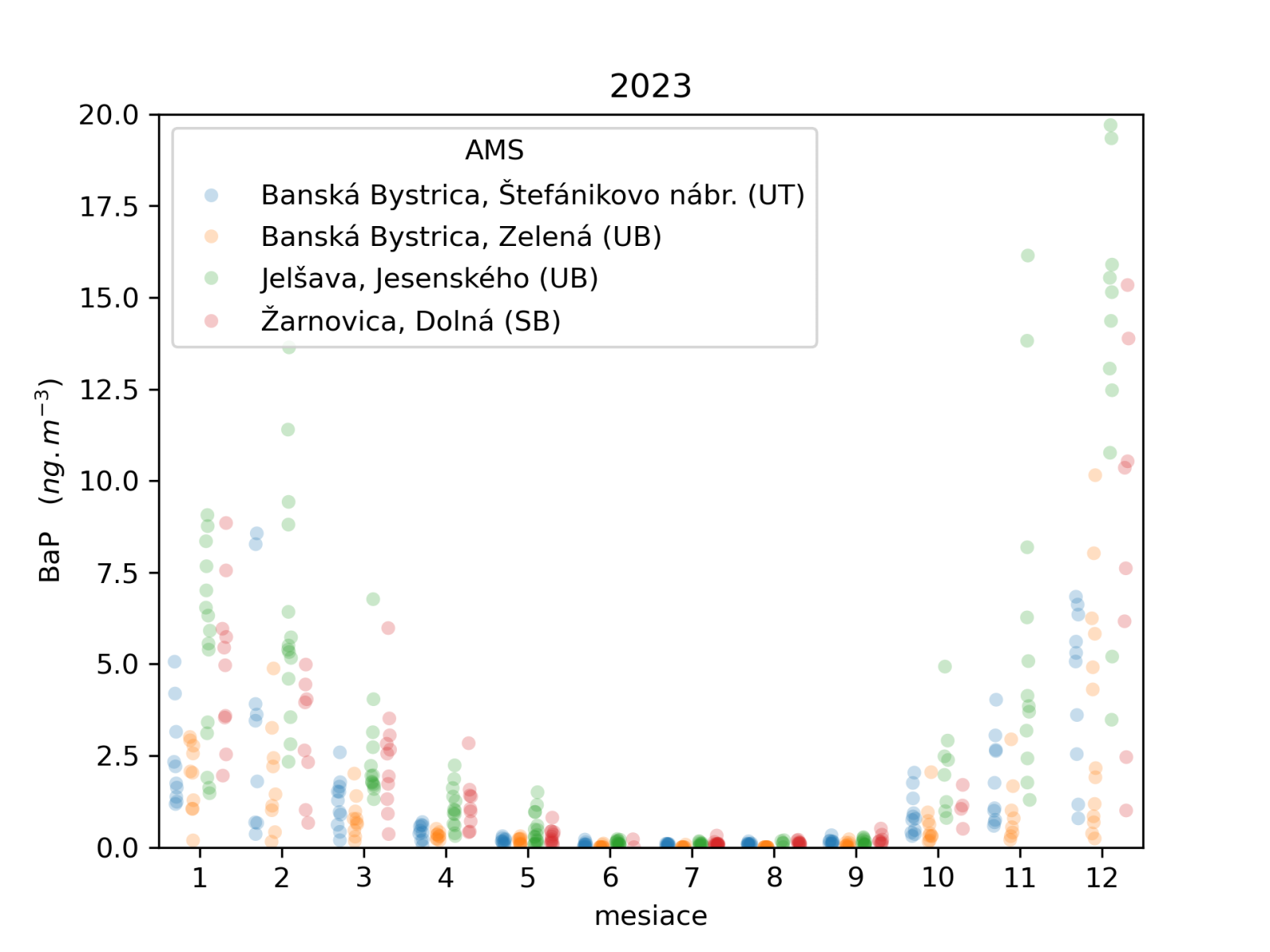 Poznámka: Pre účely hodnotenia kvality ovzdušia je územie Slovenska rozdelené na aglomerácia a zóny, rozdelenie je popísané na web stránke SHMÚ.V grafoch je v legende pri monitorovacej stanici v zátvorke uvedený typ oblasti a stanice.