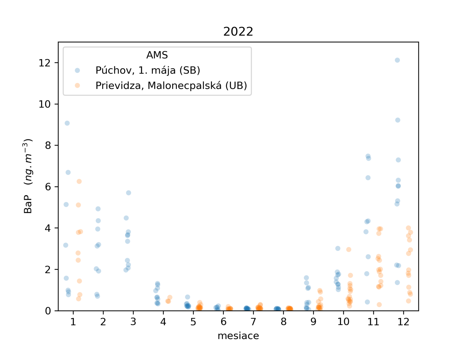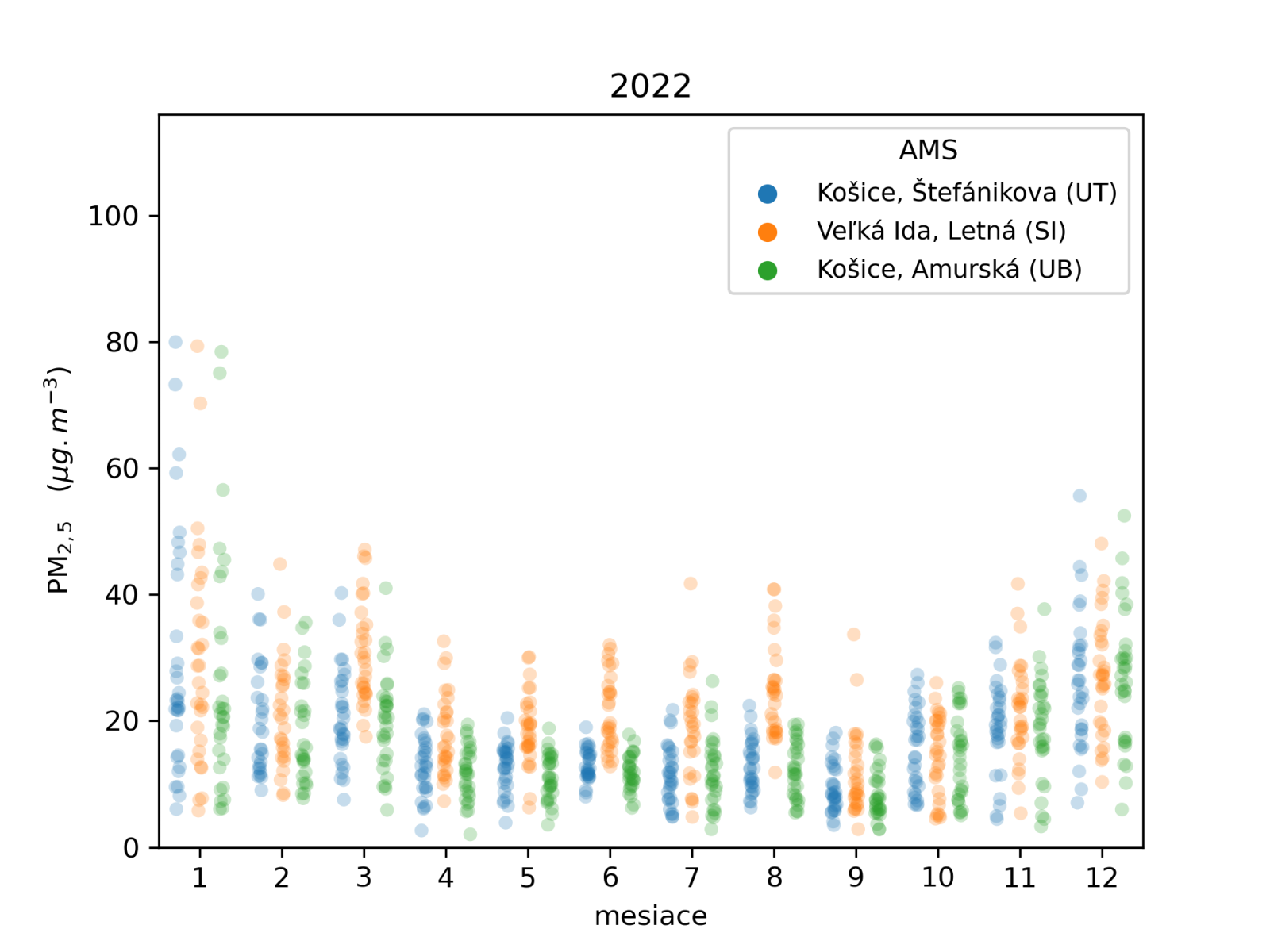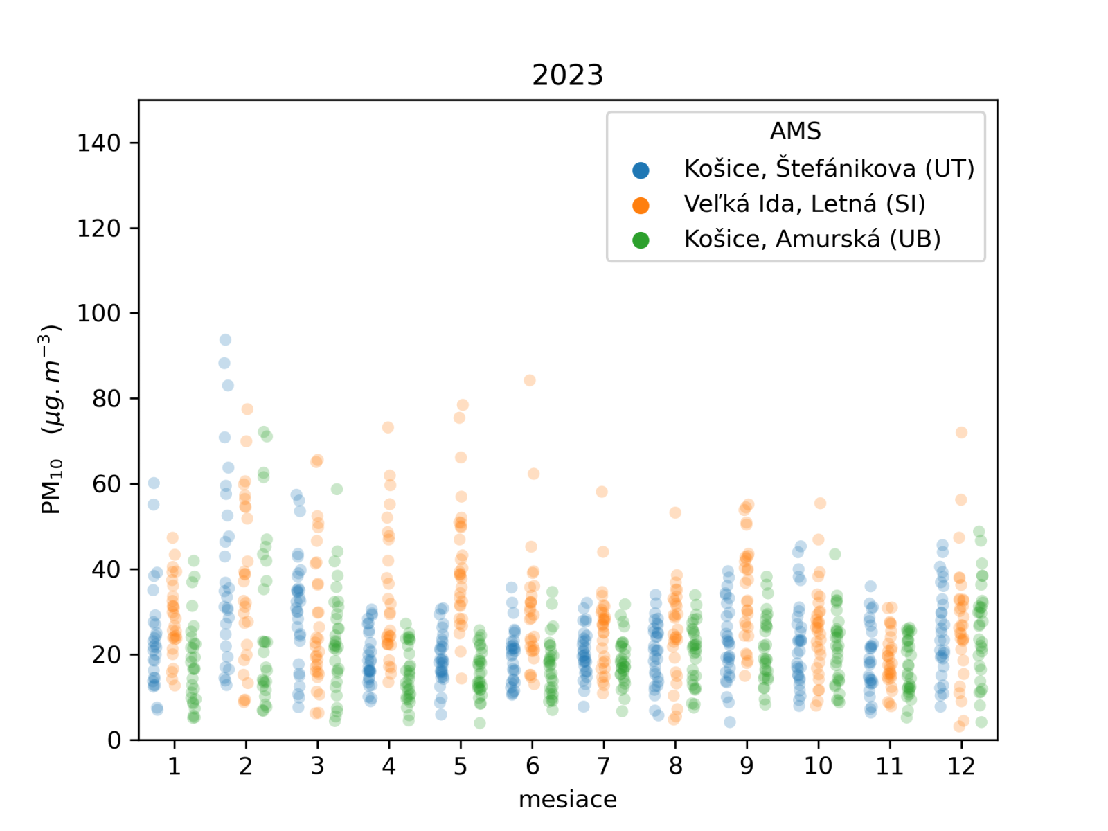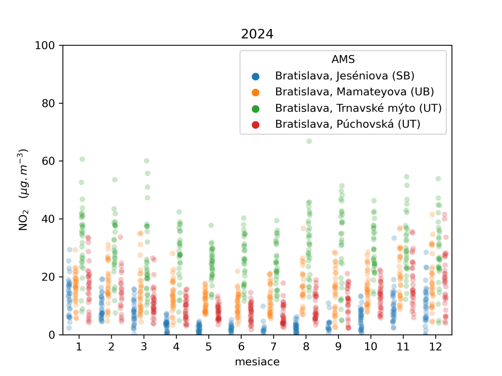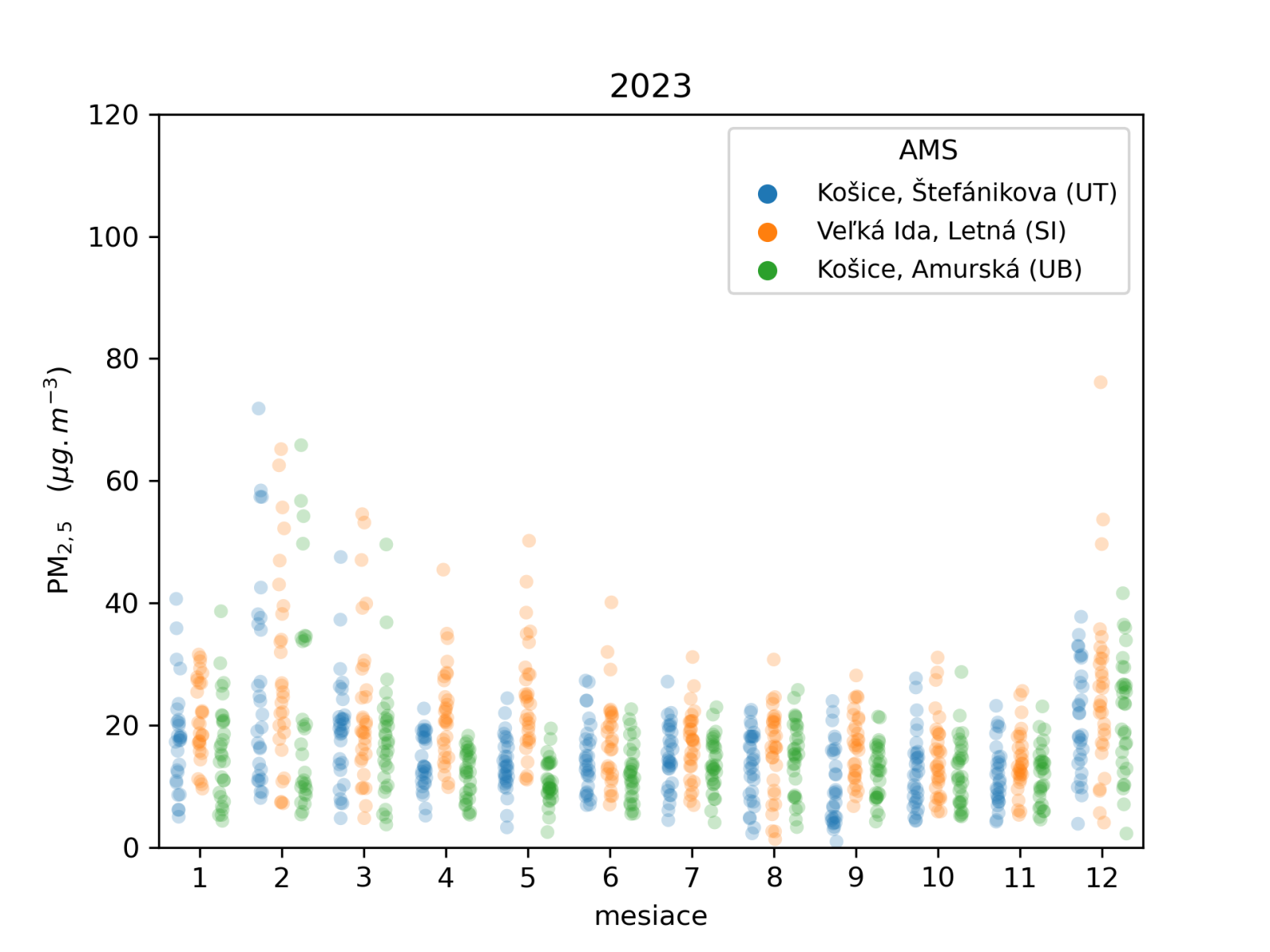 Poznámka: Pre účely hodnotenia kvality ovzdušia je územie Slovenska rozdelené na aglomerácia a zóny, rozdelenie je popísané na web stránke SHMÚ.V grafoch je v legende pri monitorovacej stanici v zátvorke uvedený typ oblasti a stanice.