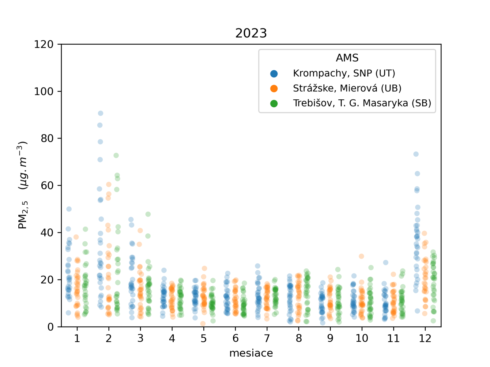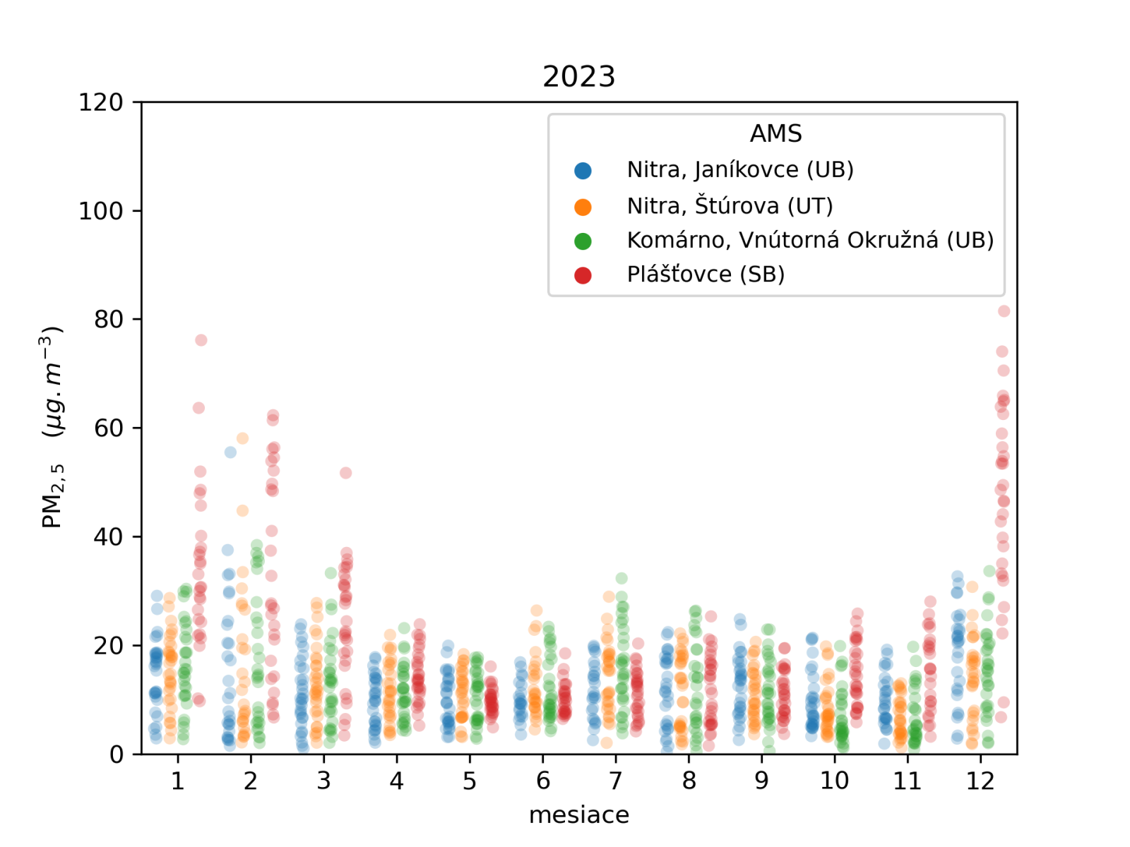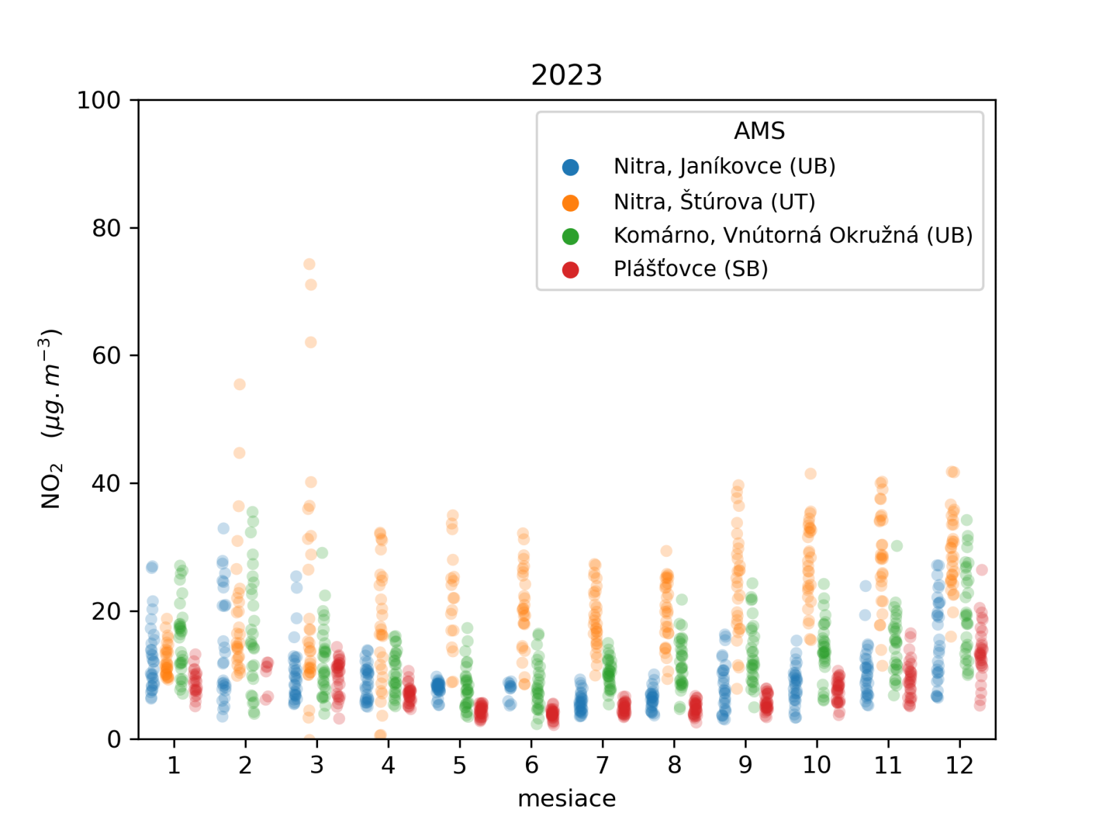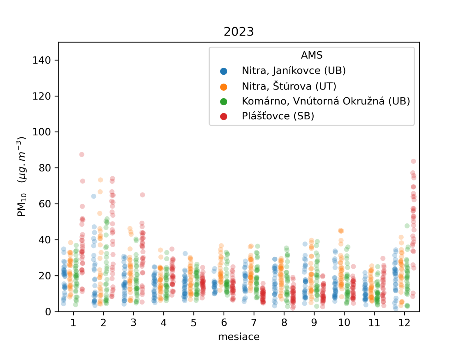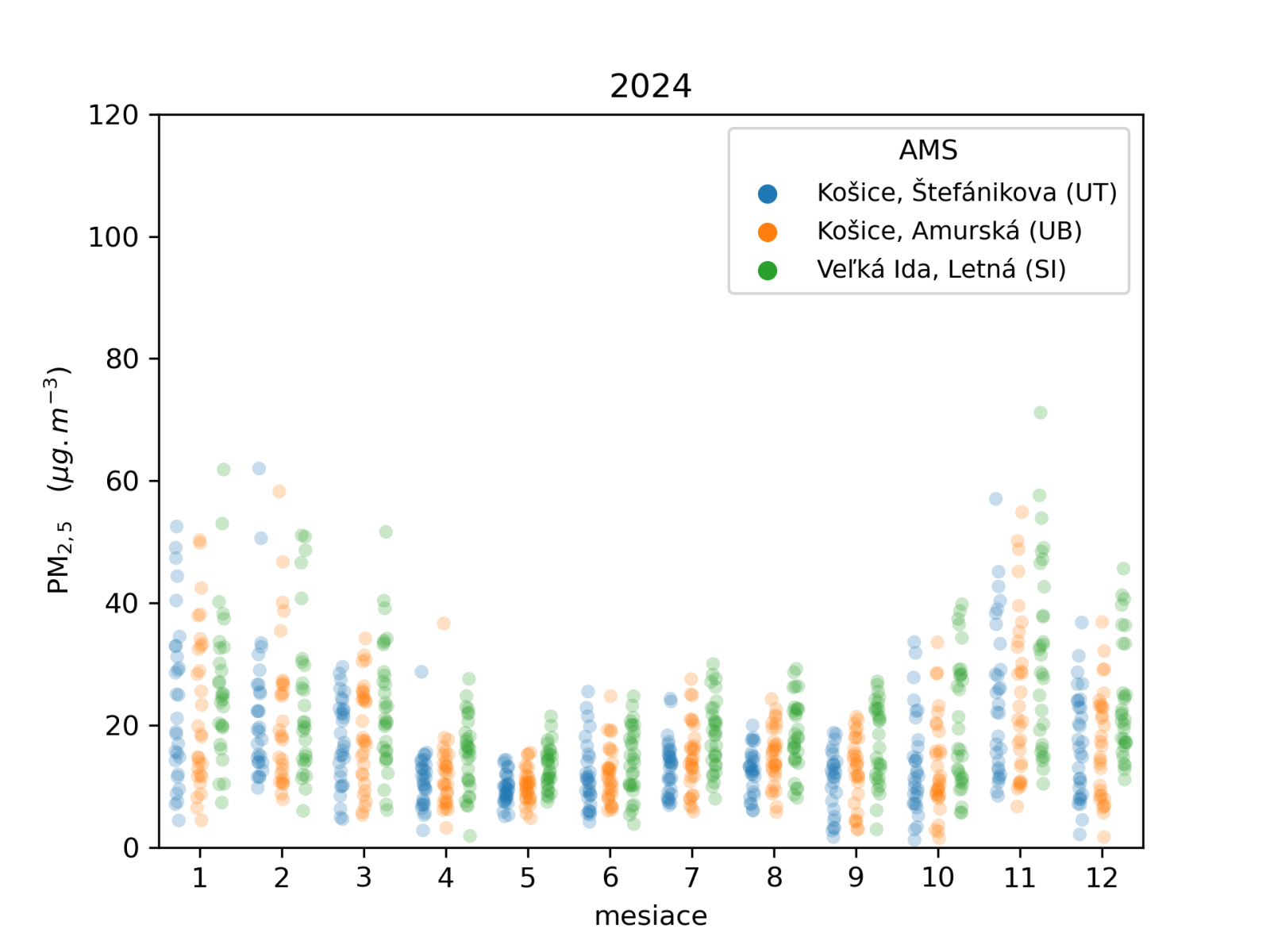 Poznámka: Pre účely hodnotenia kvality ovzdušia je územie Slovenska rozdelené na aglomerácia a zóny, rozdelenie je popísané na web stránke SHMÚ.V grafoch je v legende pri monitorovacej stanici v zátvorke uvedený typ oblasti a stanice.