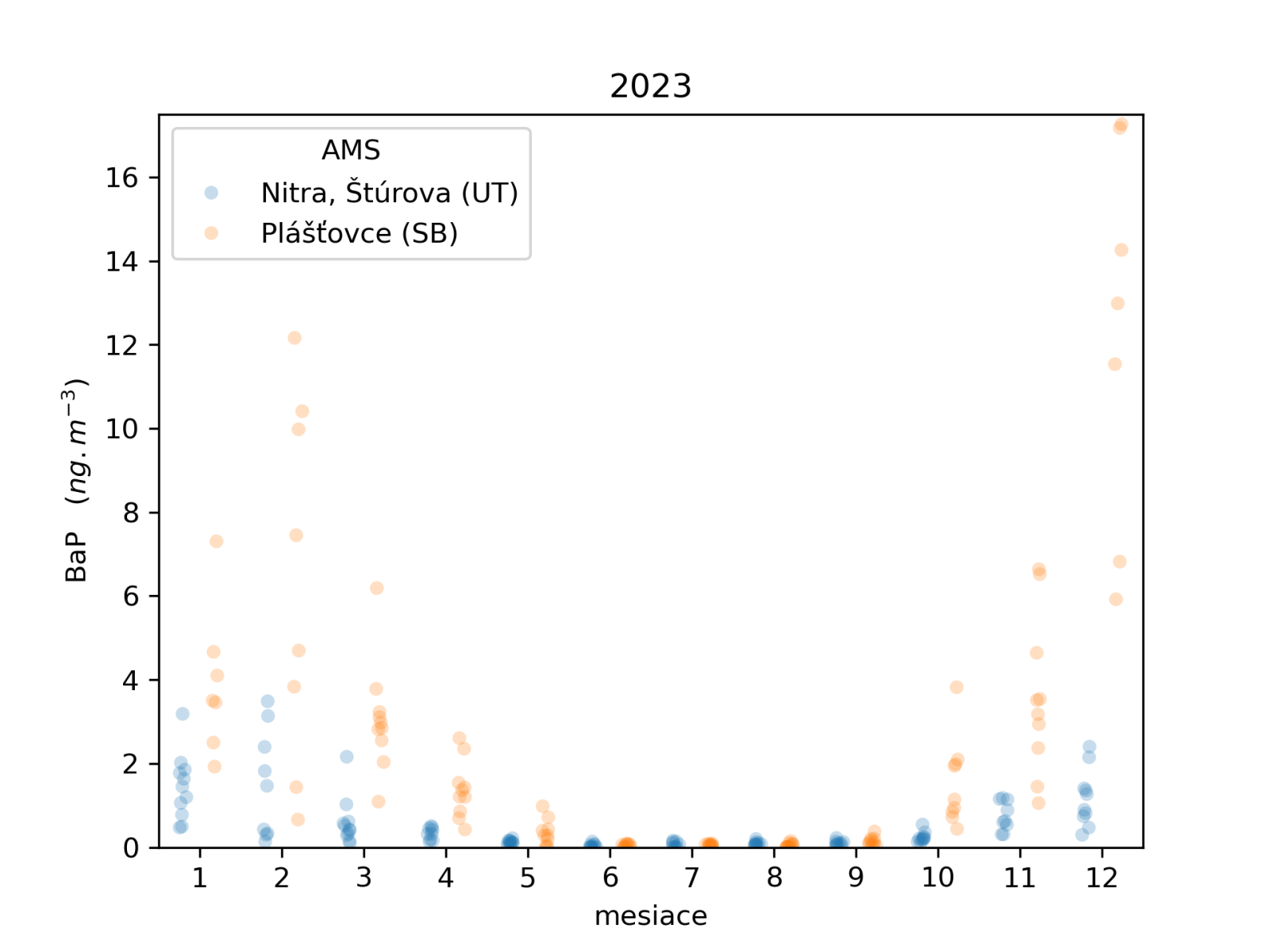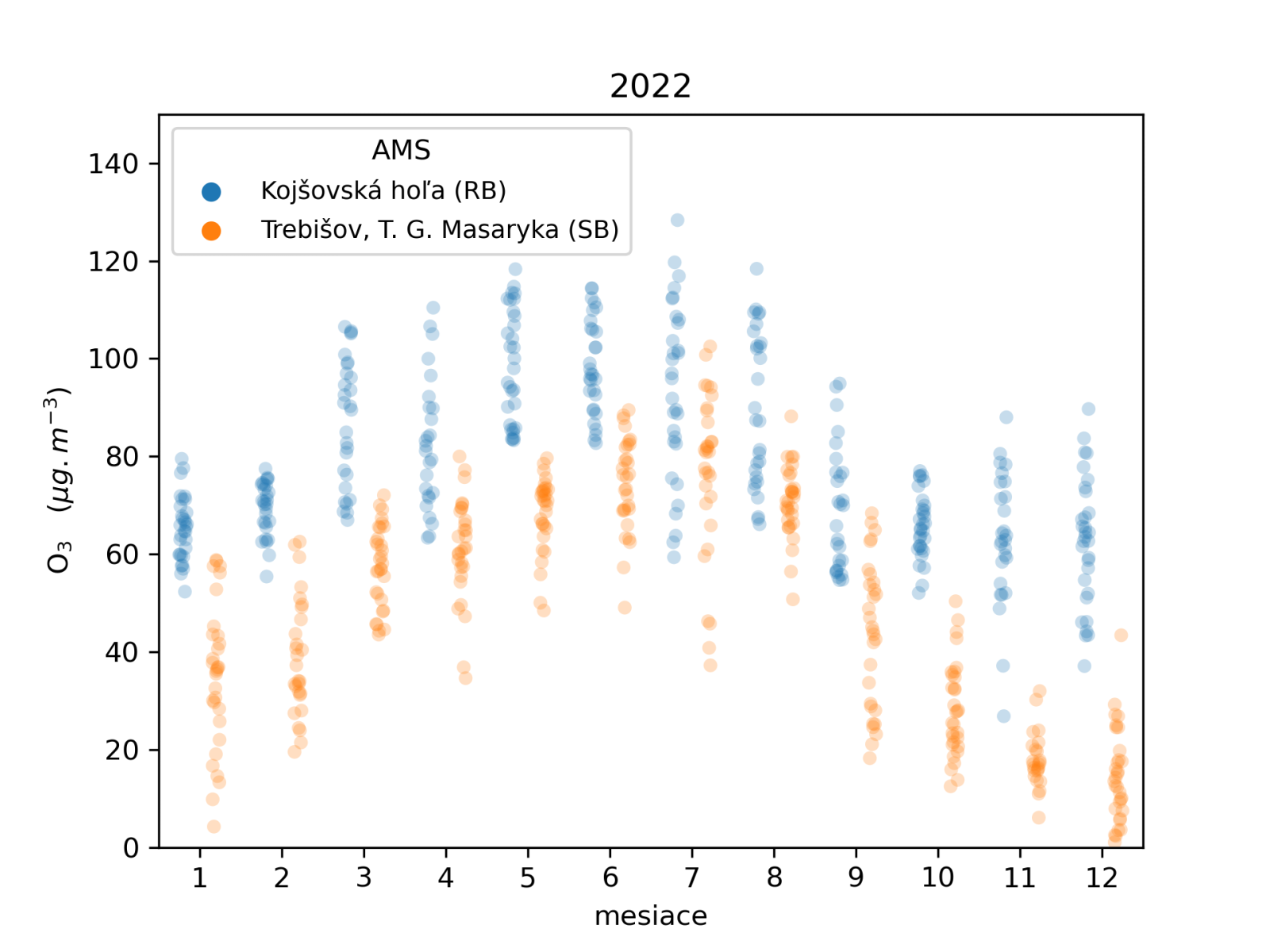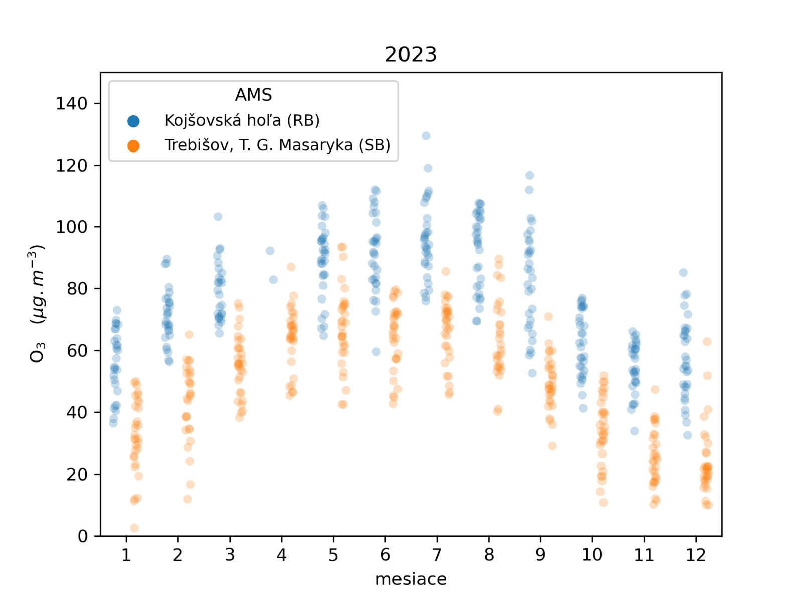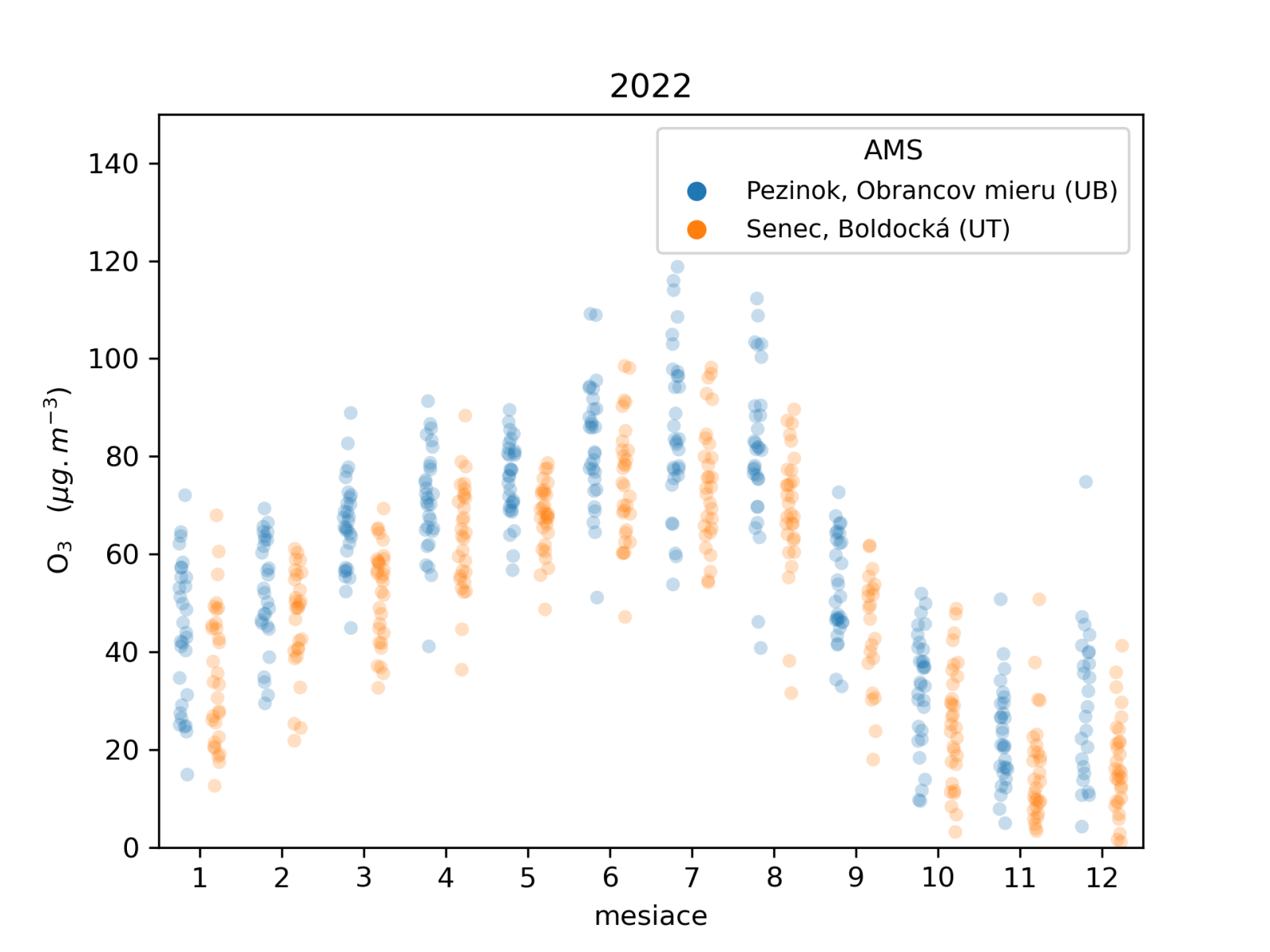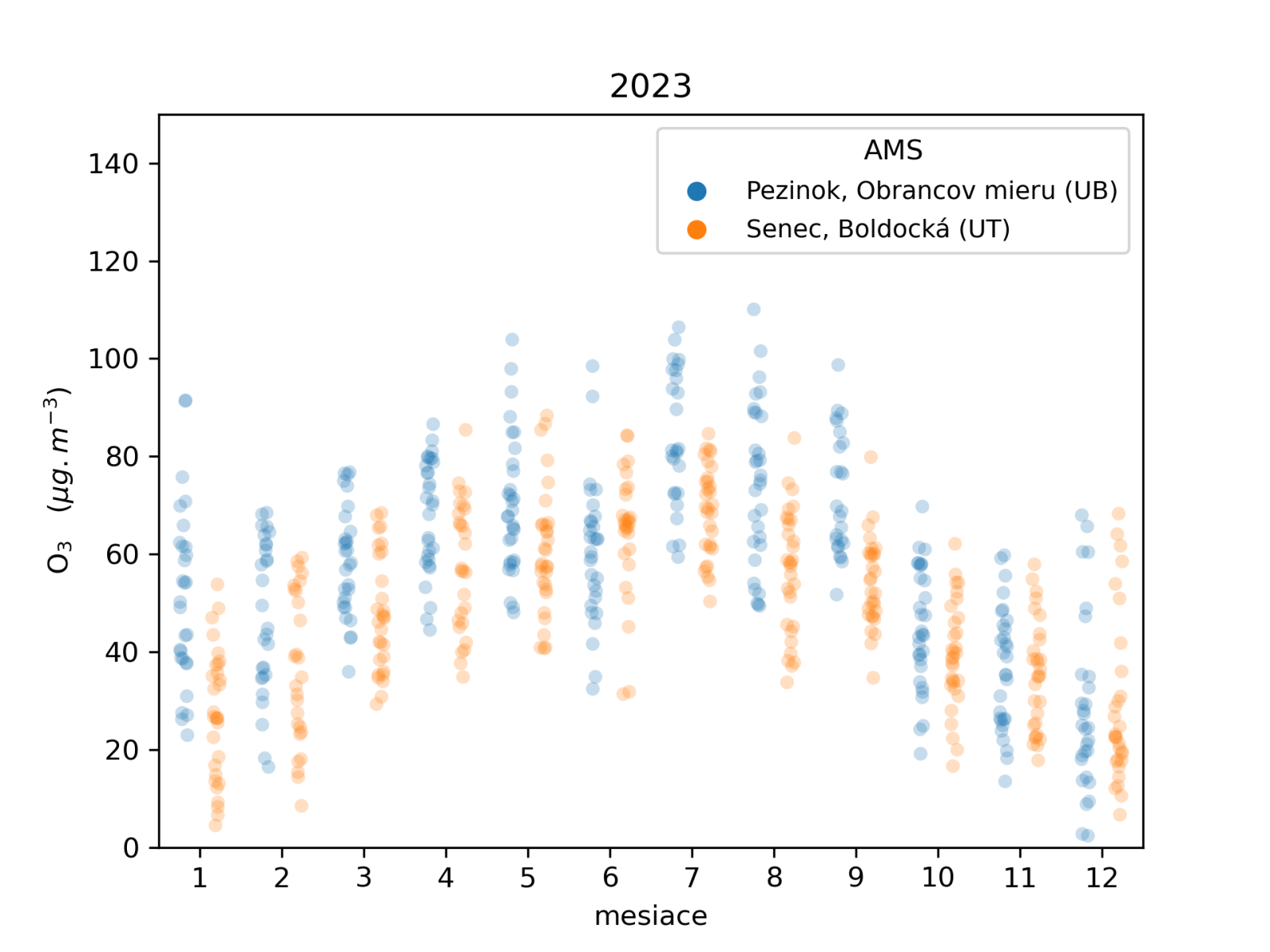 Poznámka: Pre účely hodnotenia kvality ovzdušia je územie Slovenska rozdelené na aglomerácia a zóny, rozdelenie je popísané na web stránke SHMÚ.V grafoch je v legende pri monitorovacej stanici v zátvorke uvedený typ oblasti a stanice.