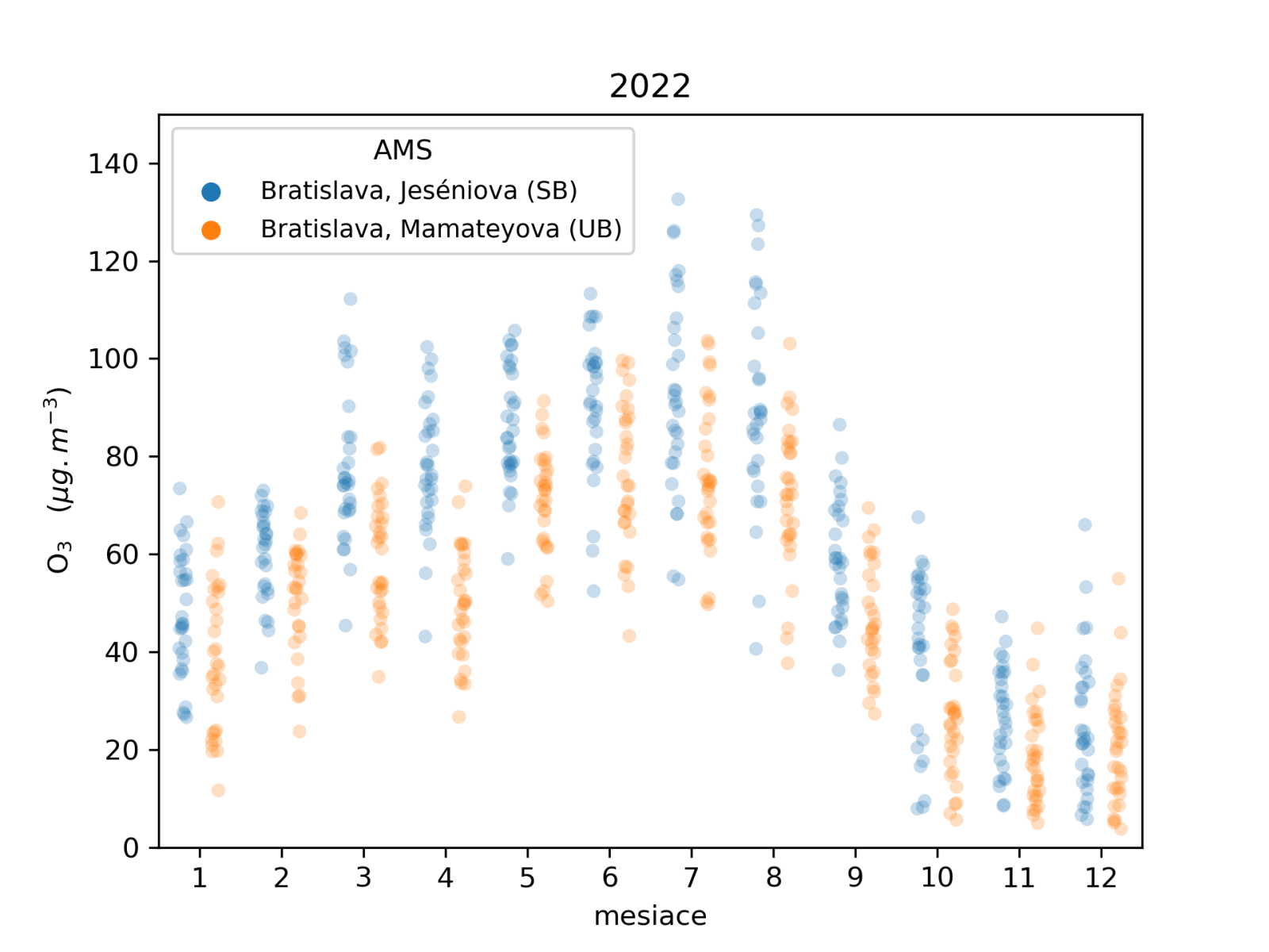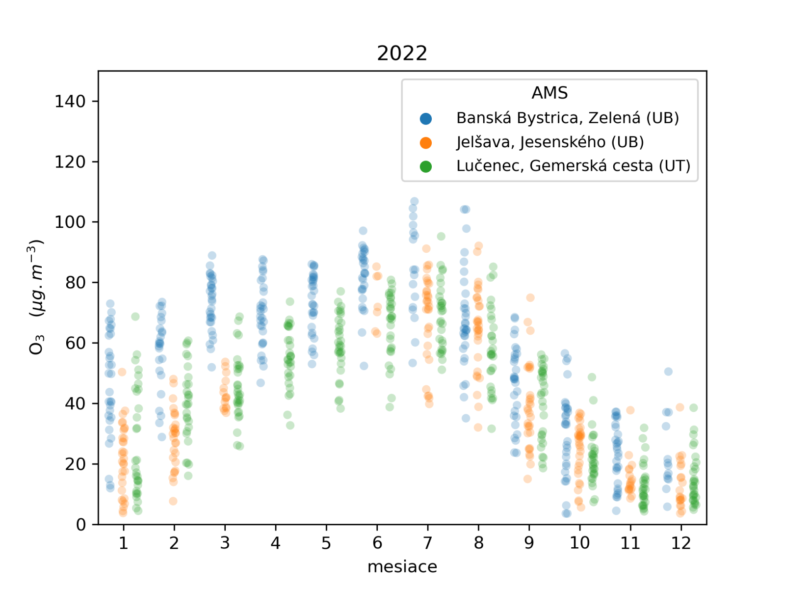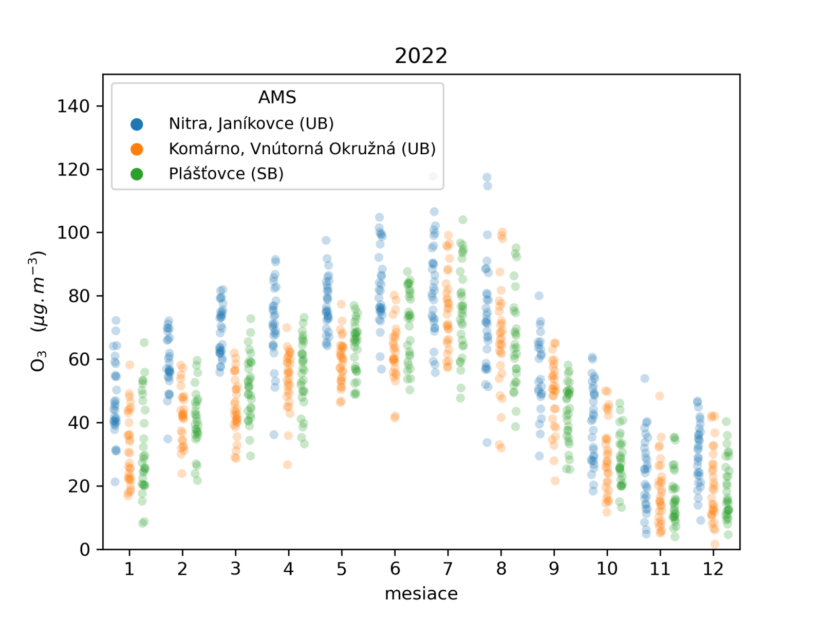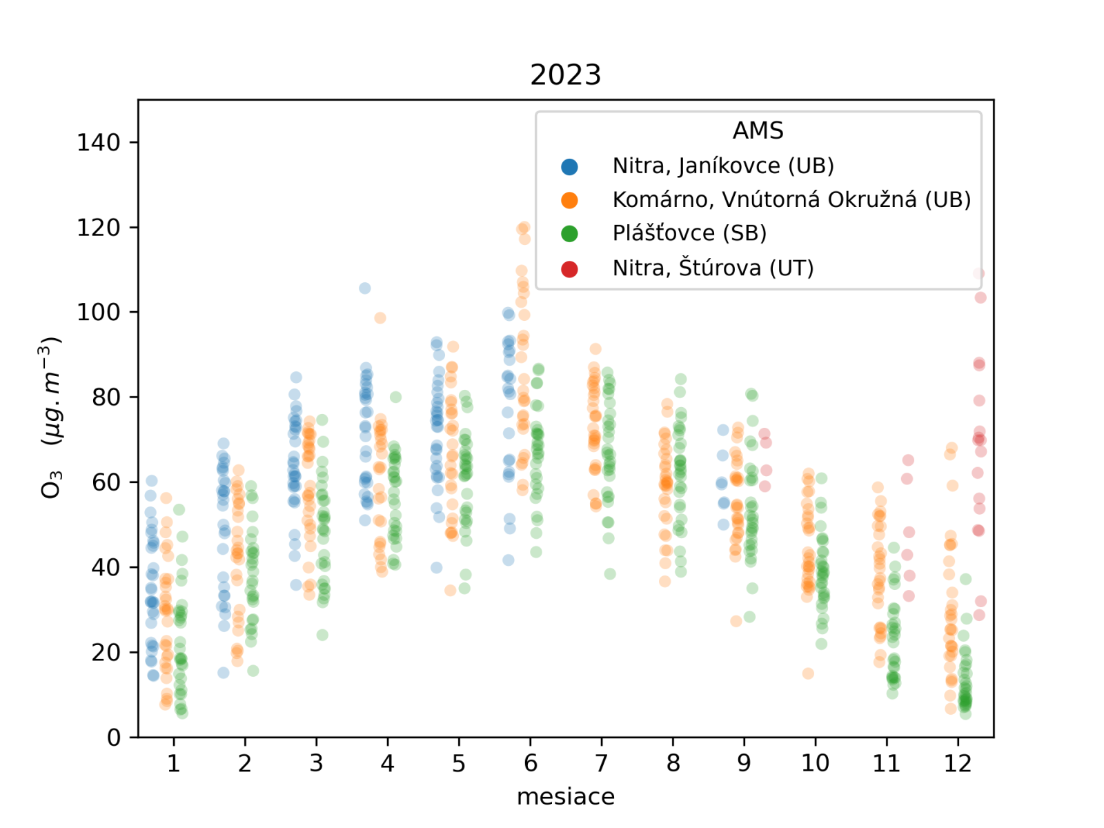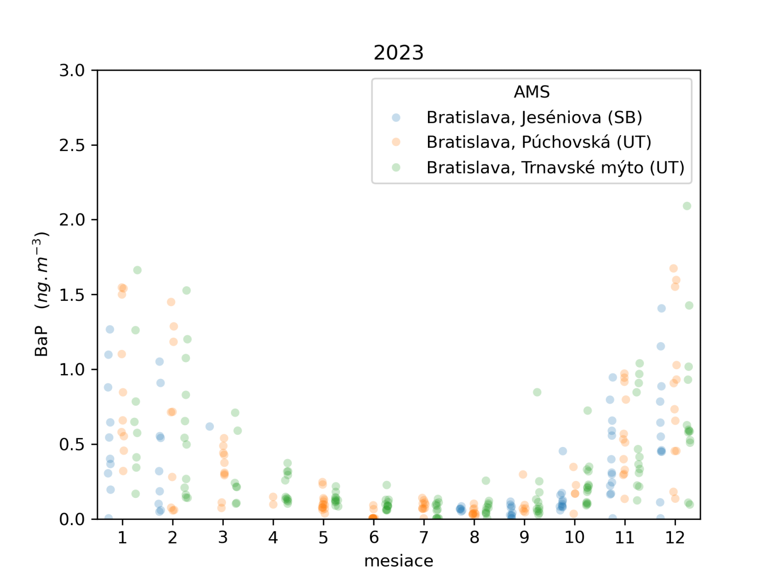 Poznámka: Pre účely hodnotenia kvality ovzdušia je územie Slovenska rozdelené na aglomerácia a zóny, rozdelenie je popísané na web stránke SHMÚ.V grafoch je v legende pri monitorovacej stanici v zátvorke uvedený typ oblasti a stanice.