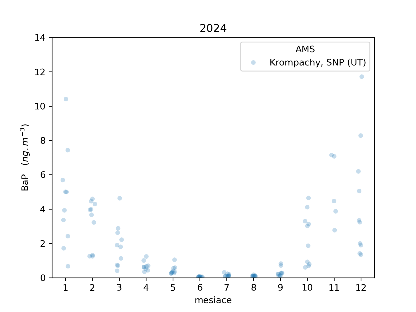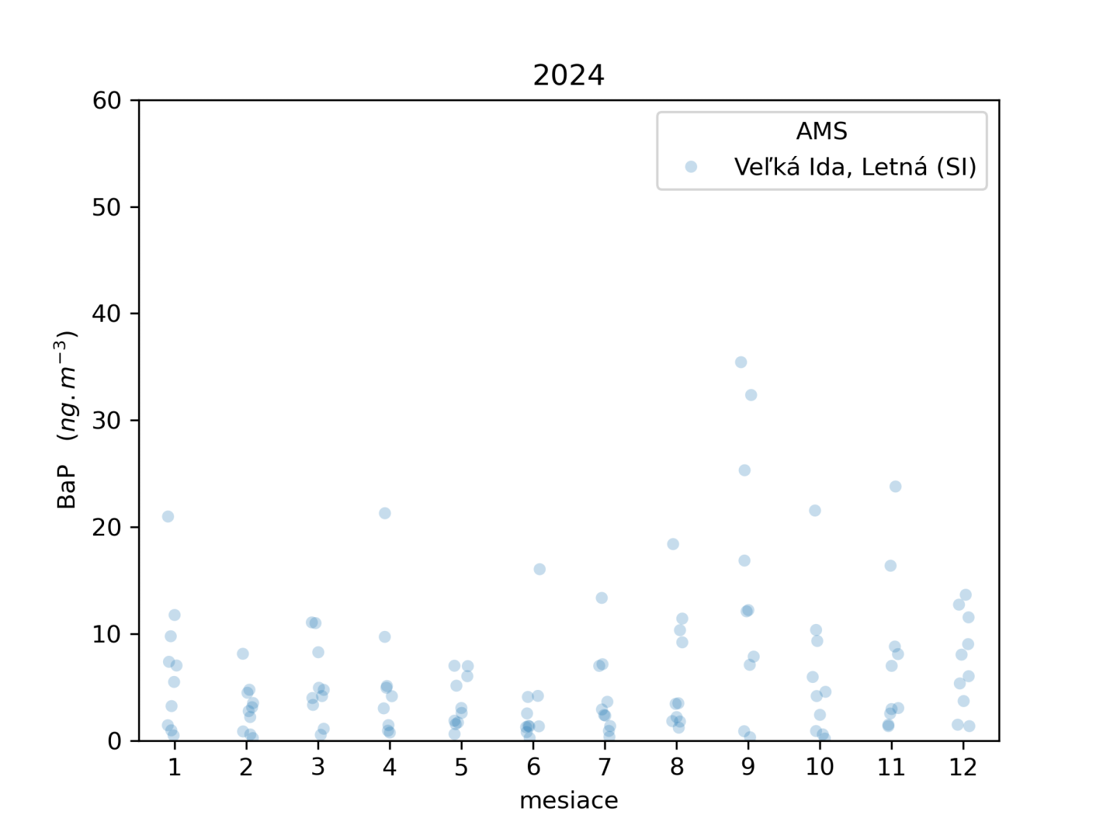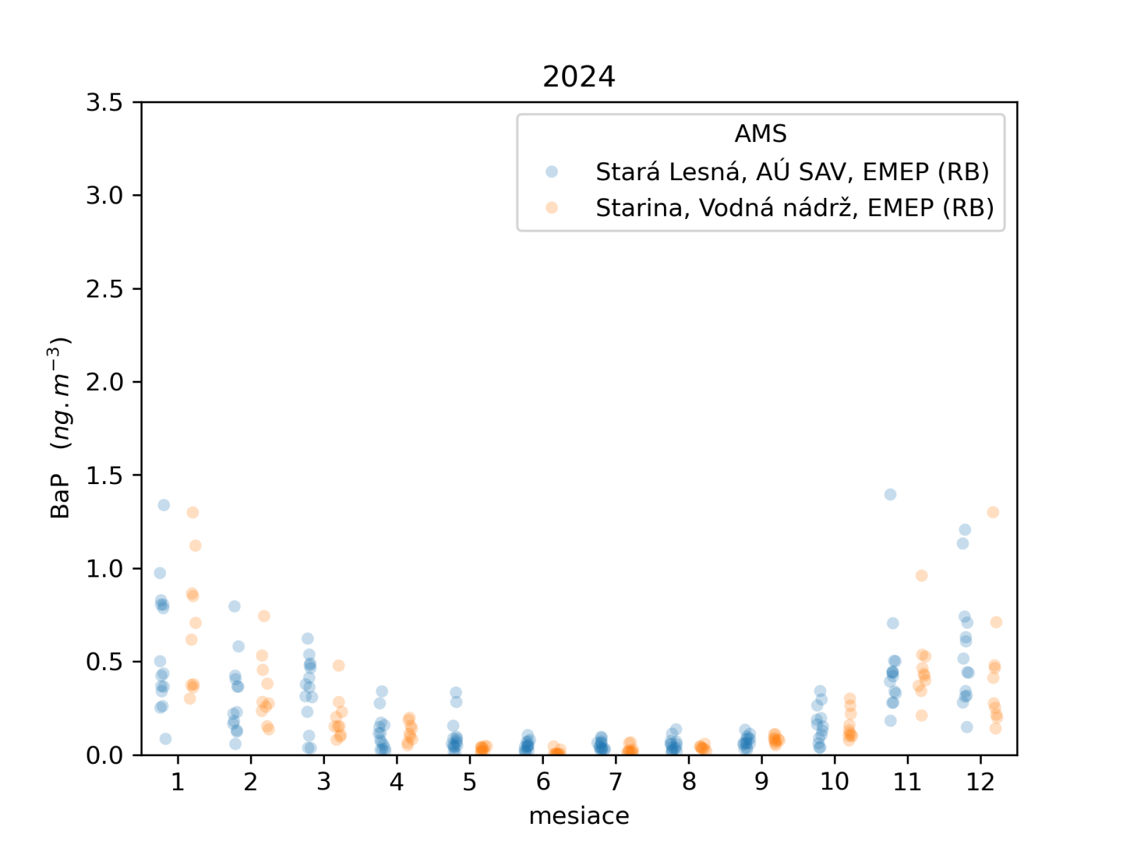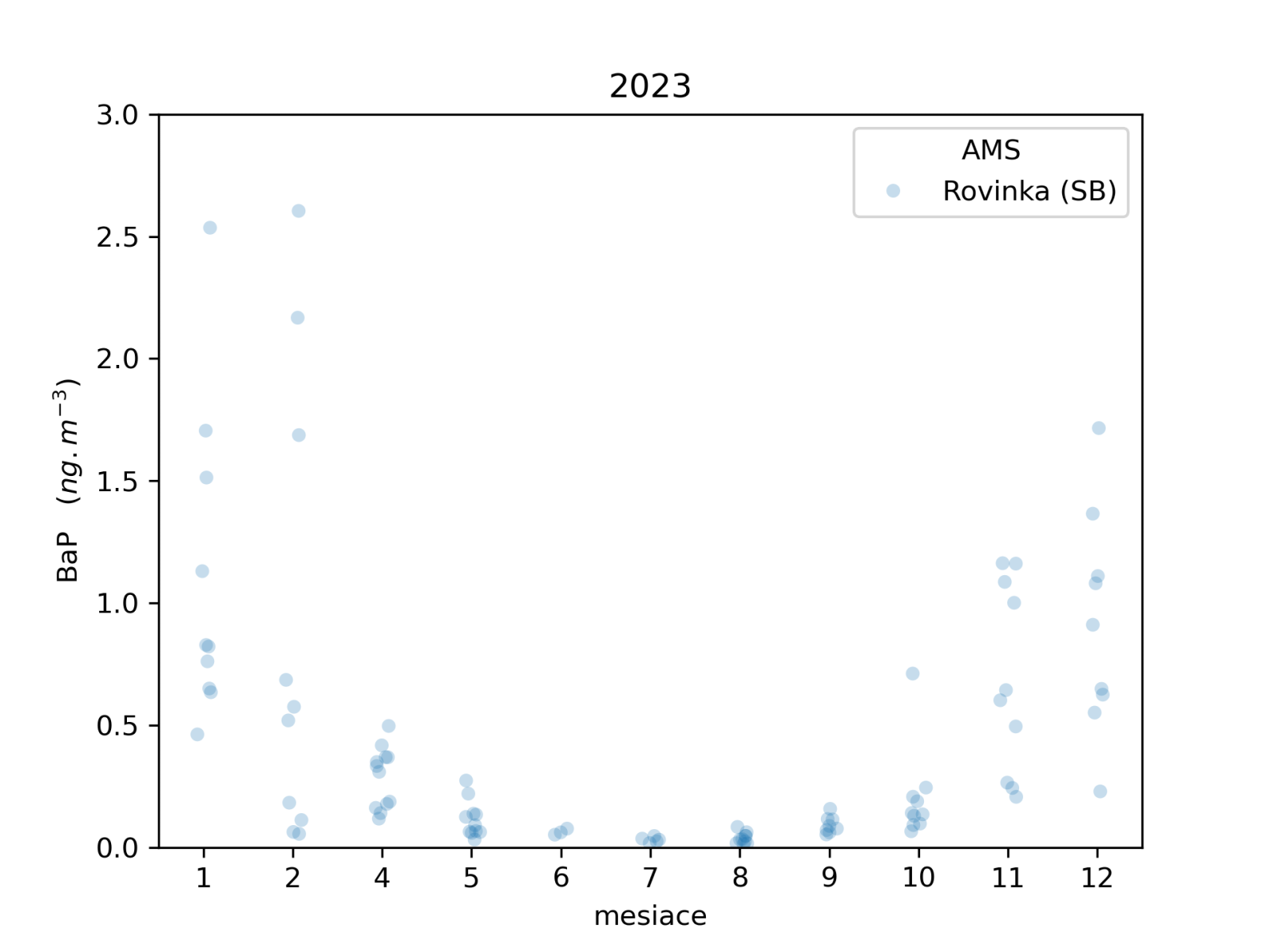 | Priemerné denné koncentrácie PM10, PM2,5, benzo[a]pyrénu (BaP), NO2 a O3 v roku 2024 | Priemerné denné koncentrácie PM10, PM2,5, benzo[a]pyrénu (BaP), NO2 a O3 v roku 2023 | Priemerné denné koncentrácie PM10, PM2,5, benzo[a]pyrénu (BaP), NO2 a O3 v roku 2022 | ||