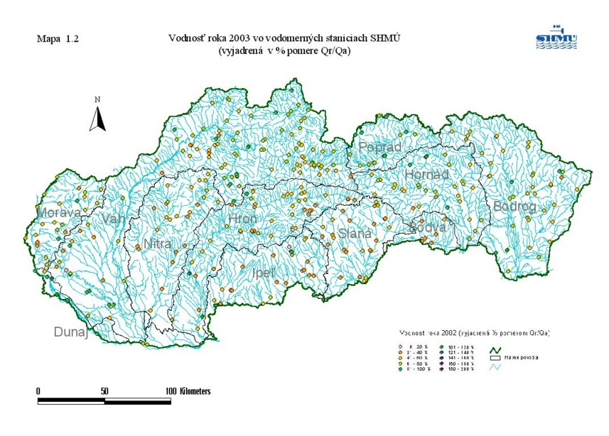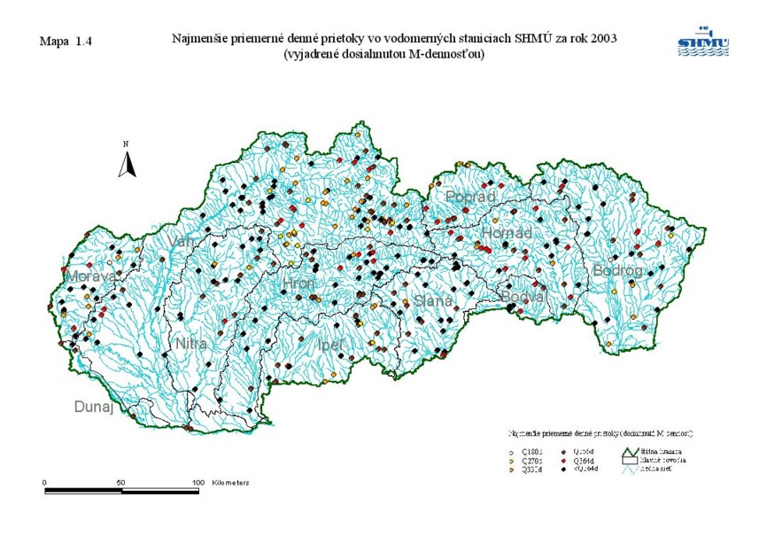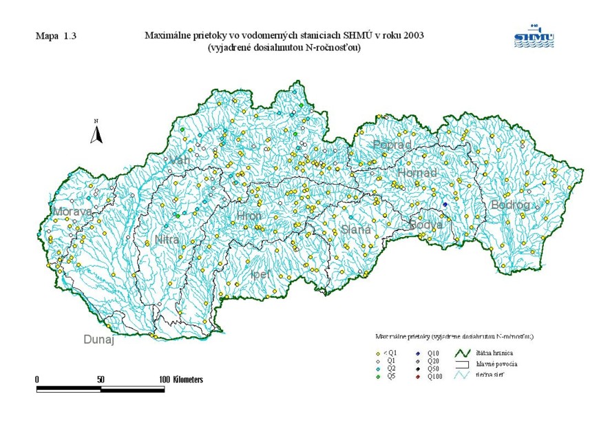Vybrané údaje o prietokoch vo vodomerných staniciach v roku 2003