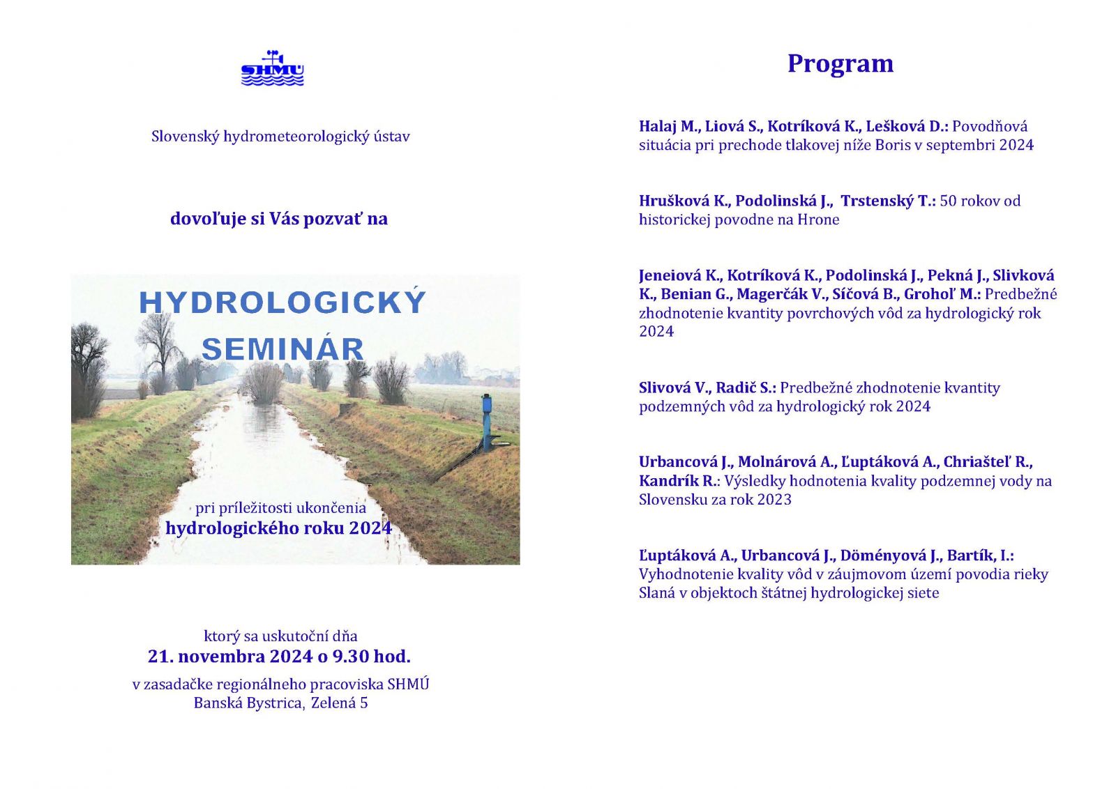Pozývame vás na XXXIV. Hydrologický seminár organizovaný pri príležitosti ukončenia hydrologického roku 2024.