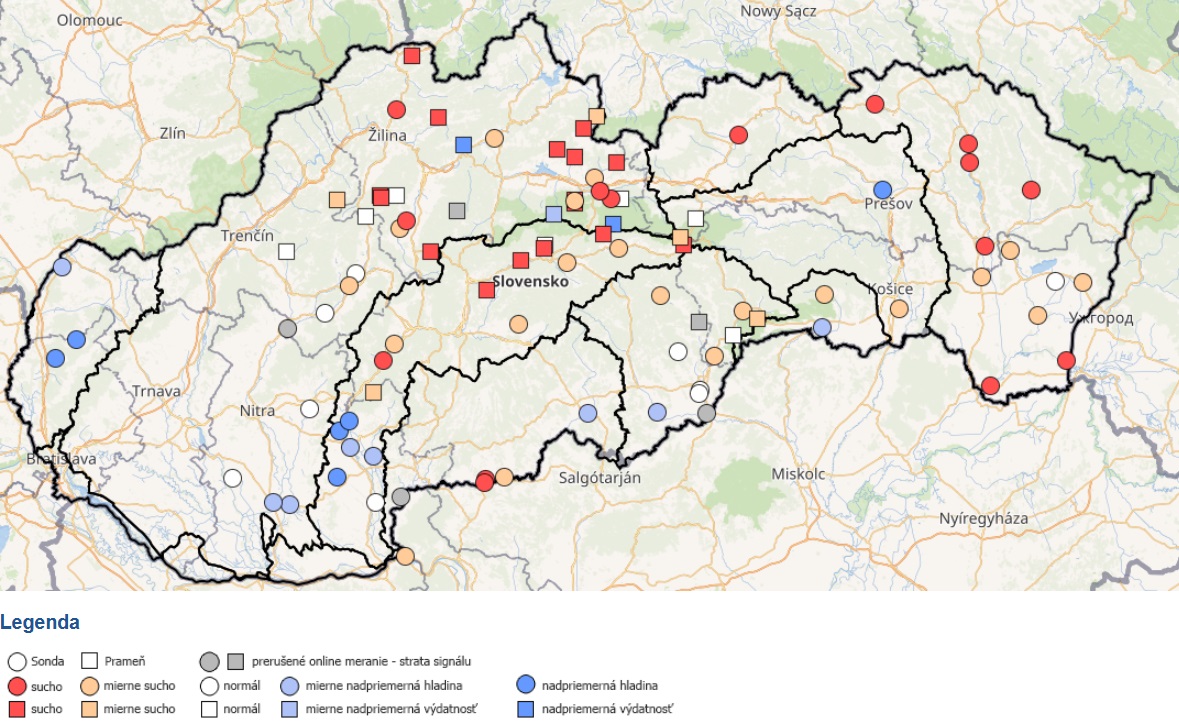 Teplotné a zrážkové pomery v uplynulom mesiaci mali negatívny vplyv na stav hladiny podzemnej vody a výdatnosti prameňov. Na väčšine územia Slovenska sme zaznamenali postupný pokles na zdrojoch podzemnej vody.