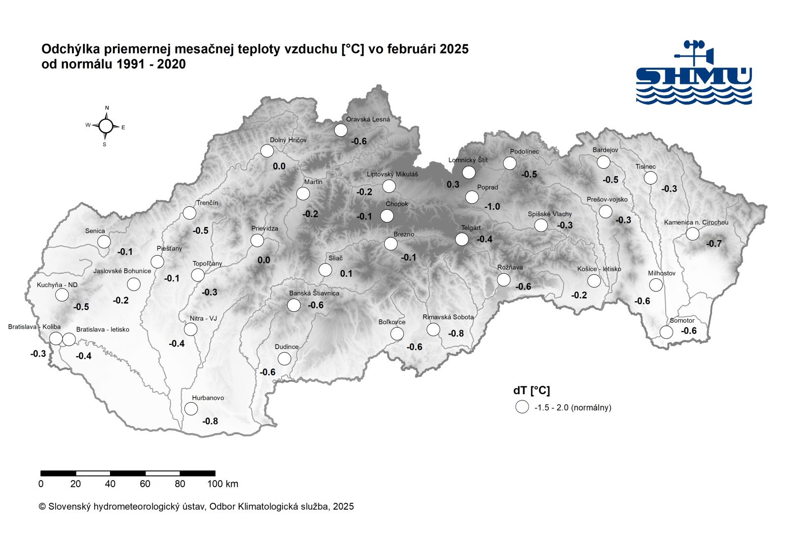 Toto zhodnotenie vychádza z operatívnych údajov, ktoré boli dostupné hneď po skončení mesiaca 3.3.2025. Podrobnejšie konečné zhodnotenie uverejníme na webovej stránke SHMÚ koncom marca 2025.