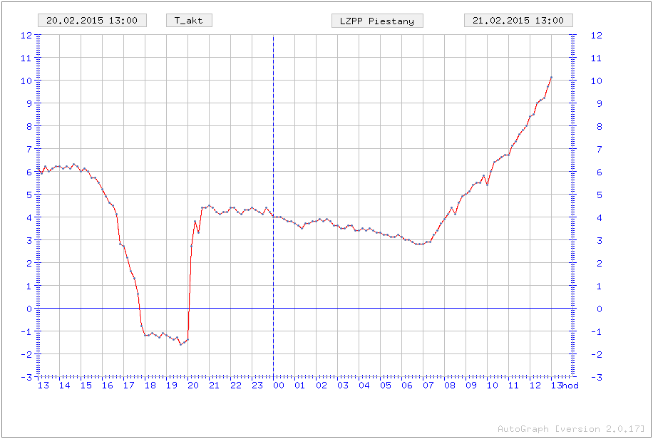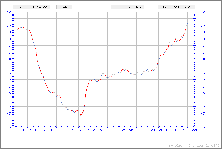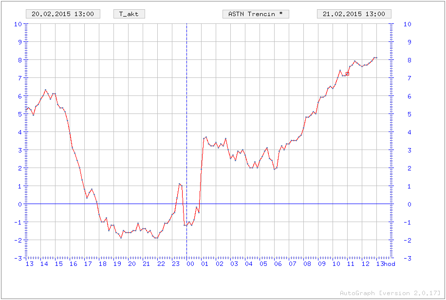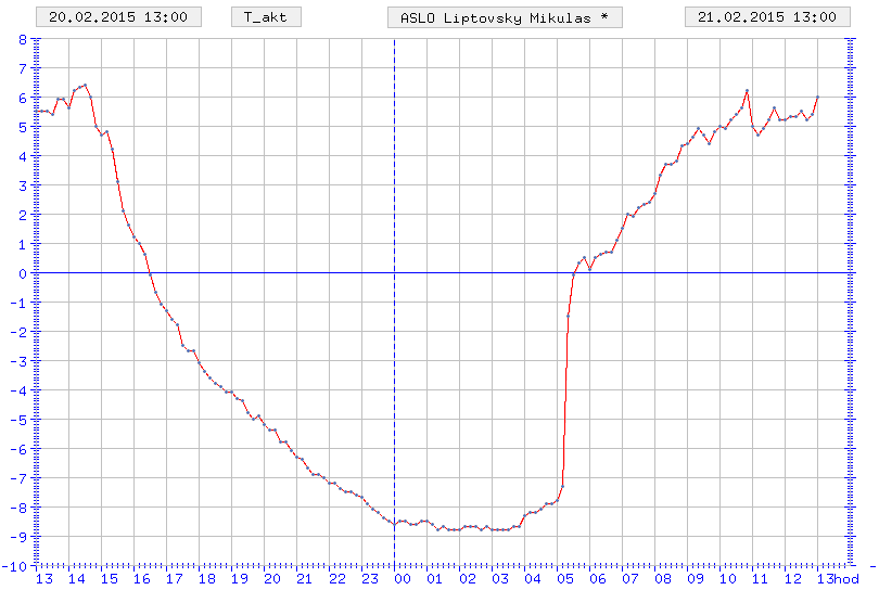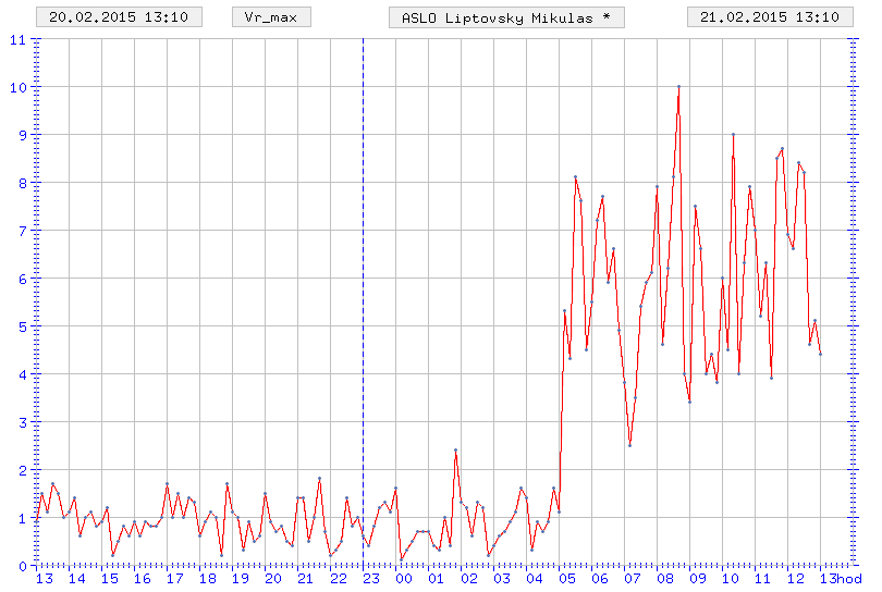 Vplyv vetra na nočnú teplotu 21. februára 2015